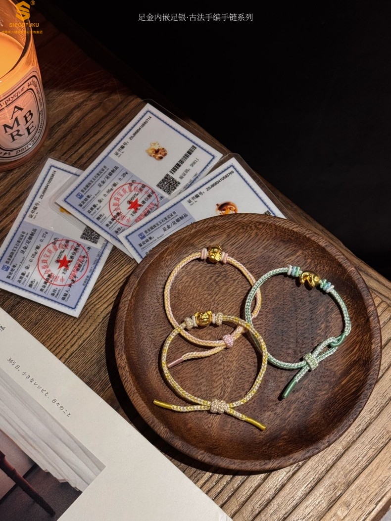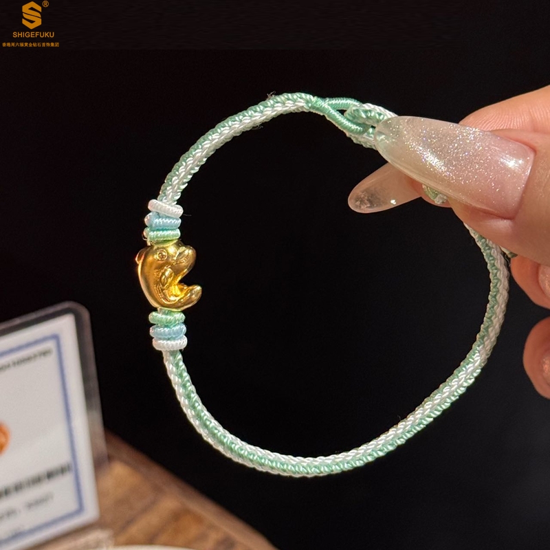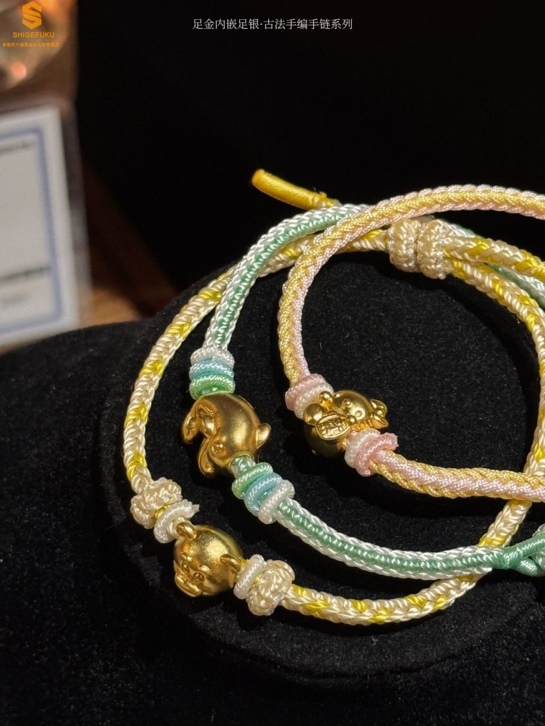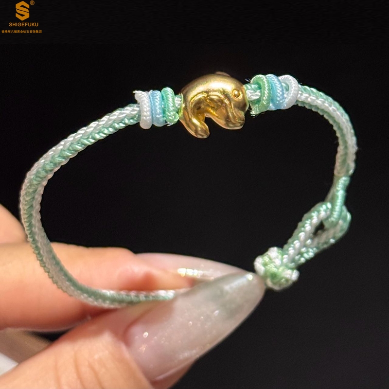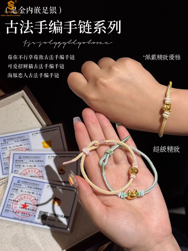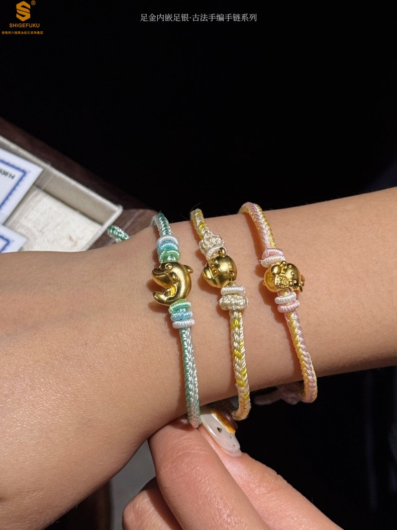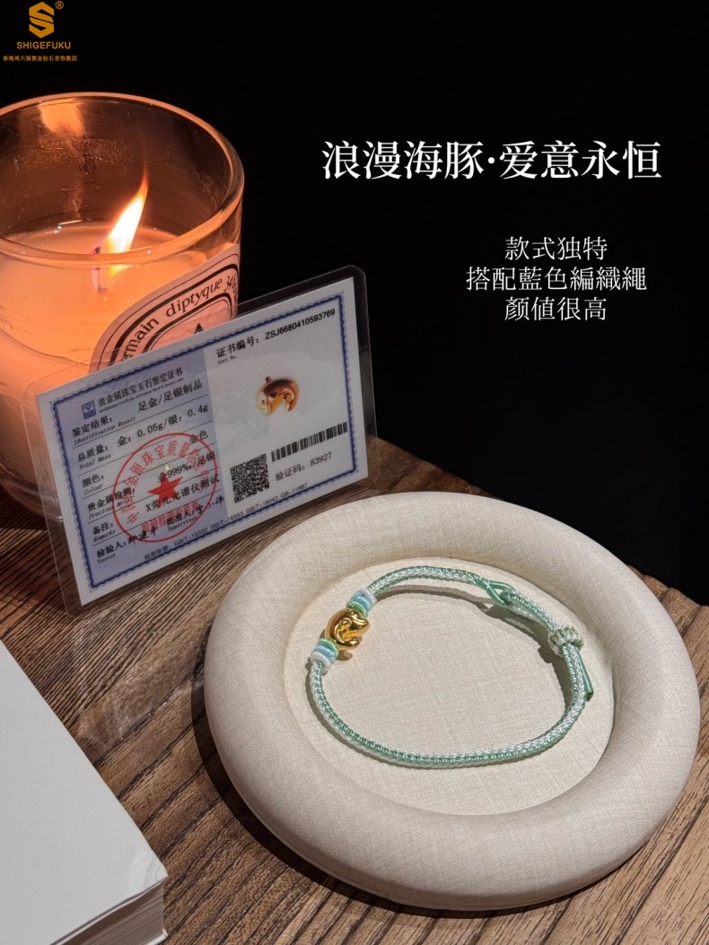 【品名】足金内嵌足银海豚恋人古法手编手链