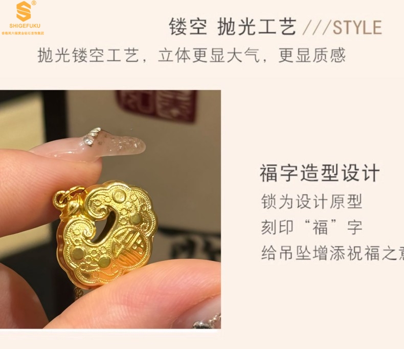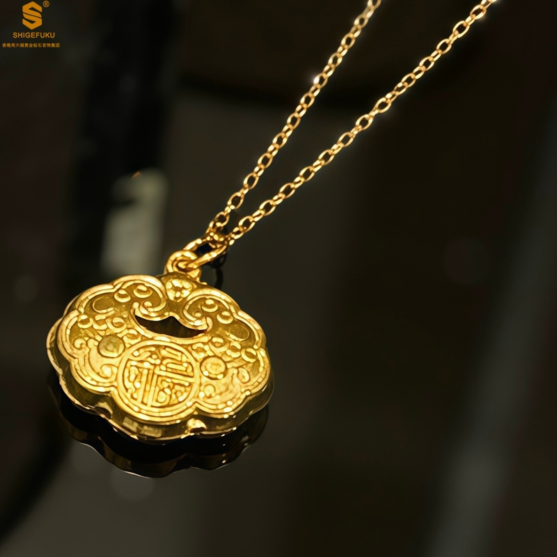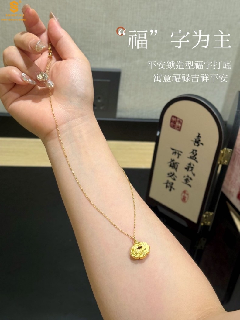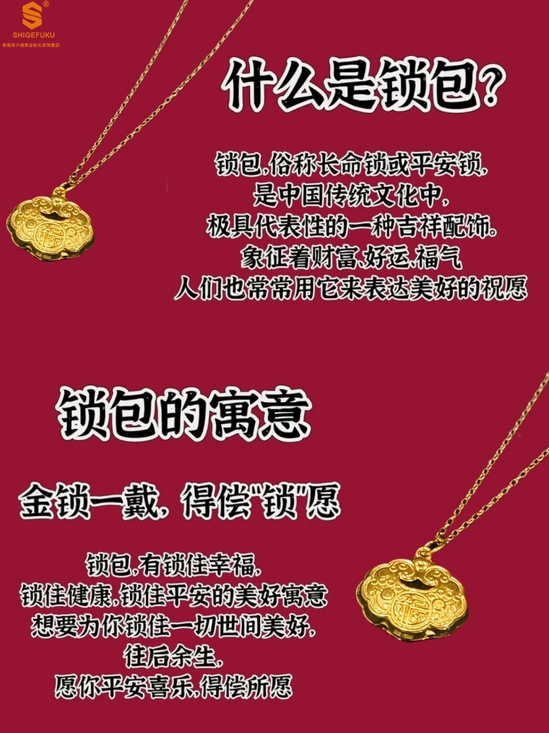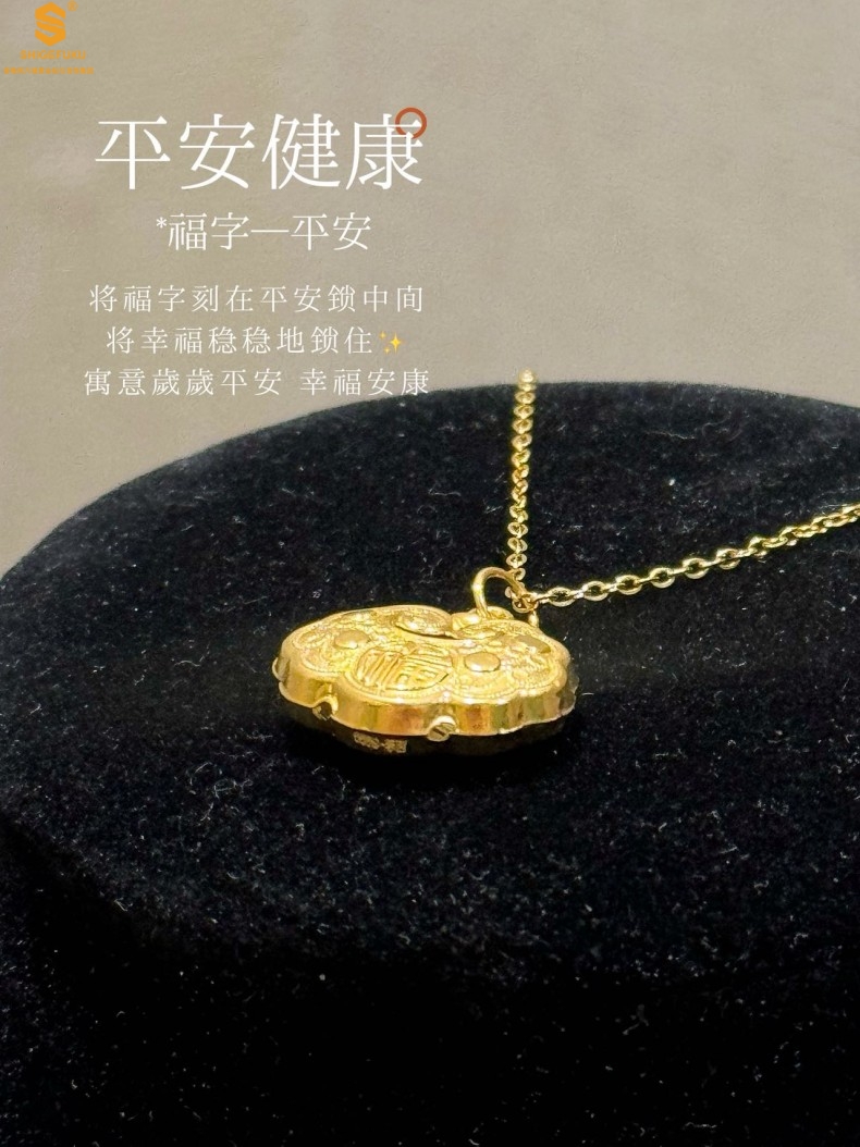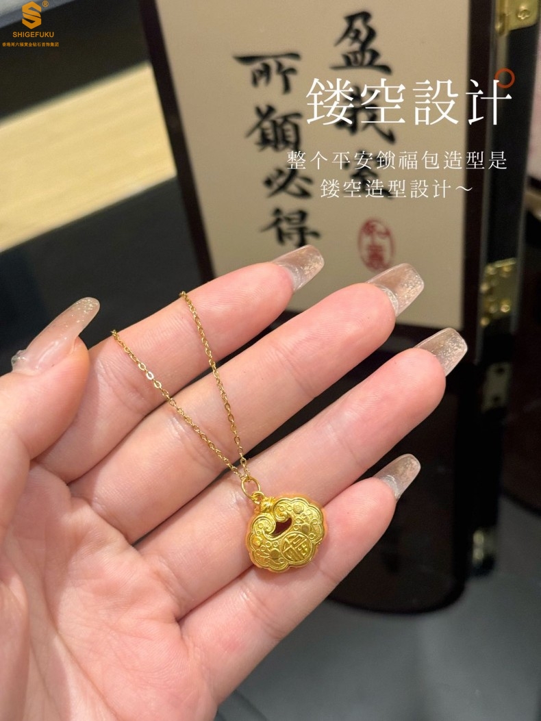 【品名】足金内嵌足银平安福锁包吊坠(附赠K金项链)