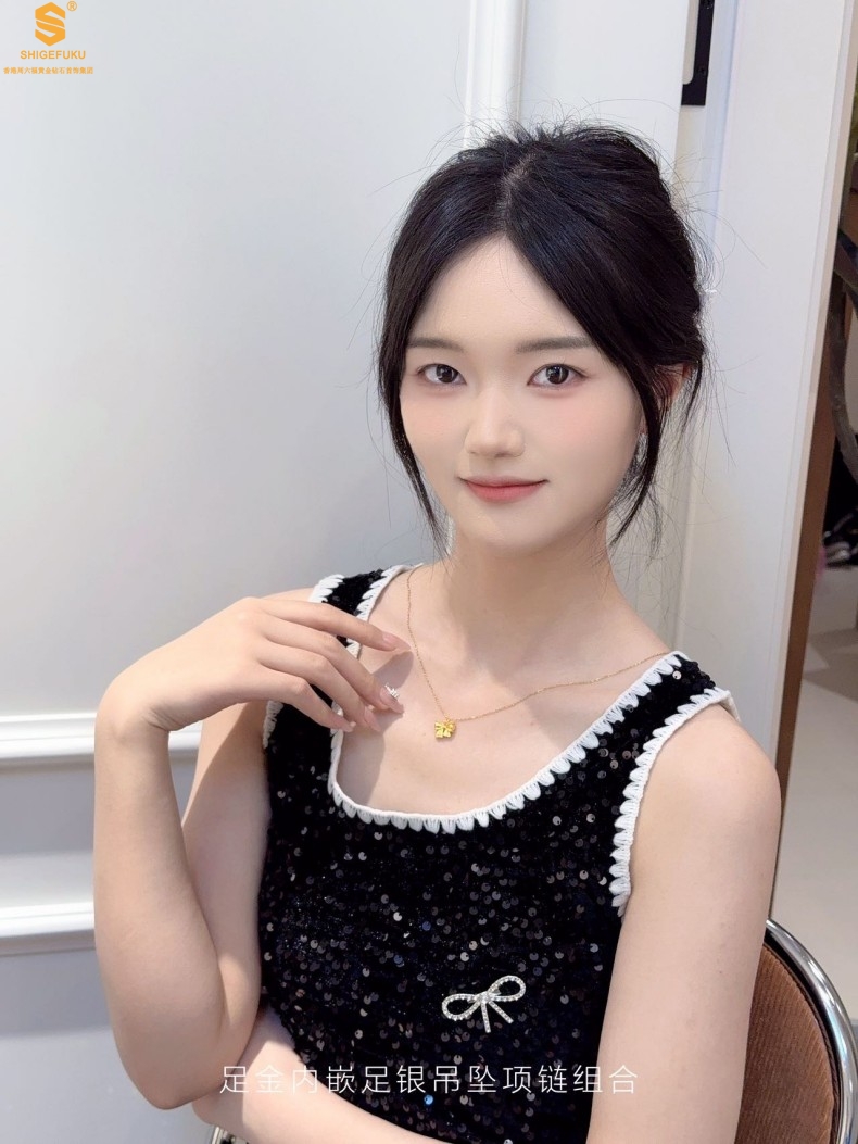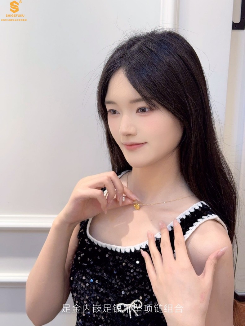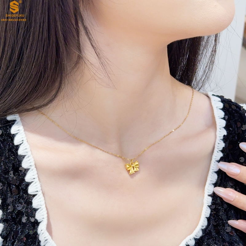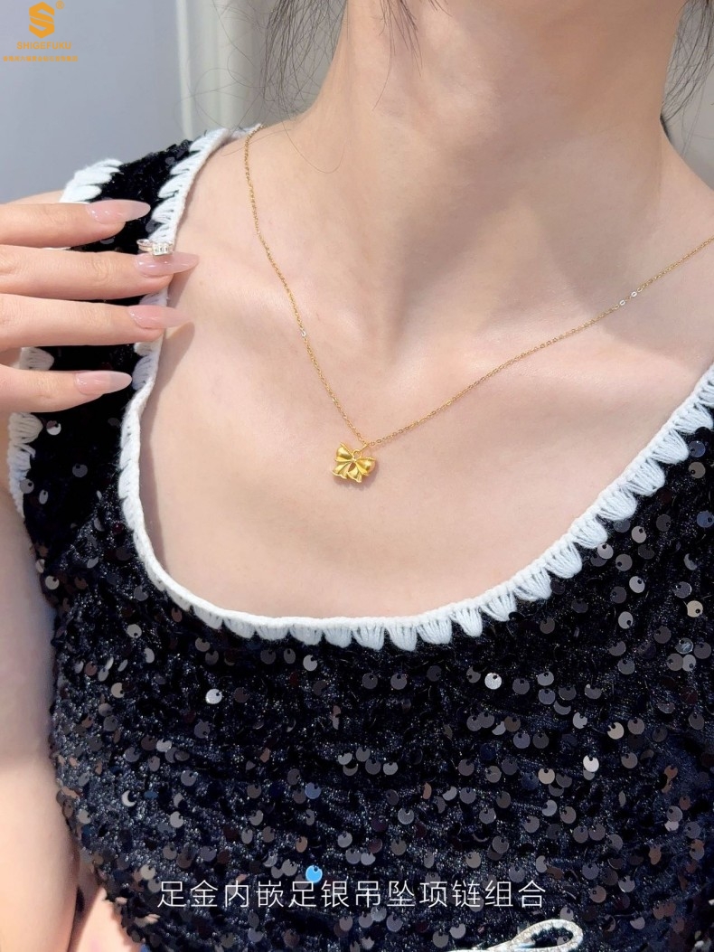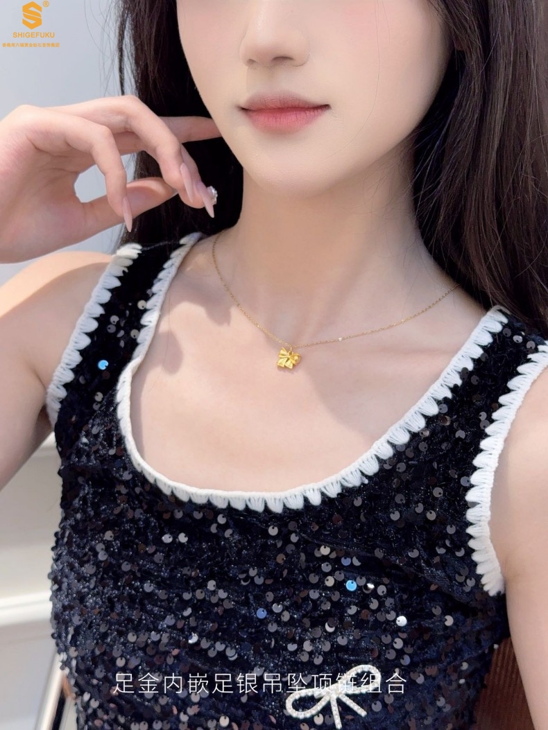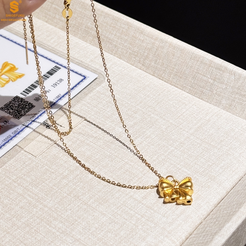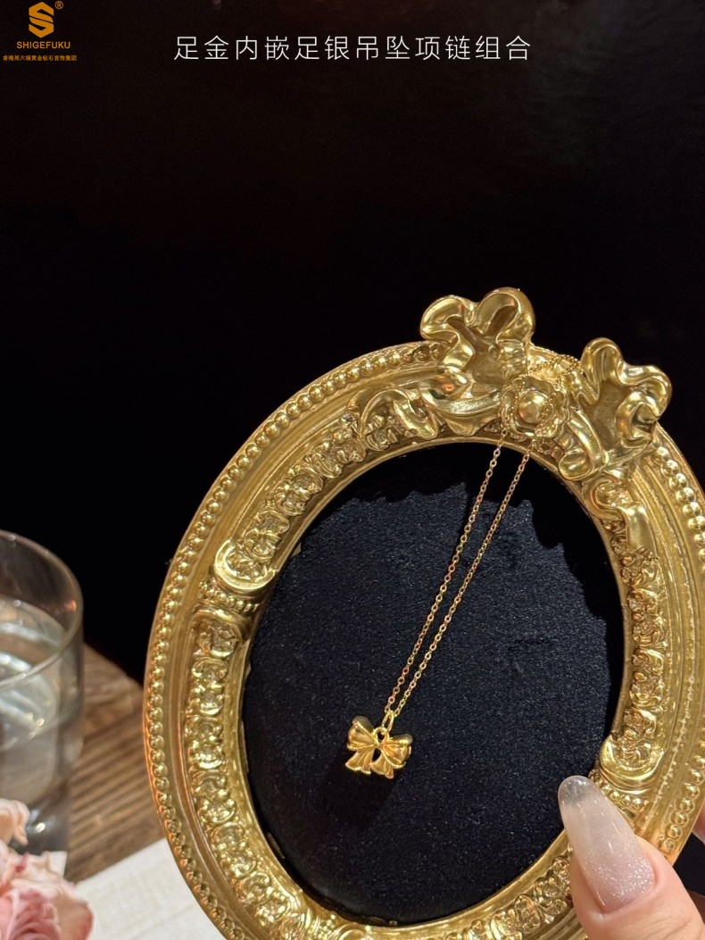 【品名】足金内嵌足银在逃公主蝴蝶结吊坠(附赠K金项链)