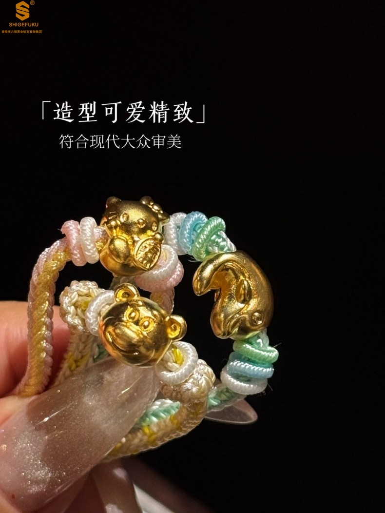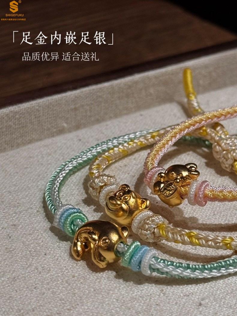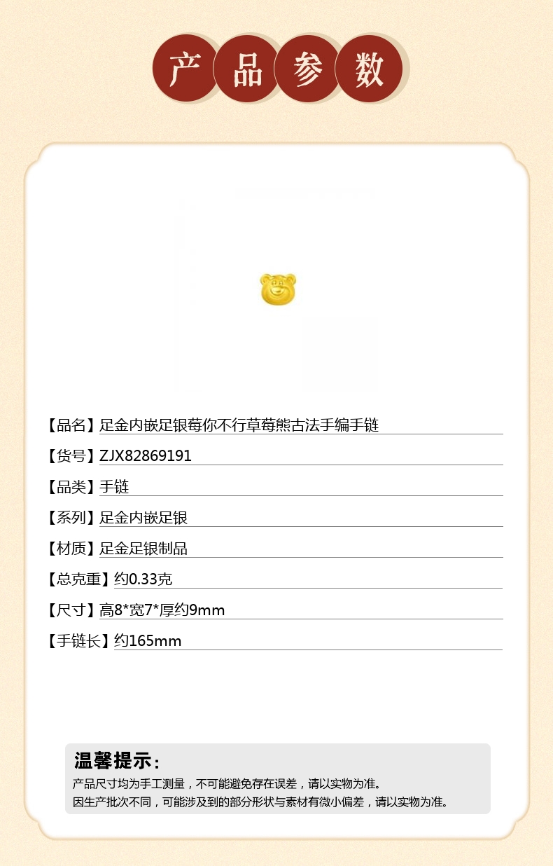 【品名】足金内嵌足银莓你不行草莓熊古法手编手链