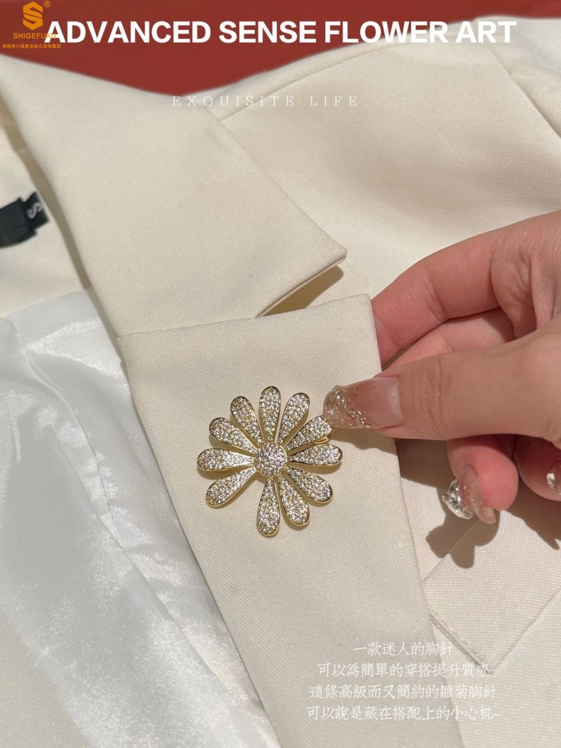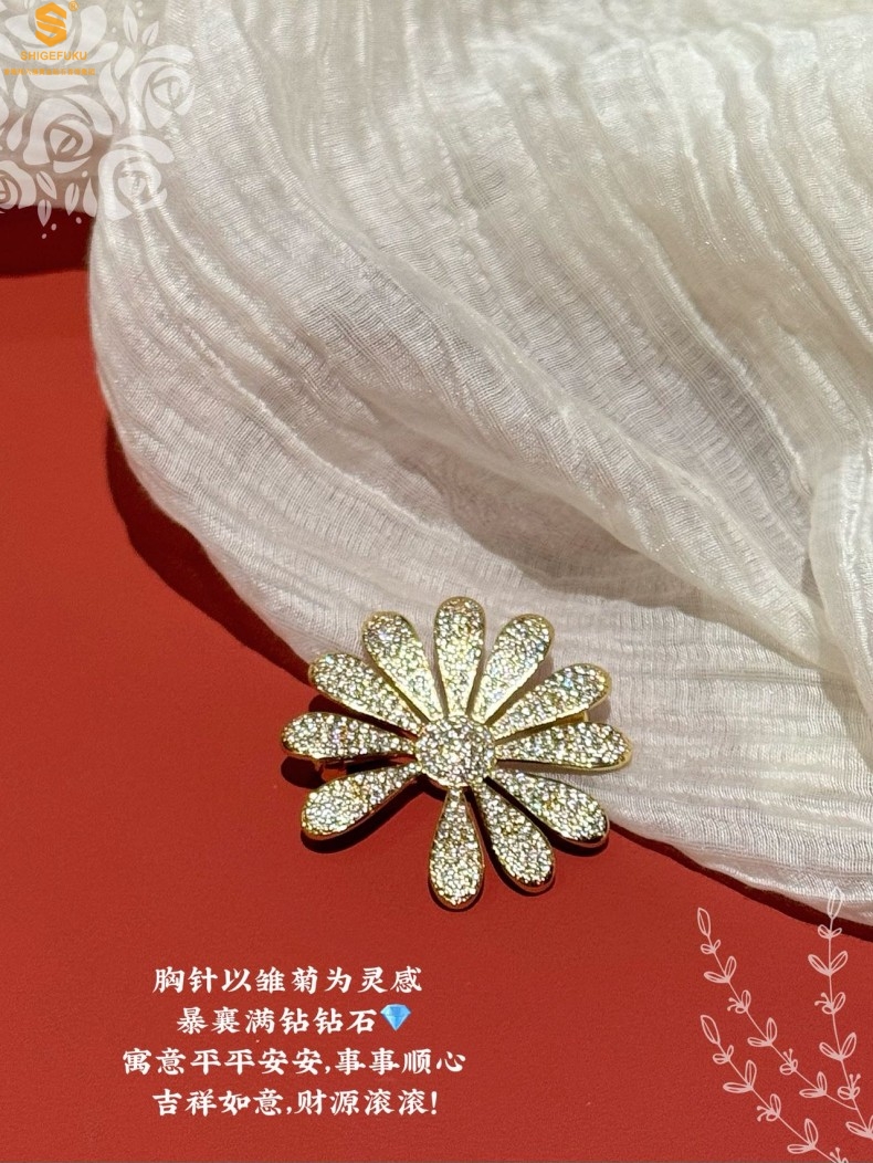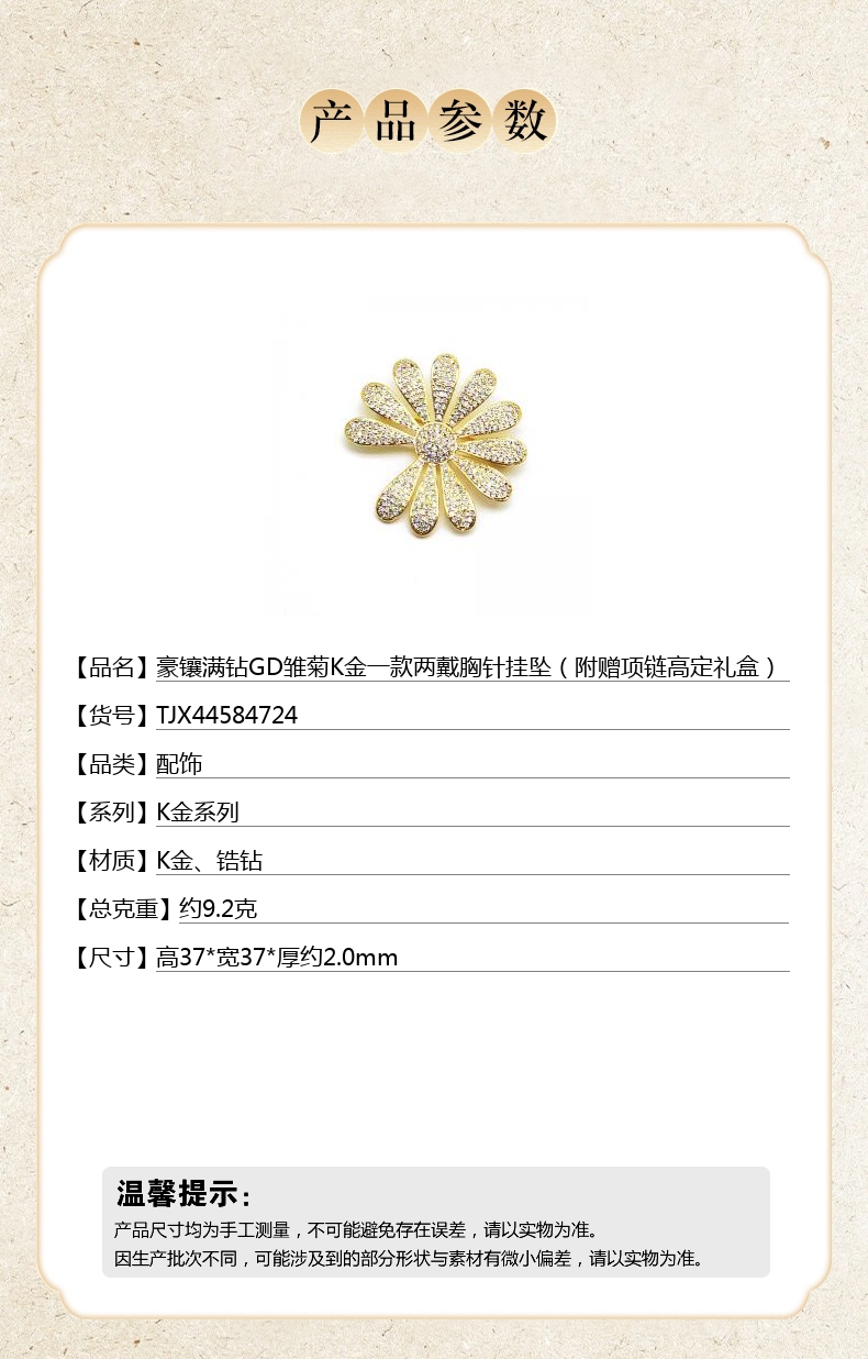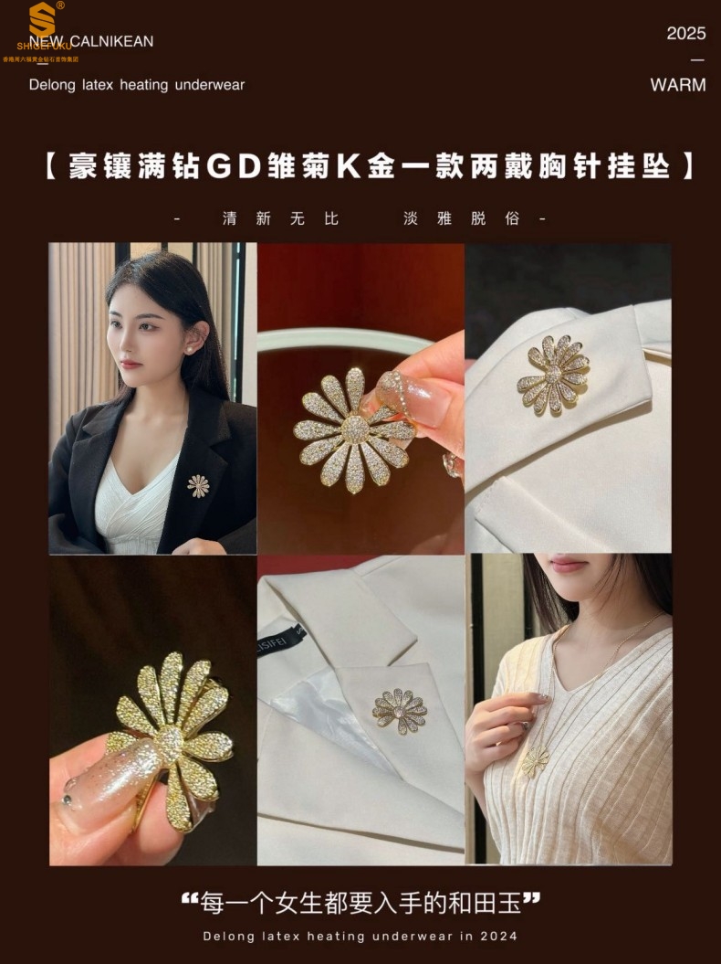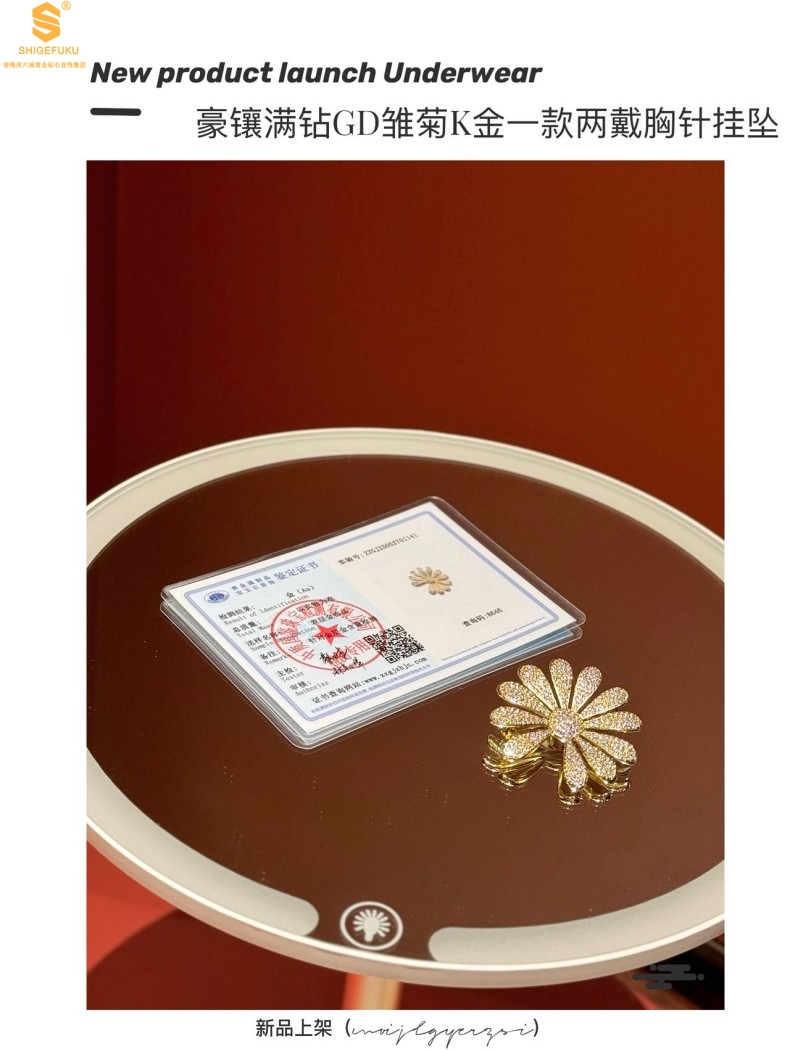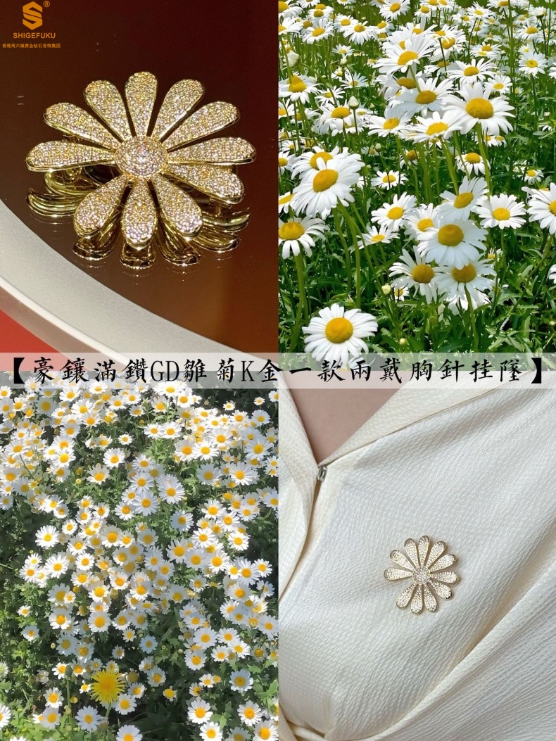 【品名】豪镶满钻GD雏菊K金一款两戴胸针挂坠(附赠项链高定礼盒)