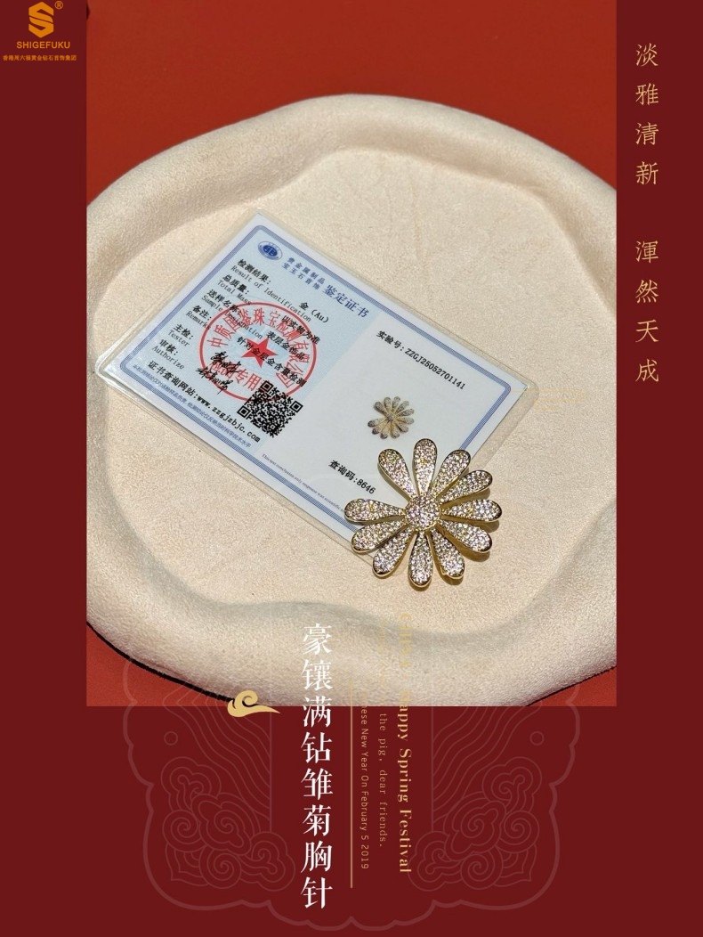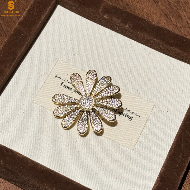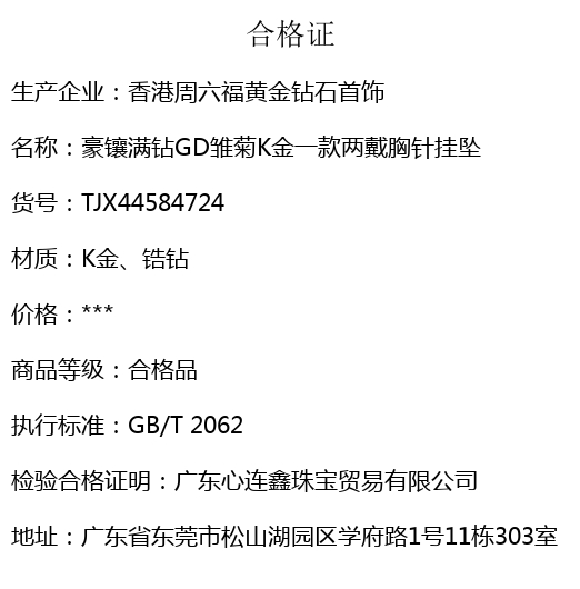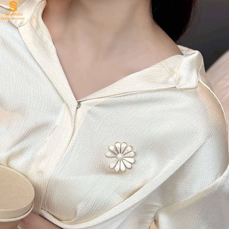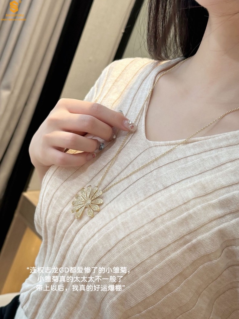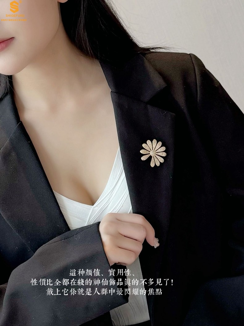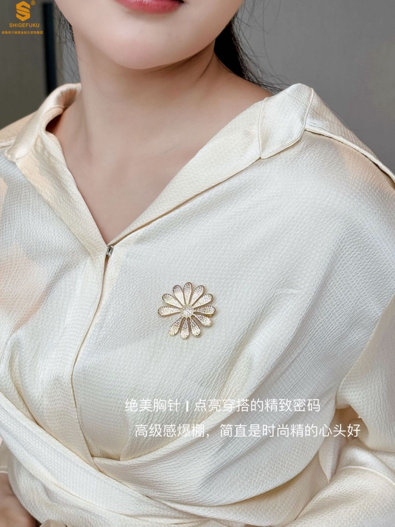 【品名】豪镶满钻GD雏菊K金一款两戴胸针挂坠(附赠项链高定礼盒)