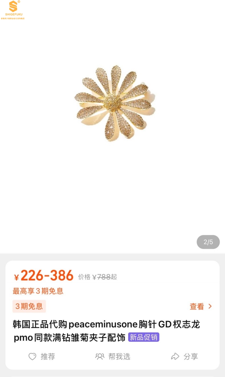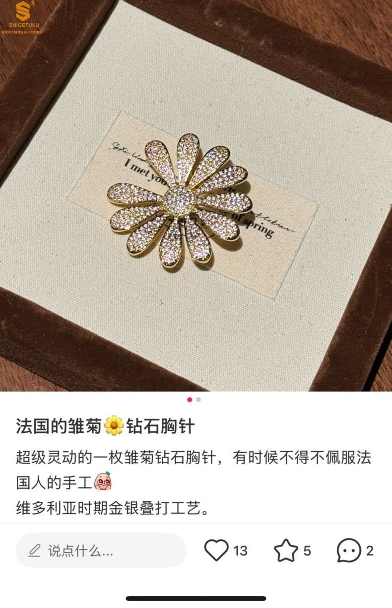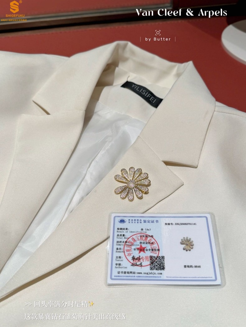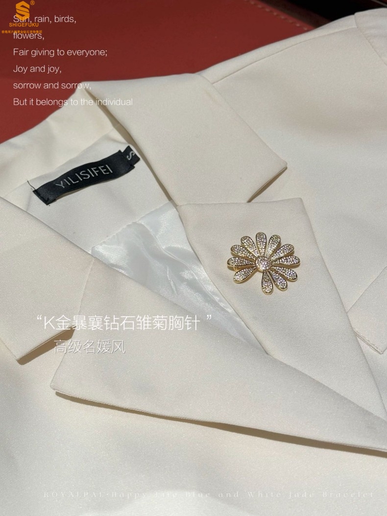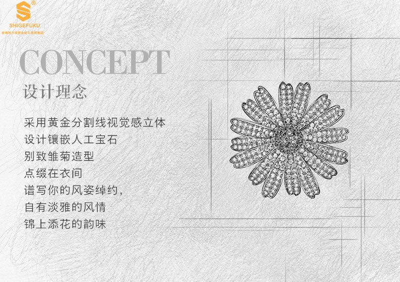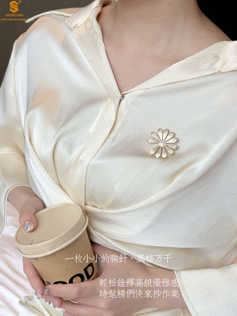 【品名】豪镶满钻GD雏菊K金一款两戴胸针挂坠(附赠项链高定礼盒)