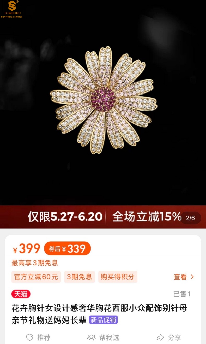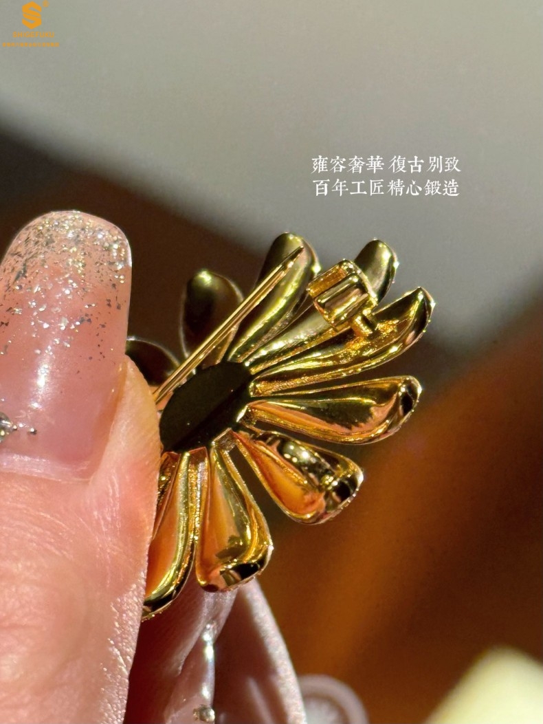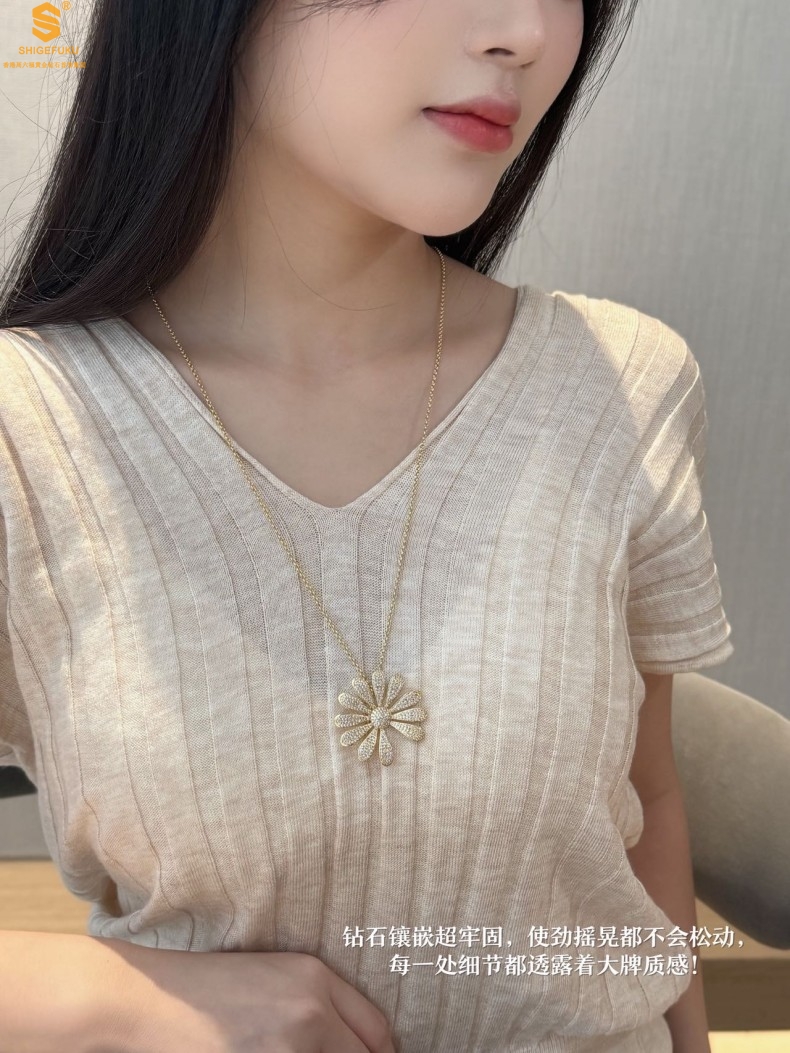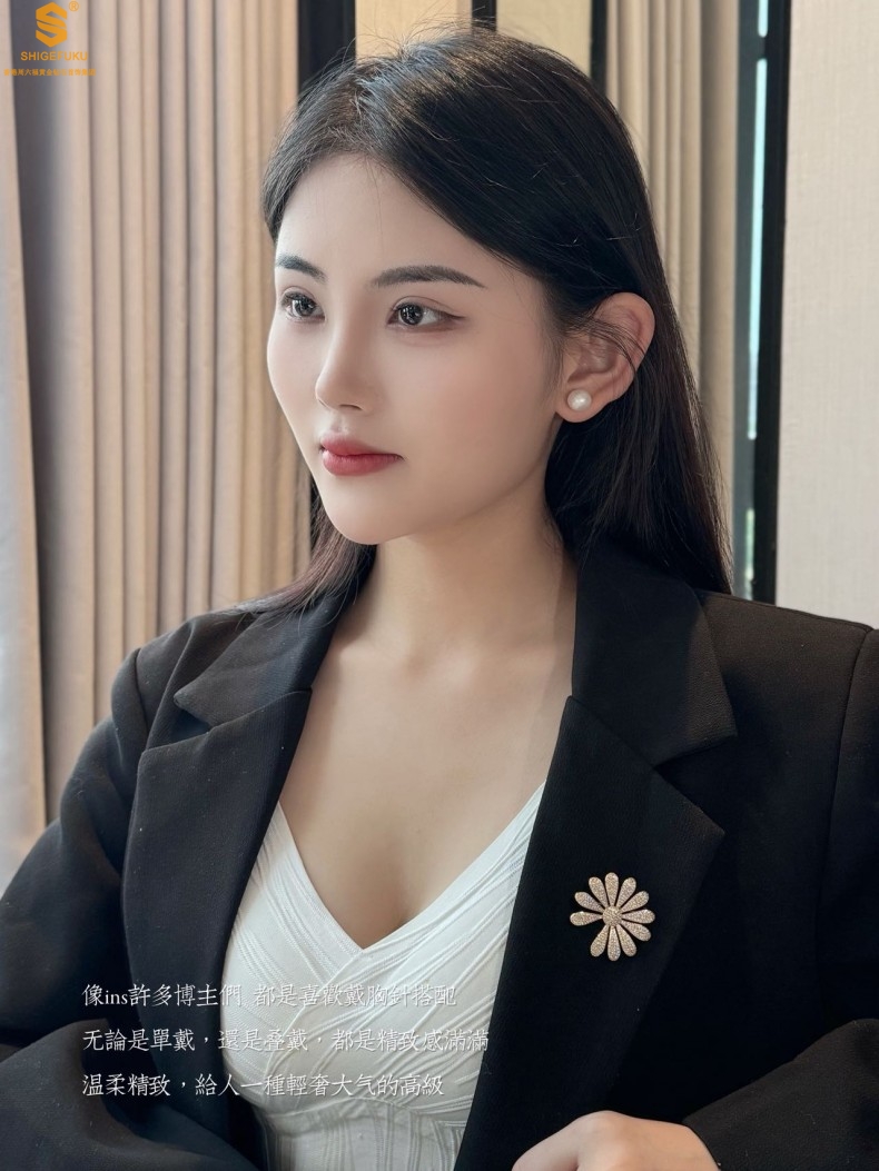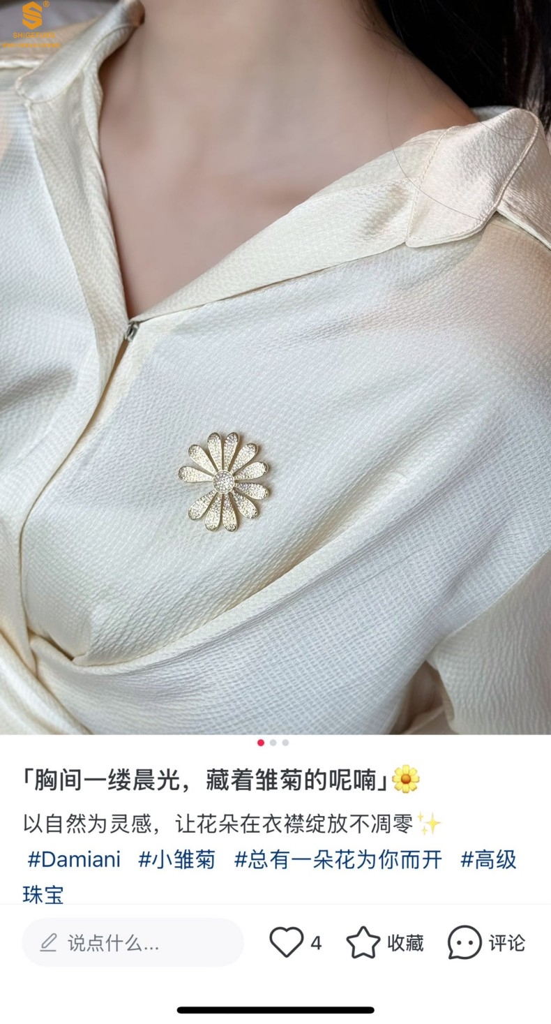 【品名】豪镶满钻GD雏菊K金一款两戴胸针挂坠(附赠项链高定礼盒)