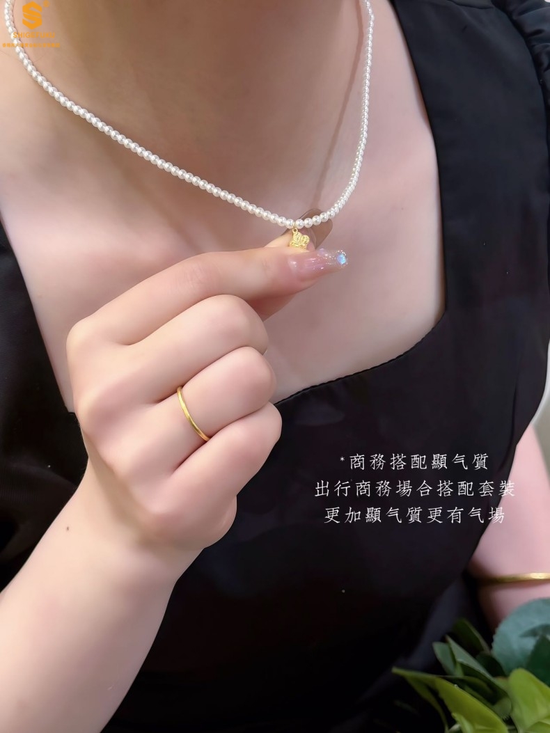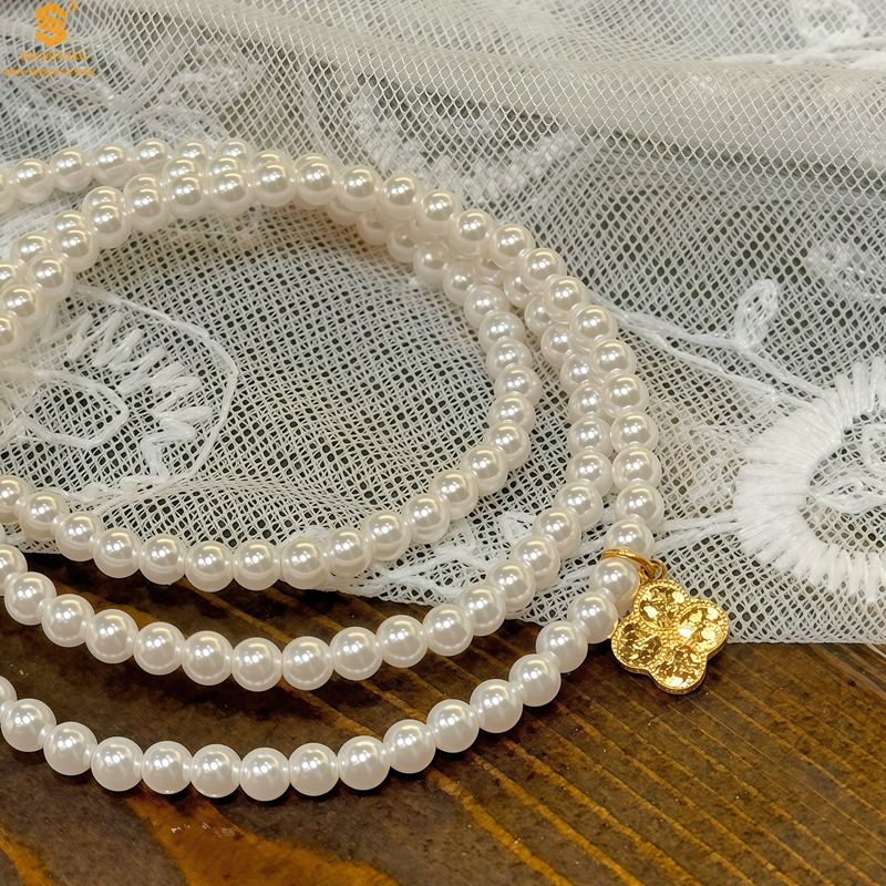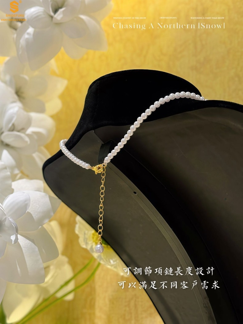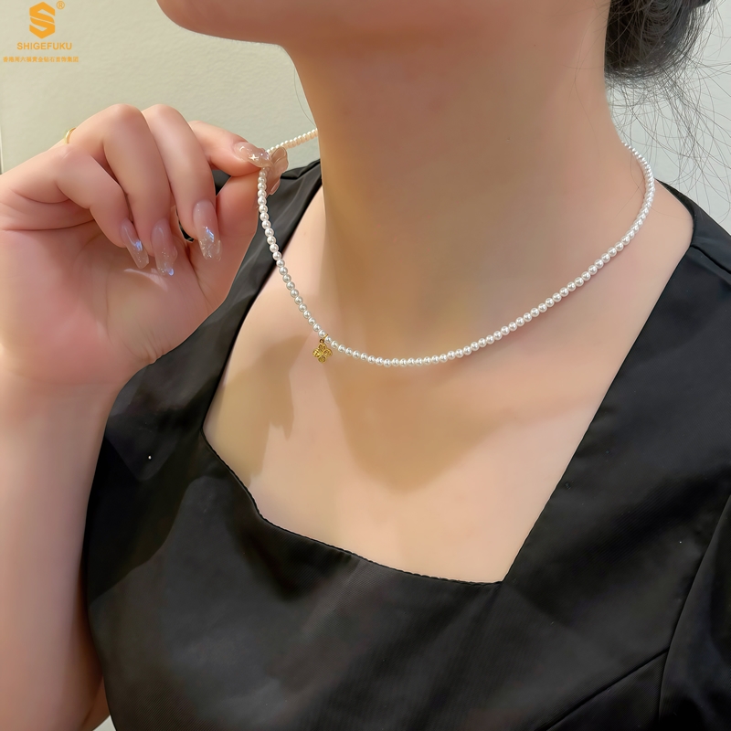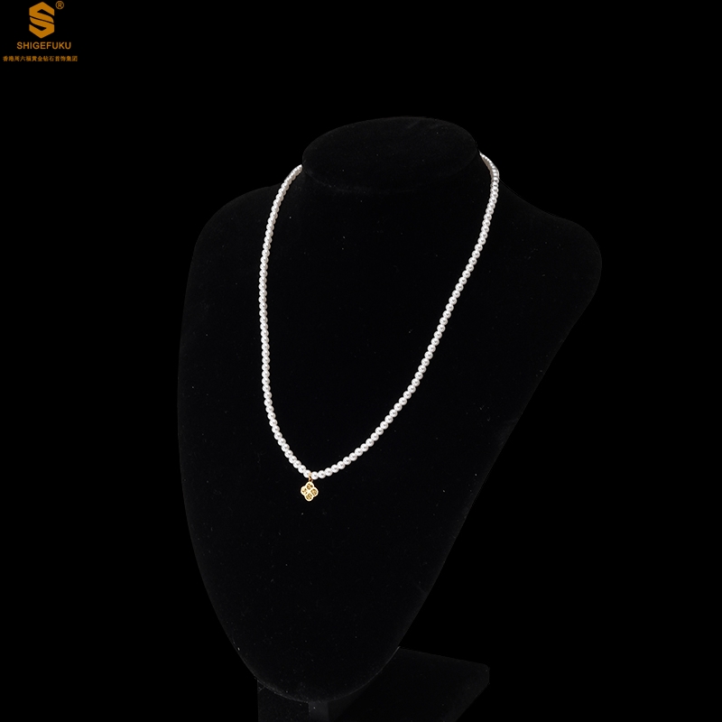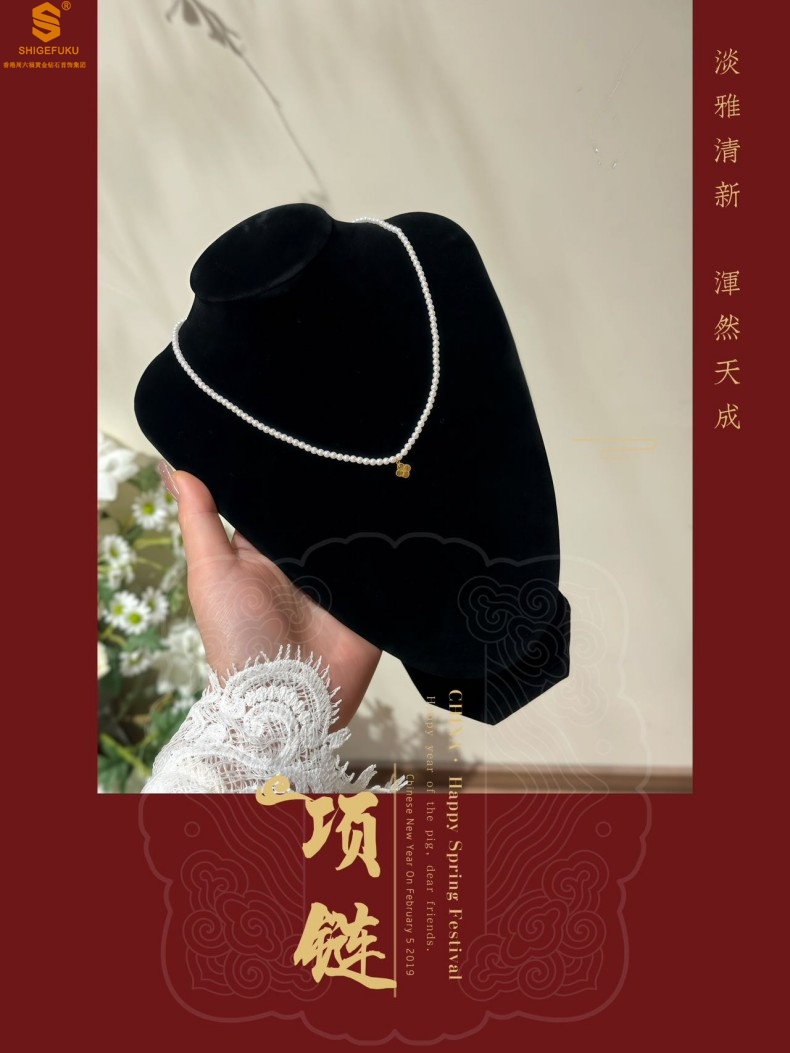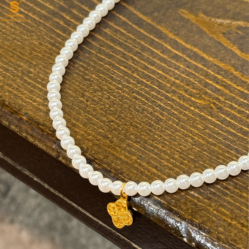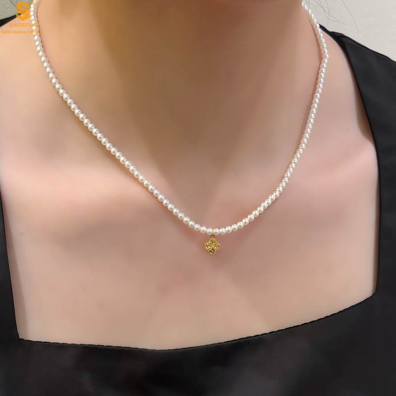 【品名】足金内嵌足银CNC精雕有钱花吊坠珍珠项链(高定礼盒)