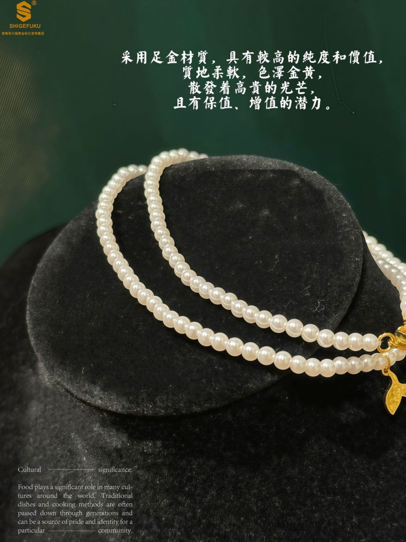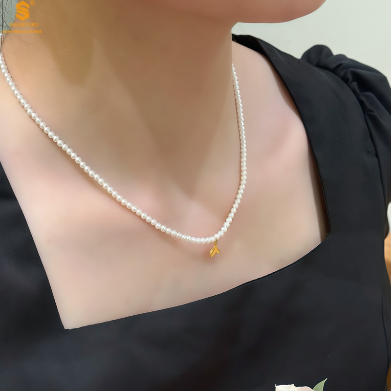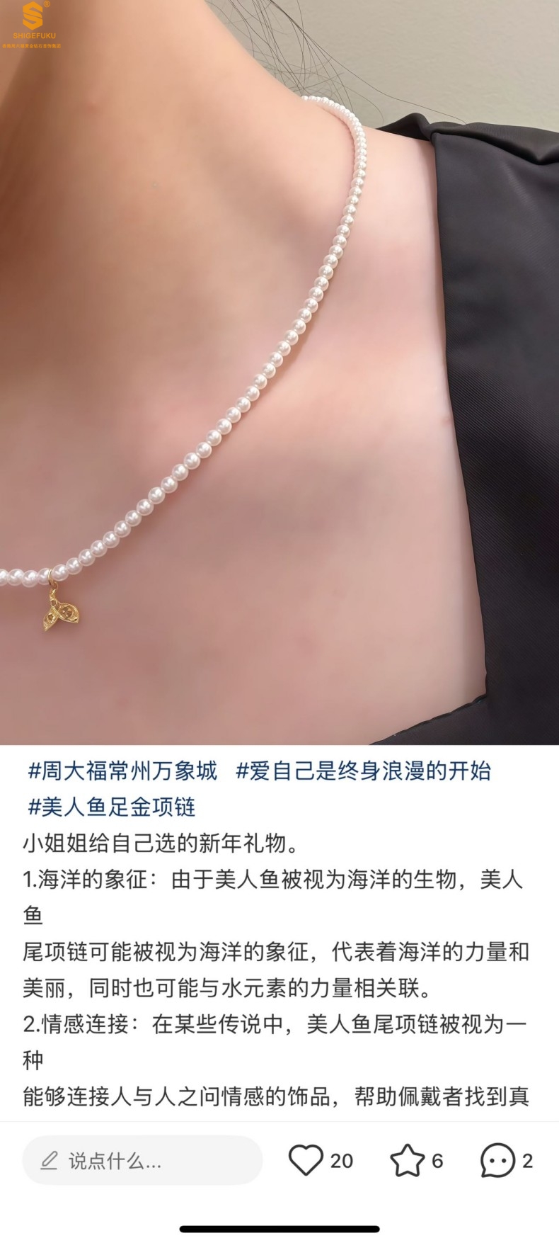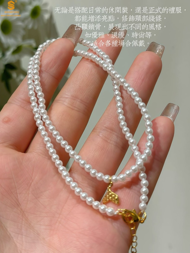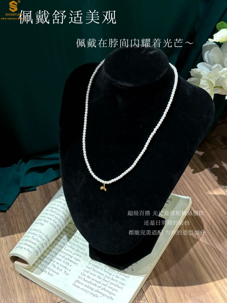 【品名】足金内嵌足银CNC精雕美人鱼尾吊坠珍珠项链(高定礼盒)