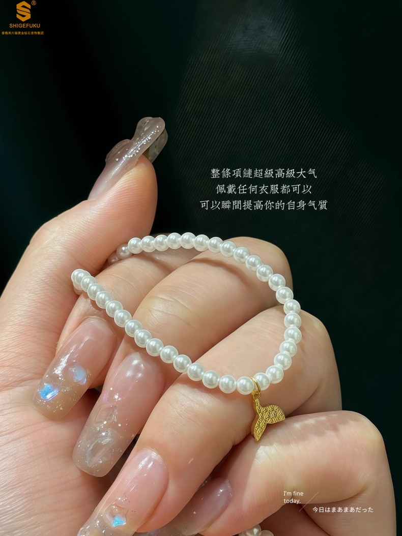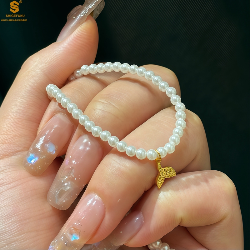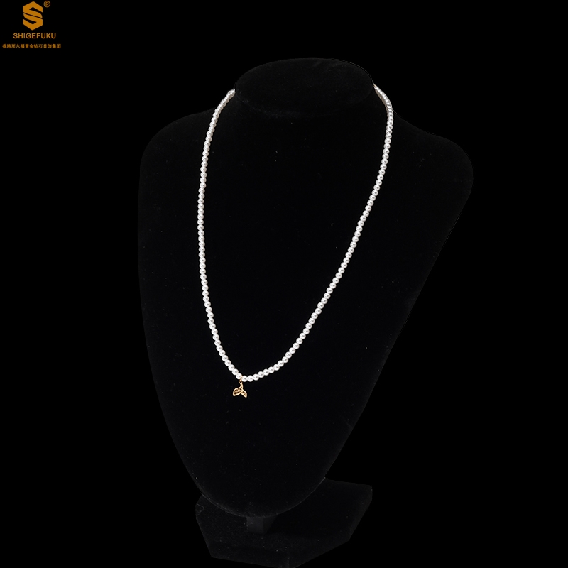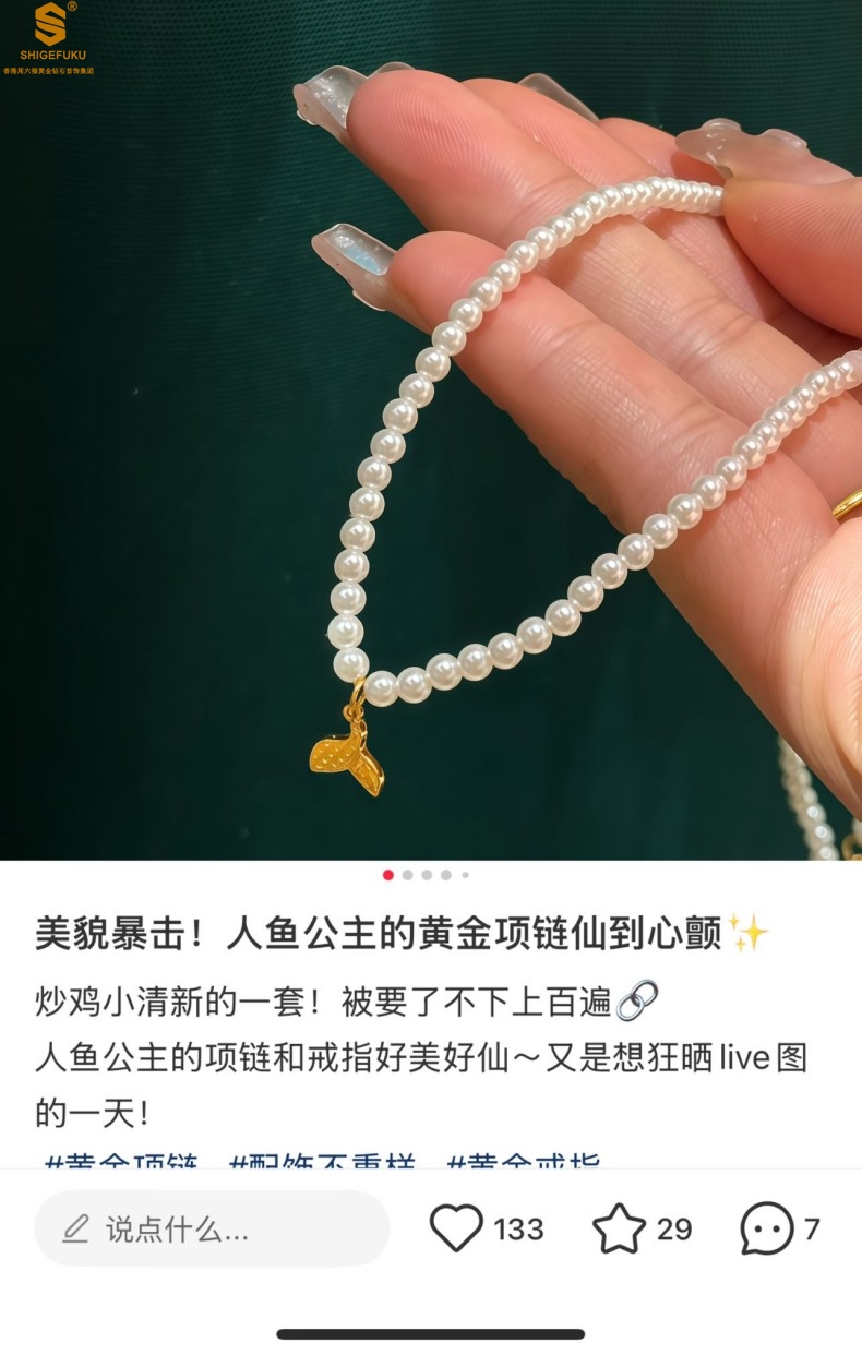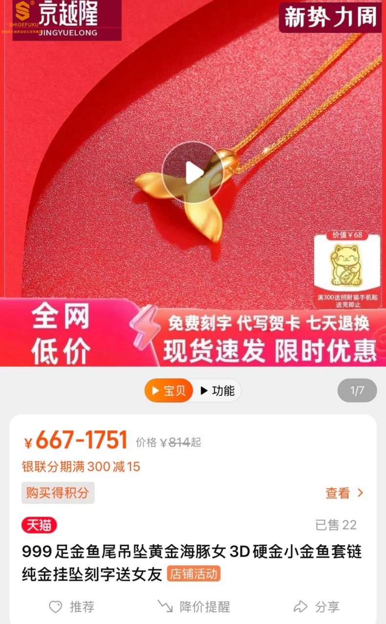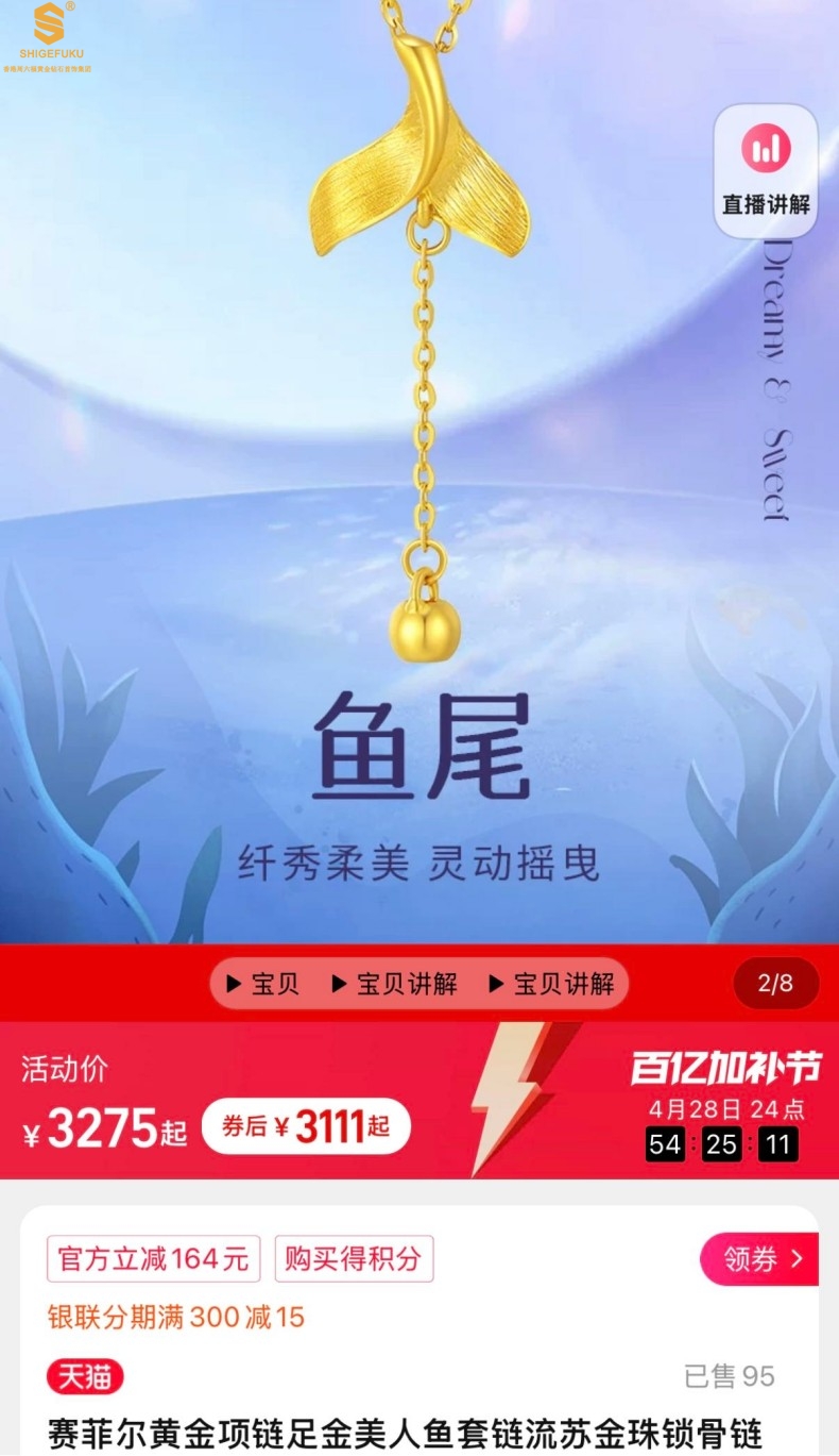 【品名】足金内嵌足银CNC精雕美人鱼尾吊坠珍珠项链(高定礼盒)