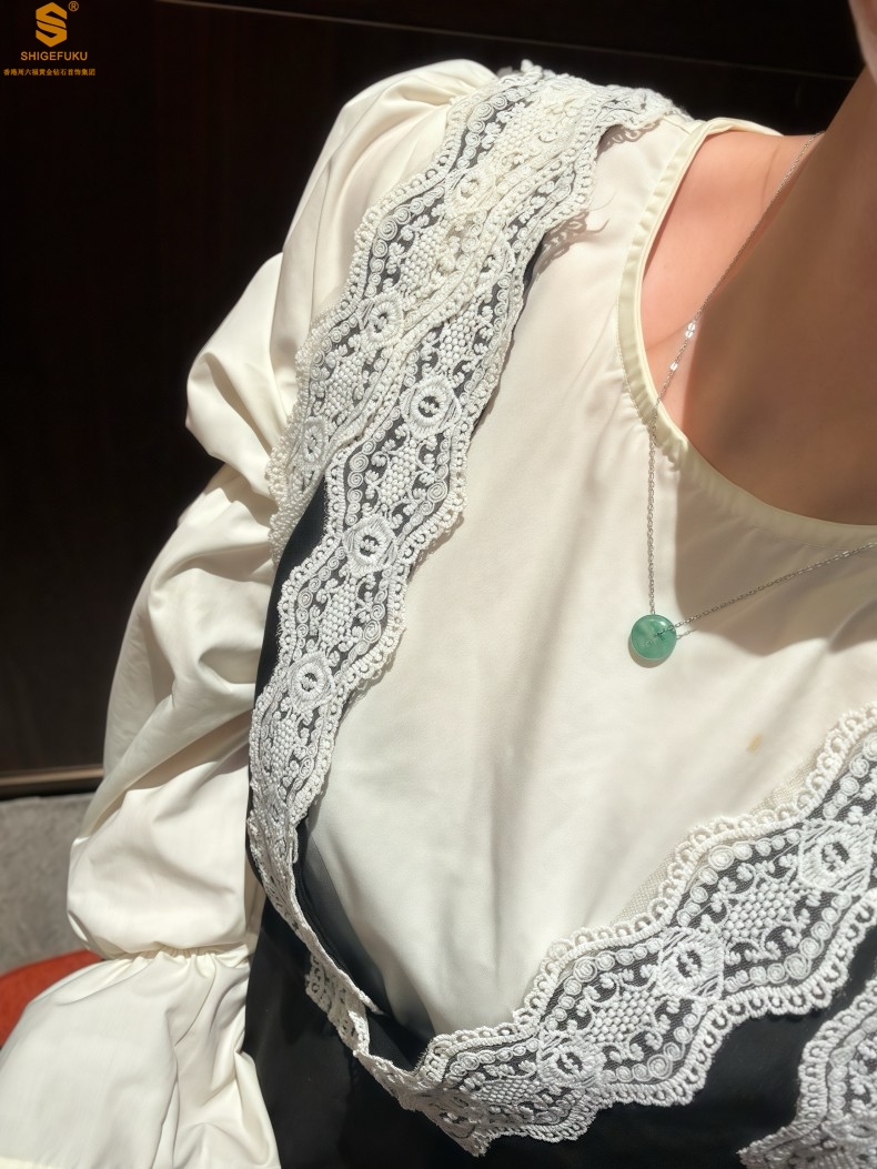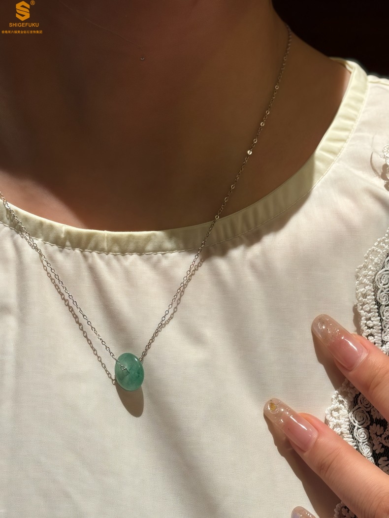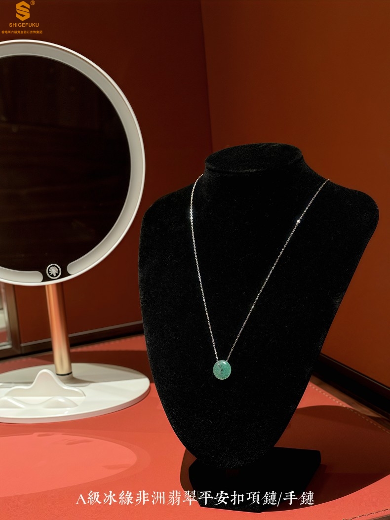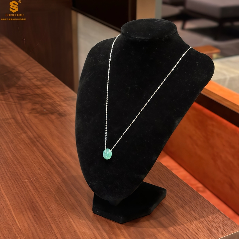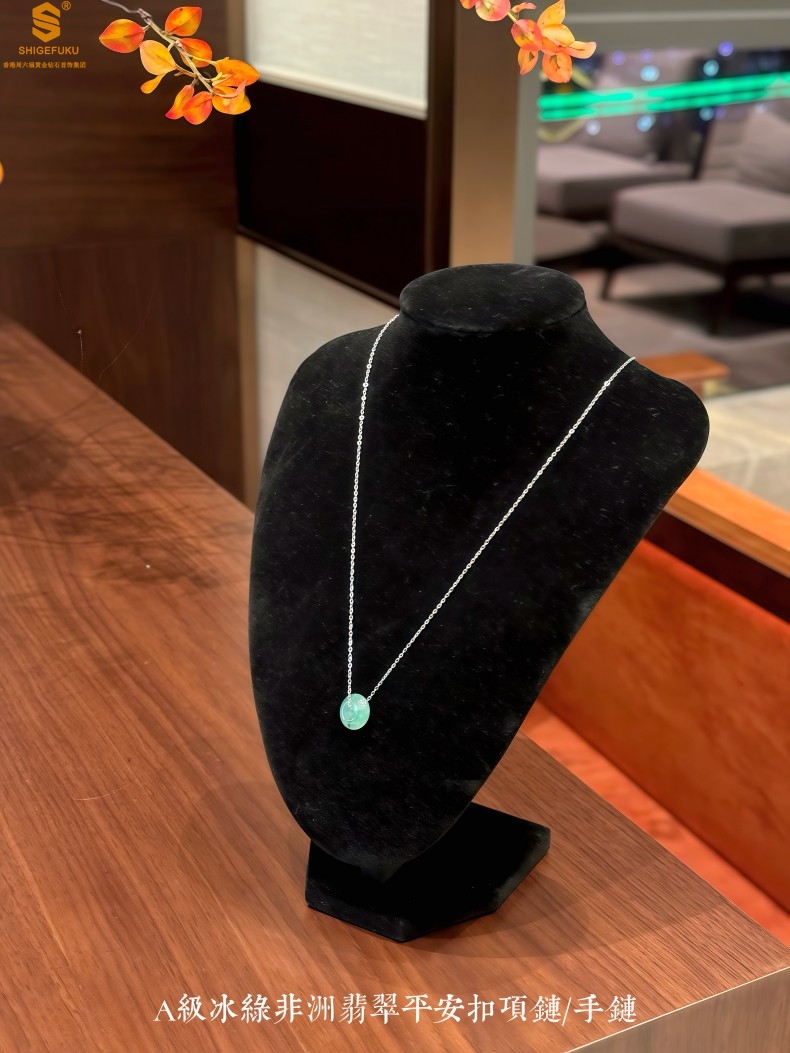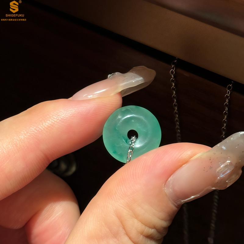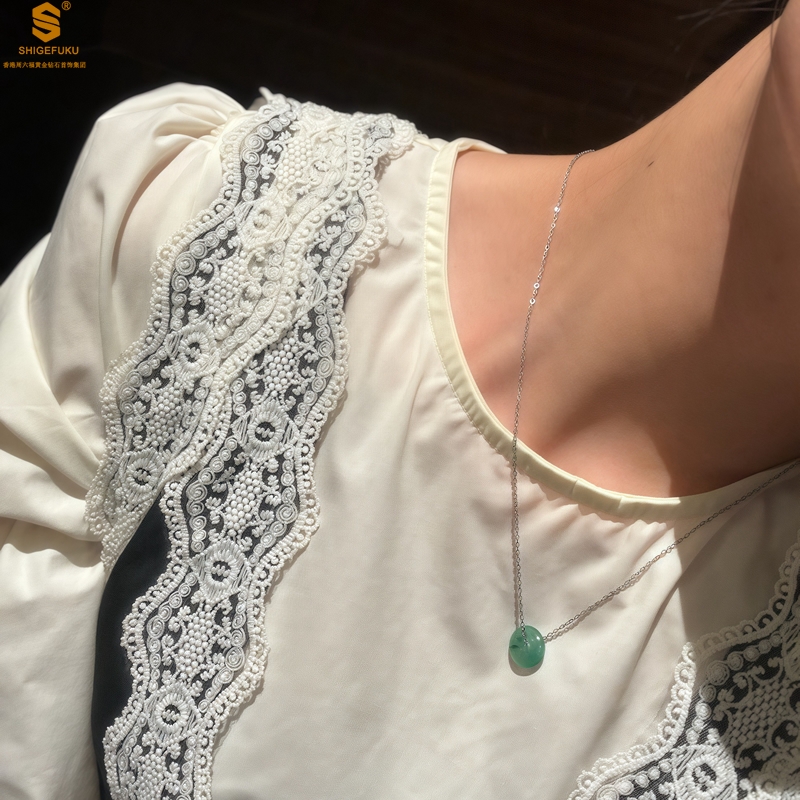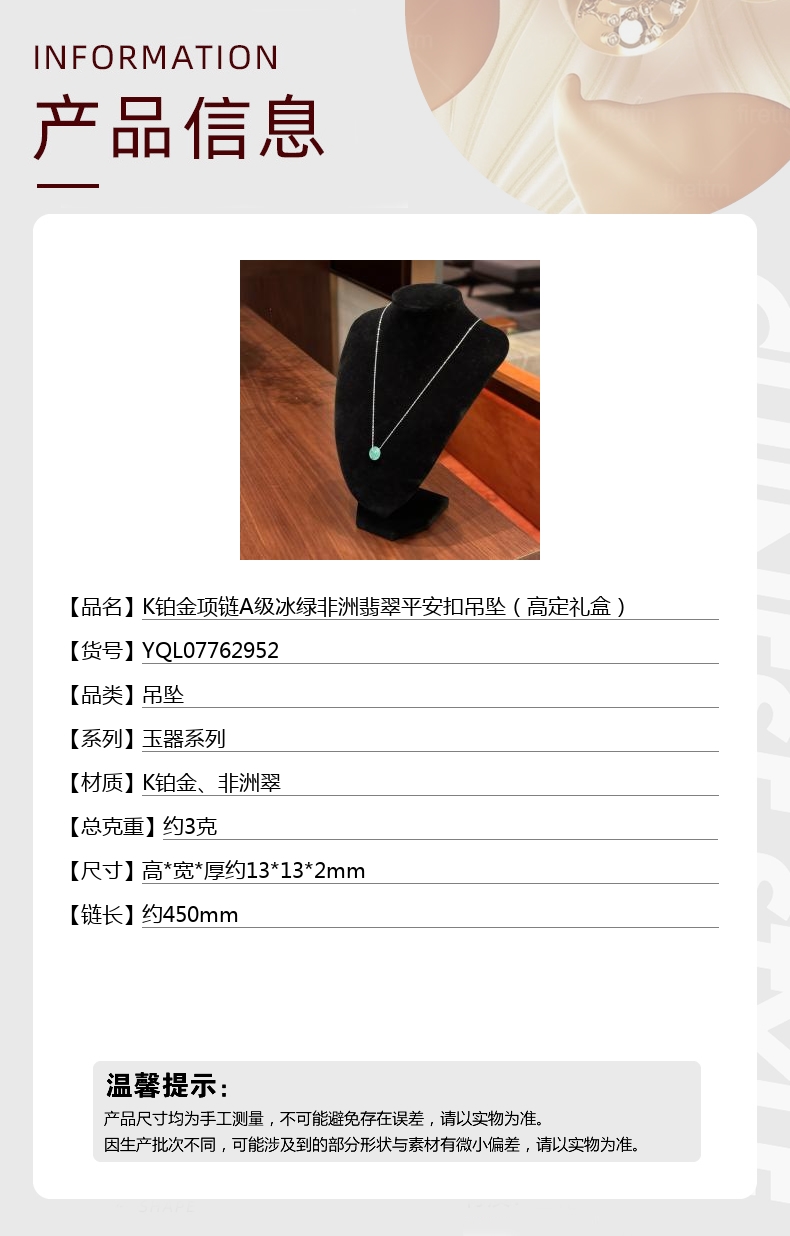 【品名】K铂金项链A级冰绿非洲翡翠平安扣吊坠(高定礼盒)