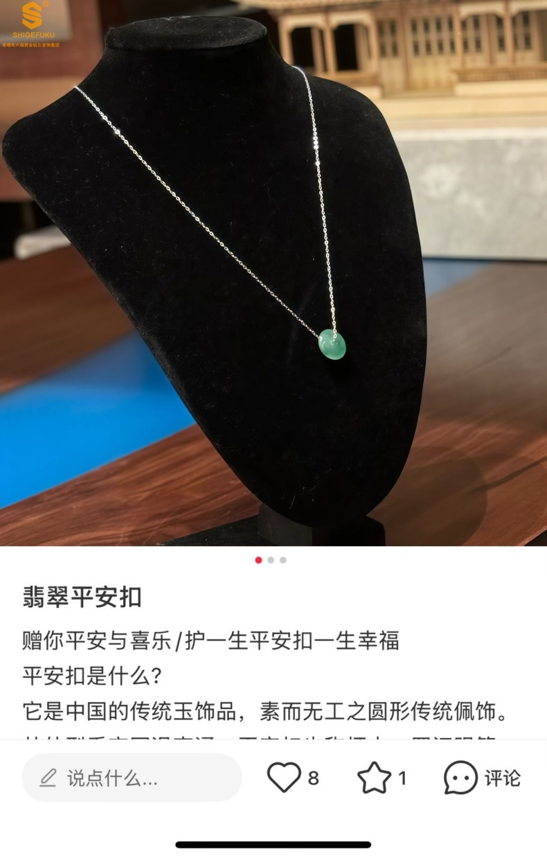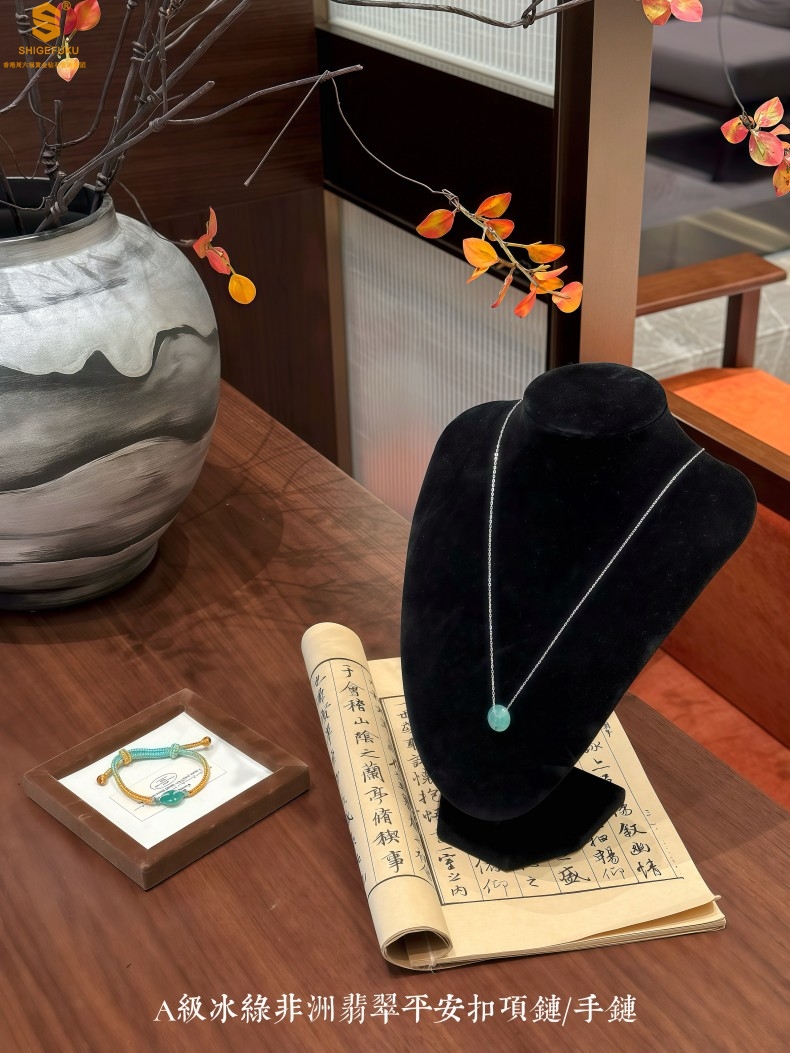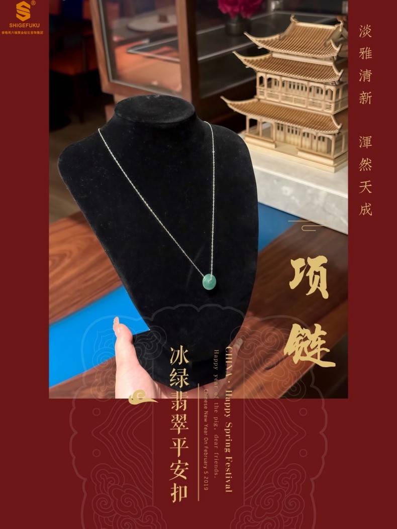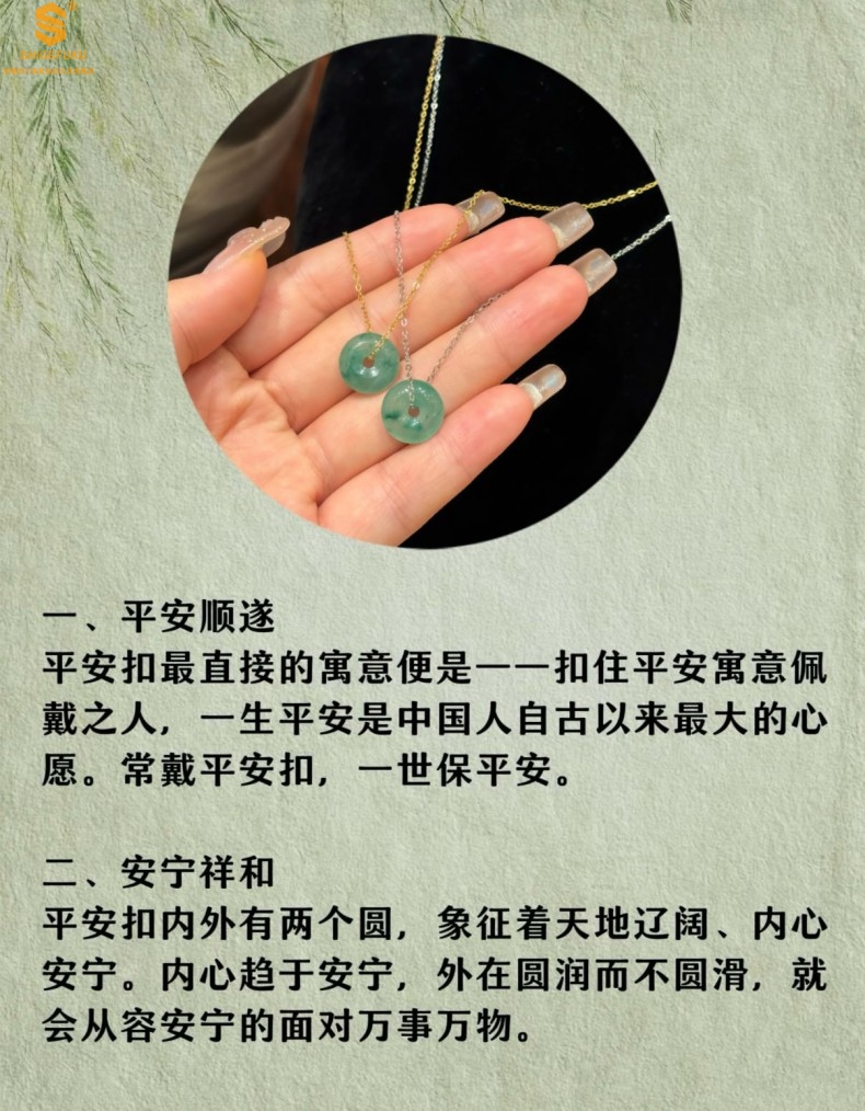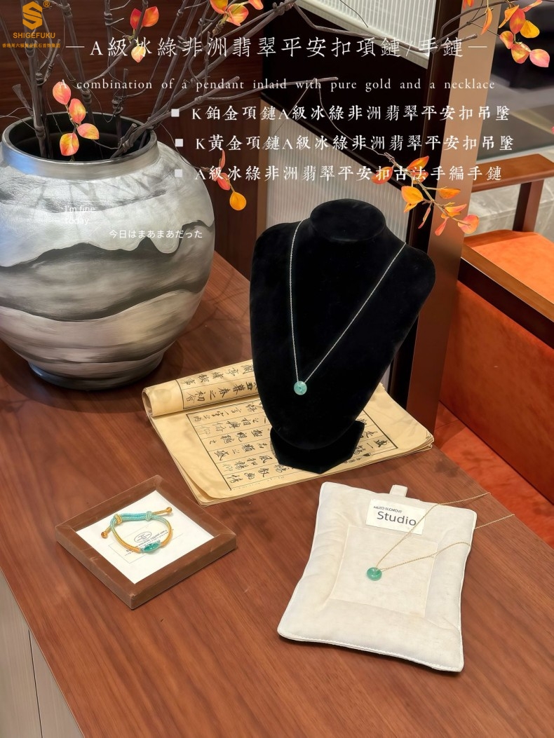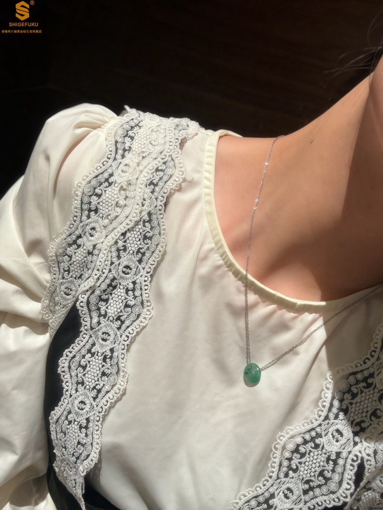 【品名】K铂金项链A级冰绿非洲翡翠平安扣吊坠(高定礼盒)