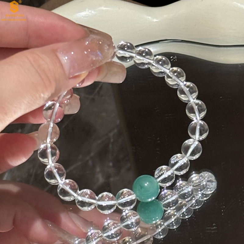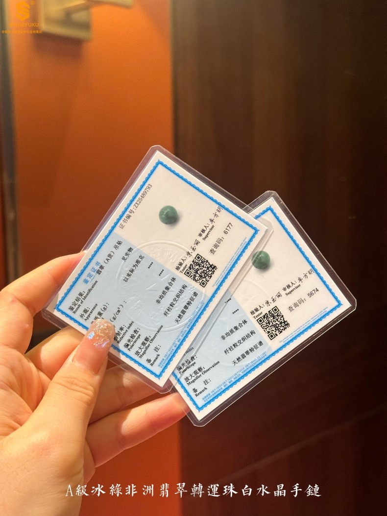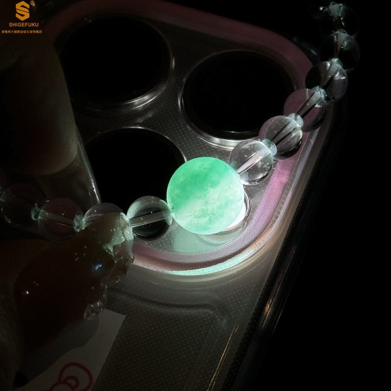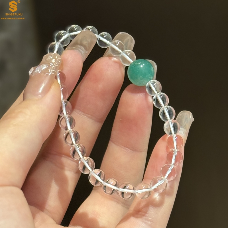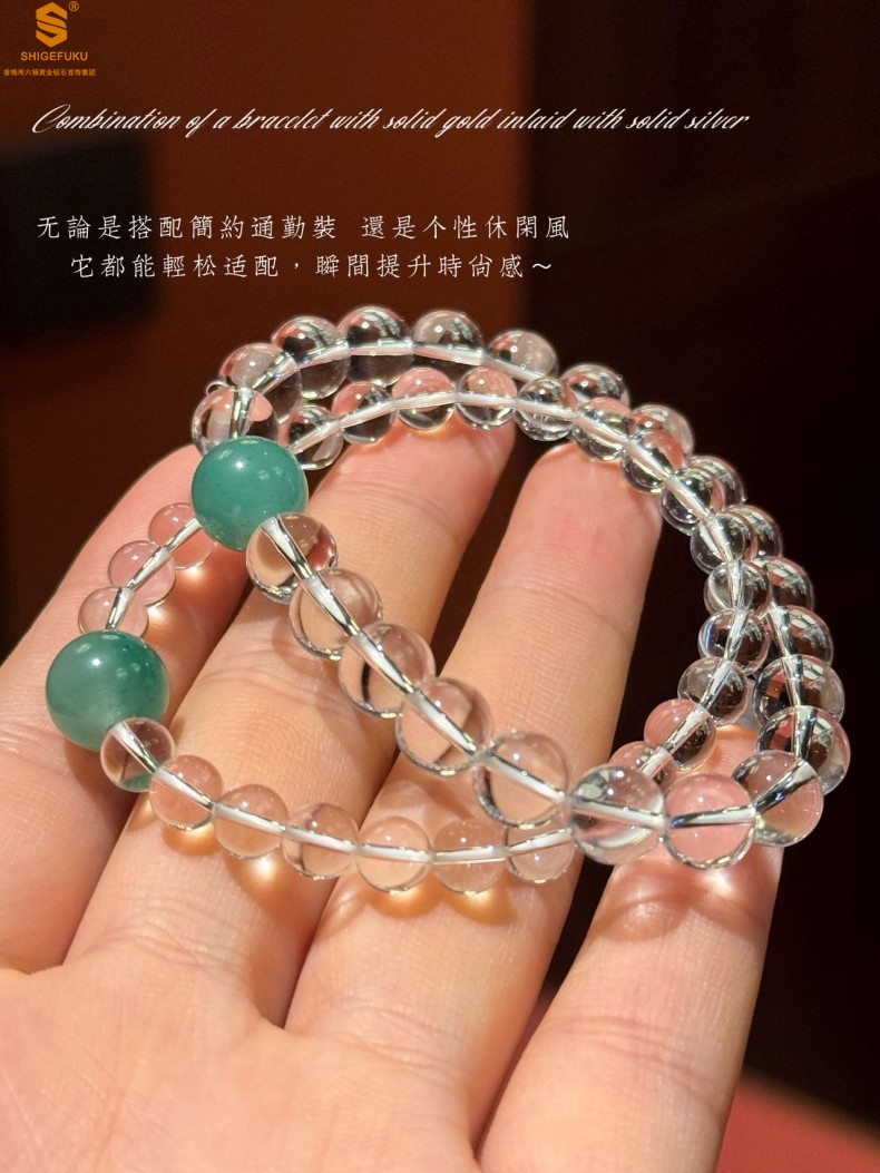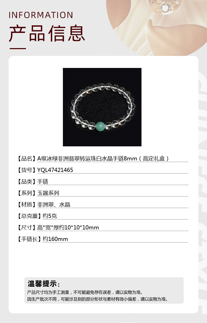 【品名】A级冰绿非洲翡翠转运珠白水晶手链8mm(高定礼盒)