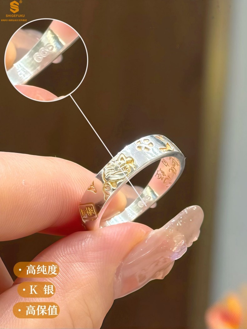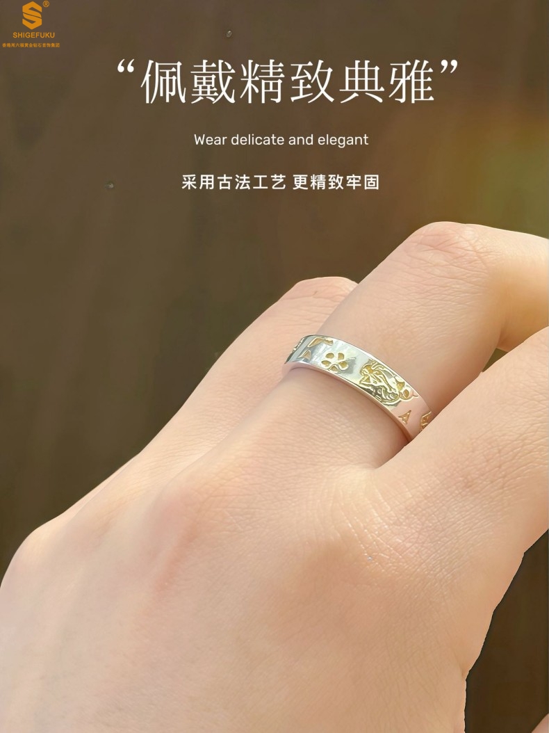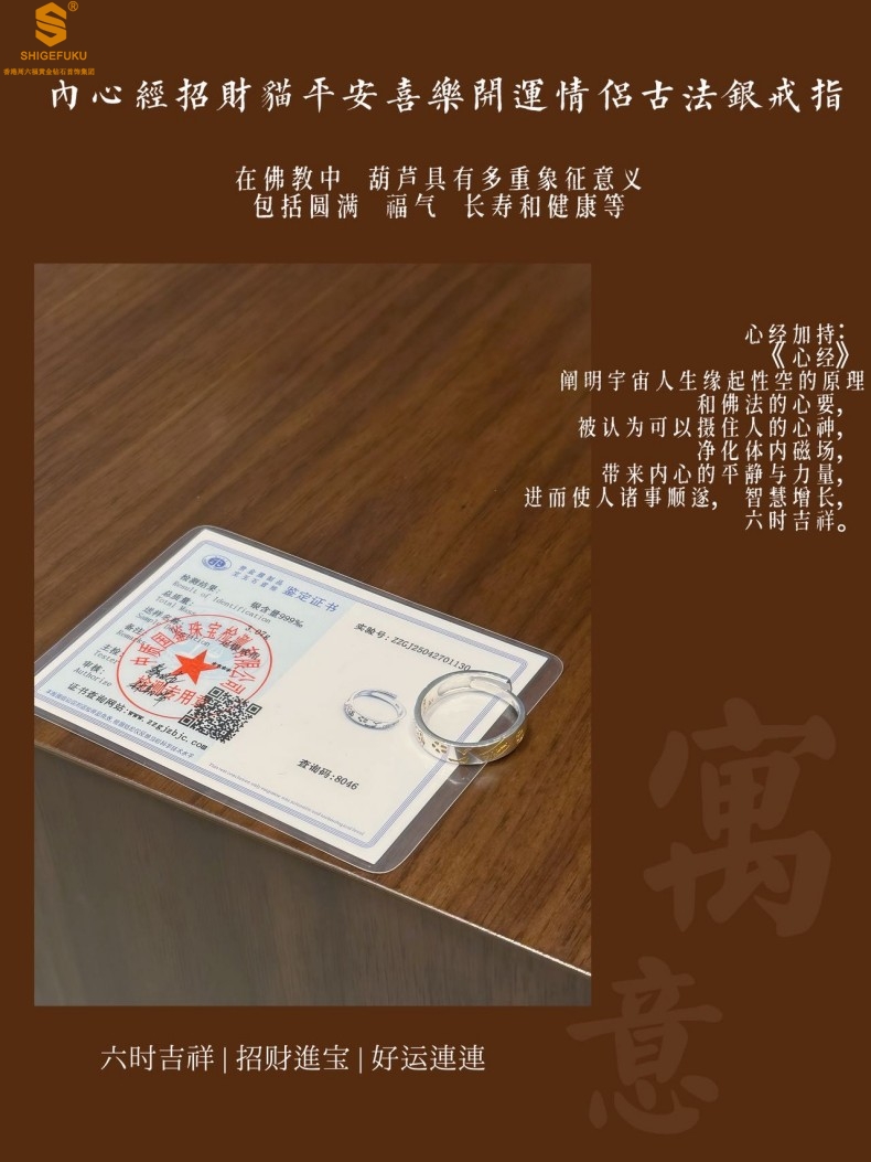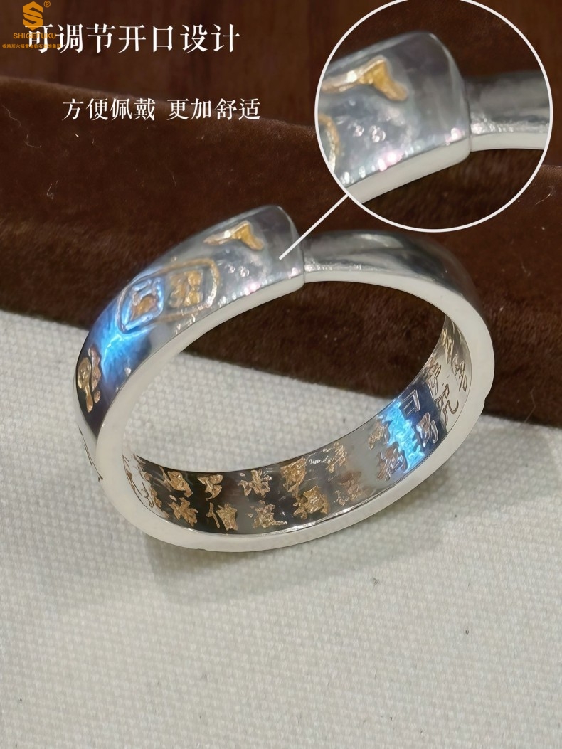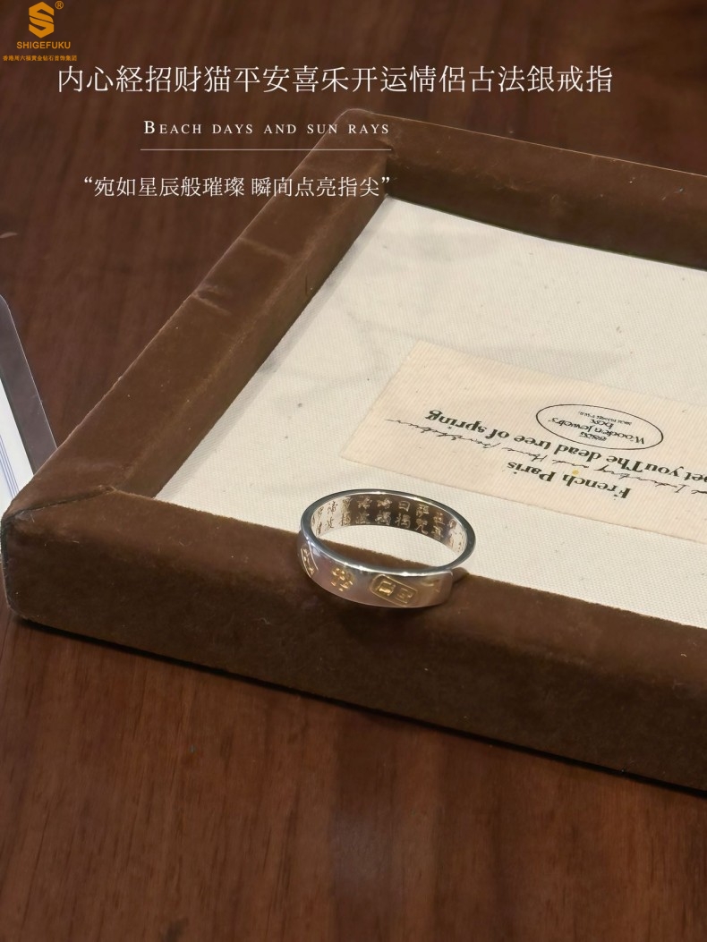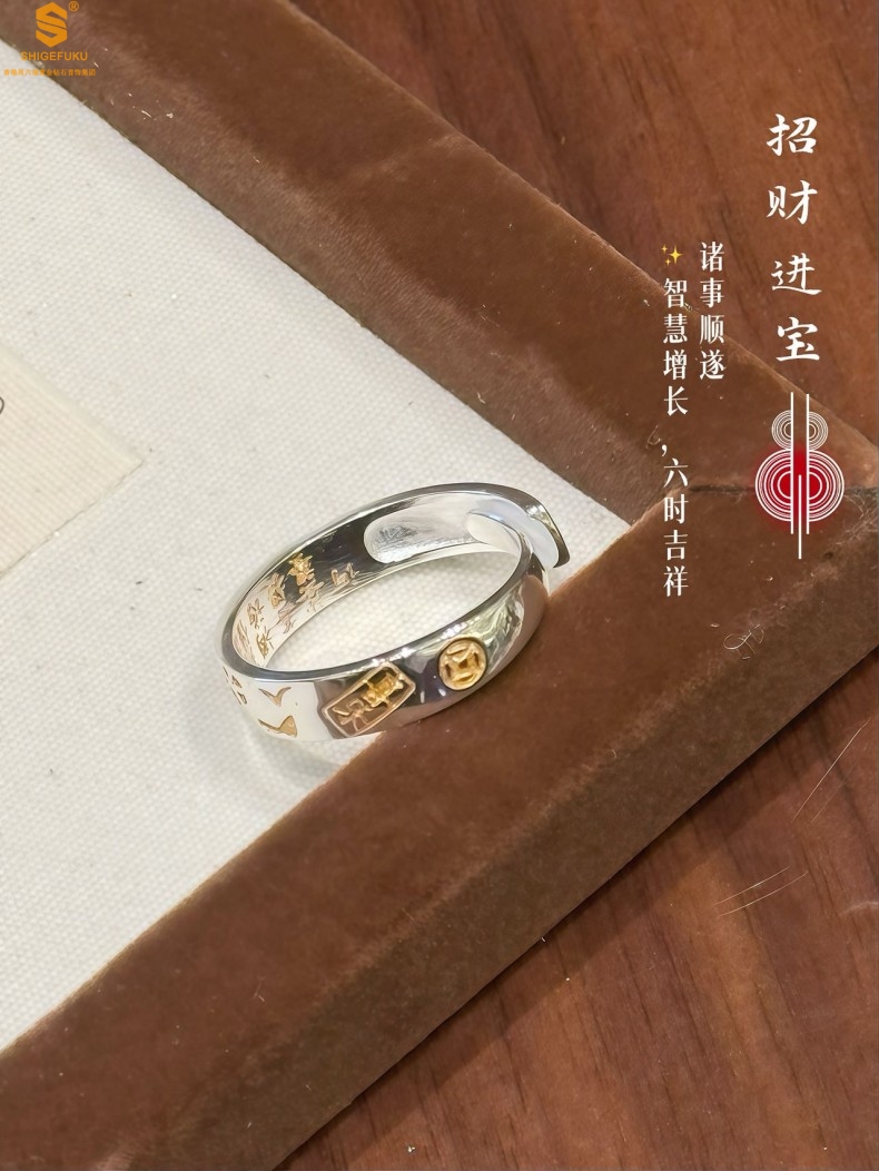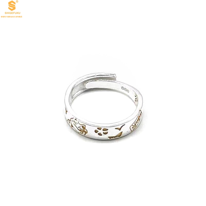 【品名】内心经招财猫平安喜乐开运情侣古法K银戒指(开口可调节)