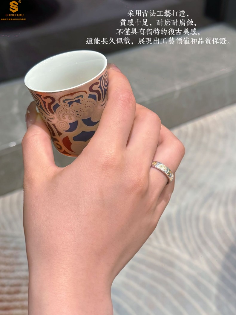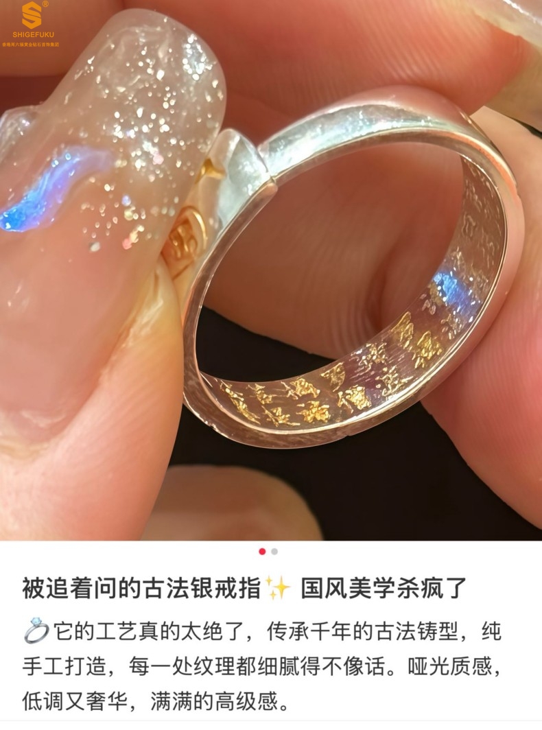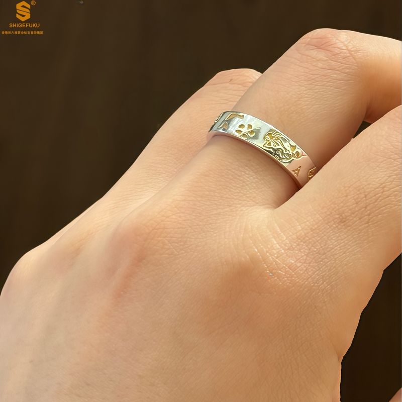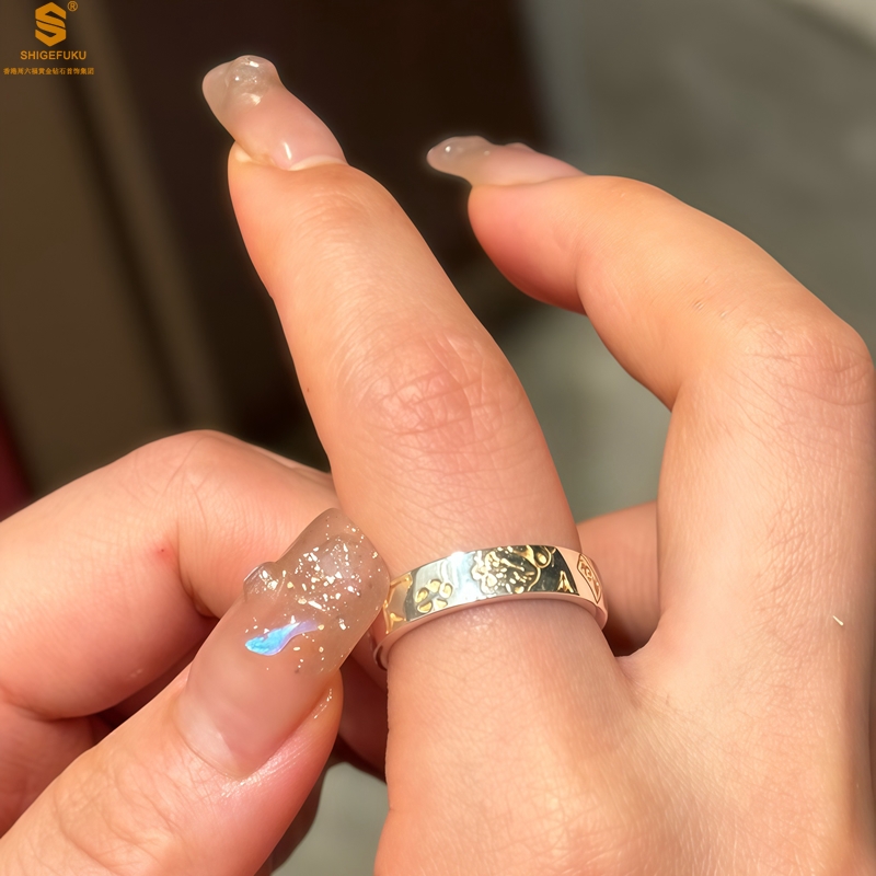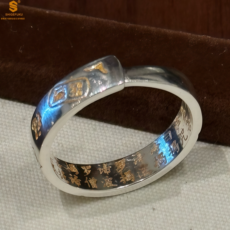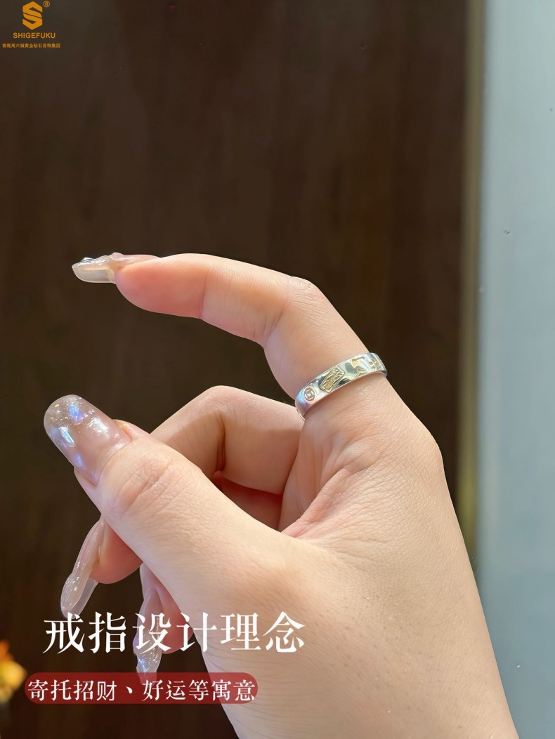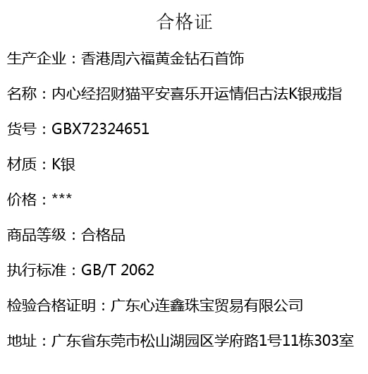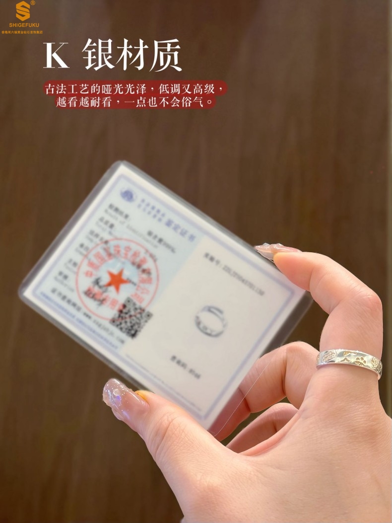 【品名】内心经招财猫平安喜乐开运情侣古法K银戒指(开口可调节)