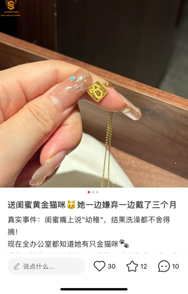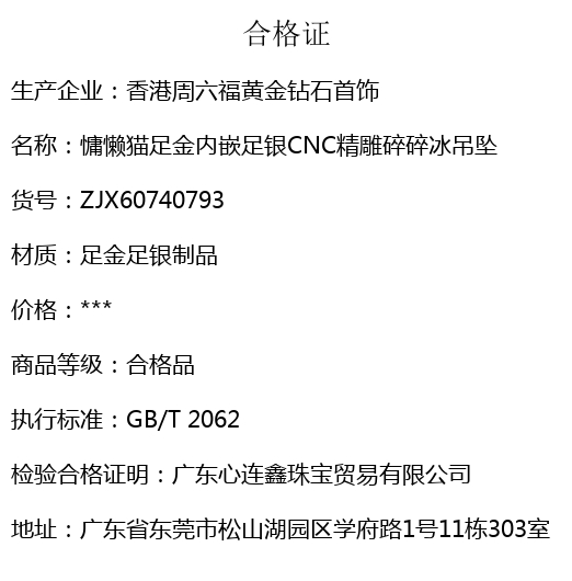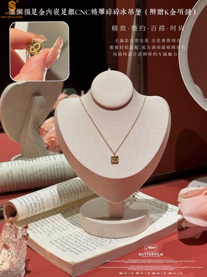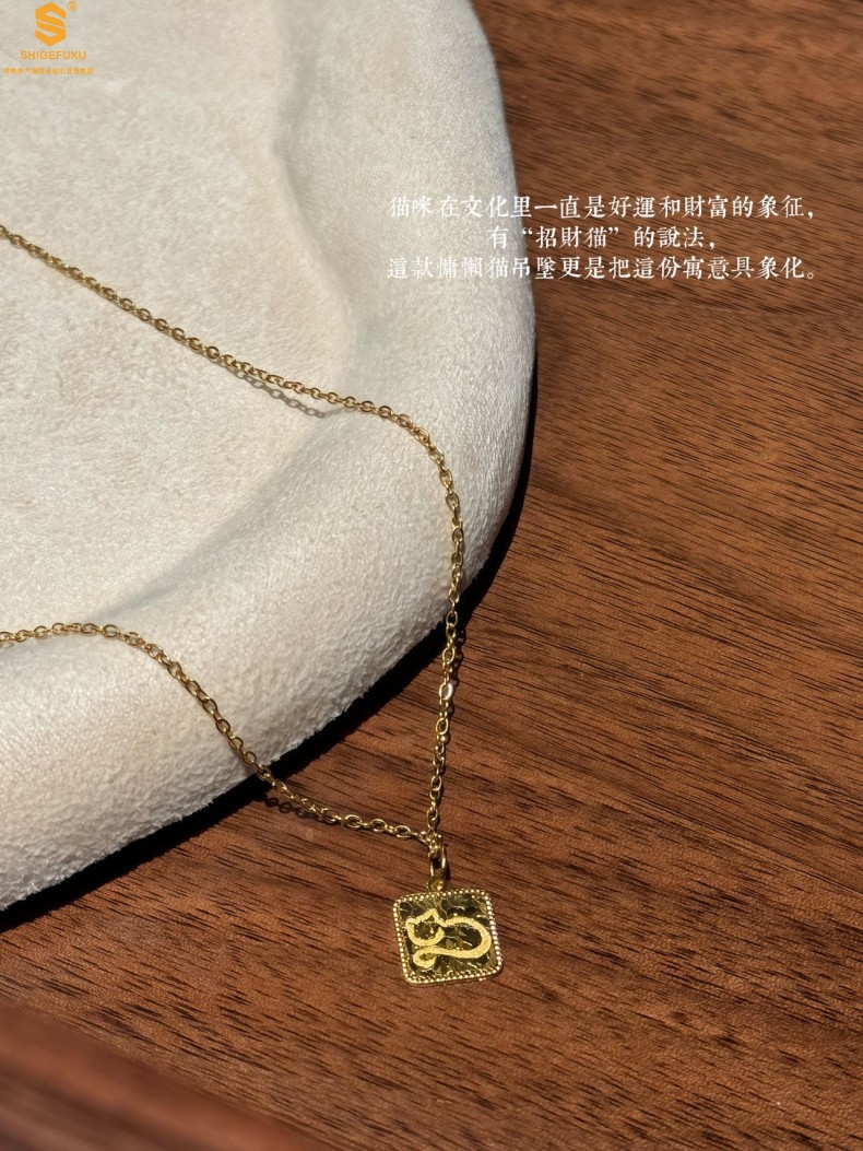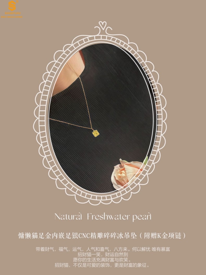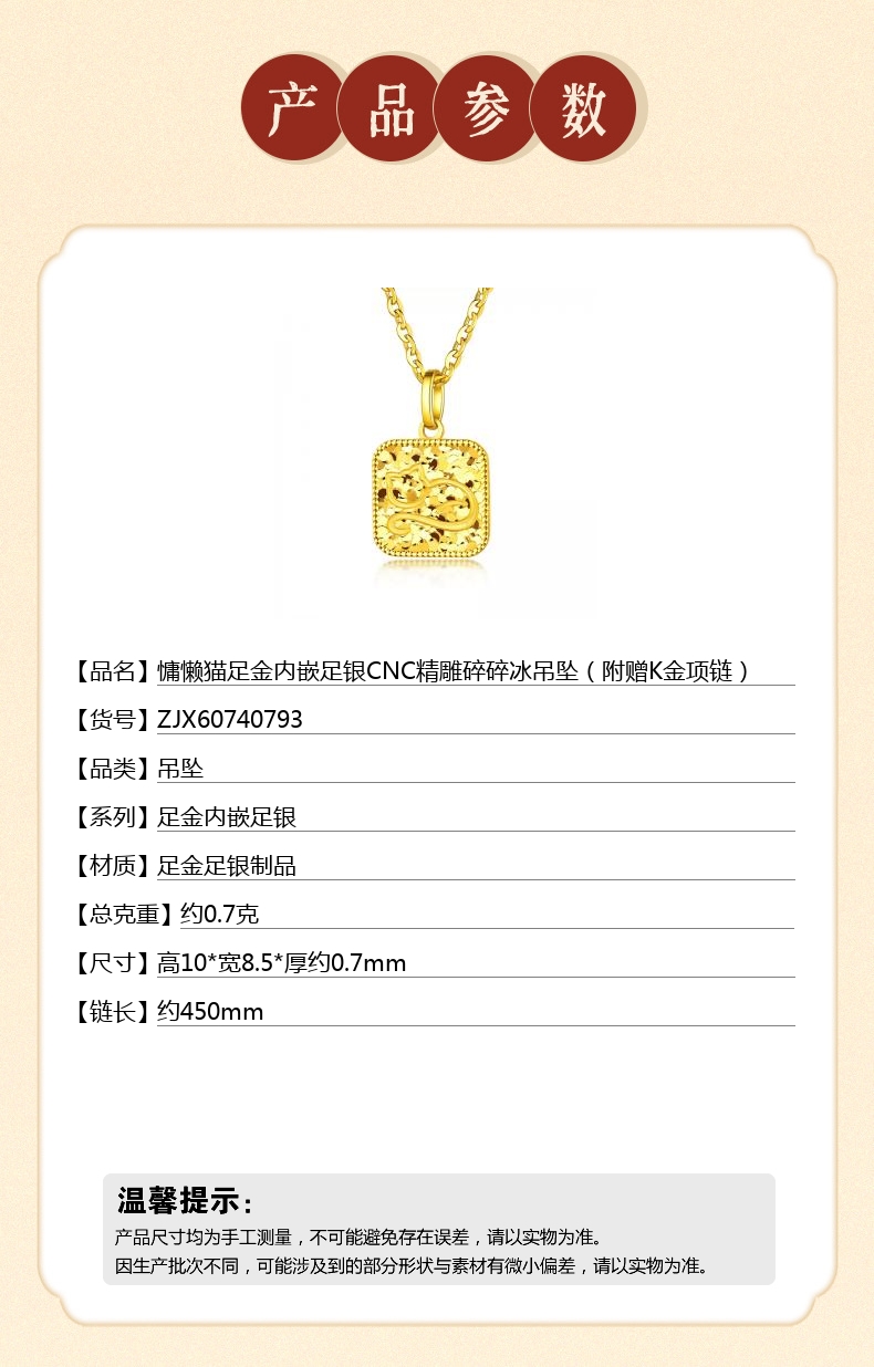 【品名】慵懒猫足金内嵌足银CNC精雕碎碎冰吊坠(附赠K金项链)