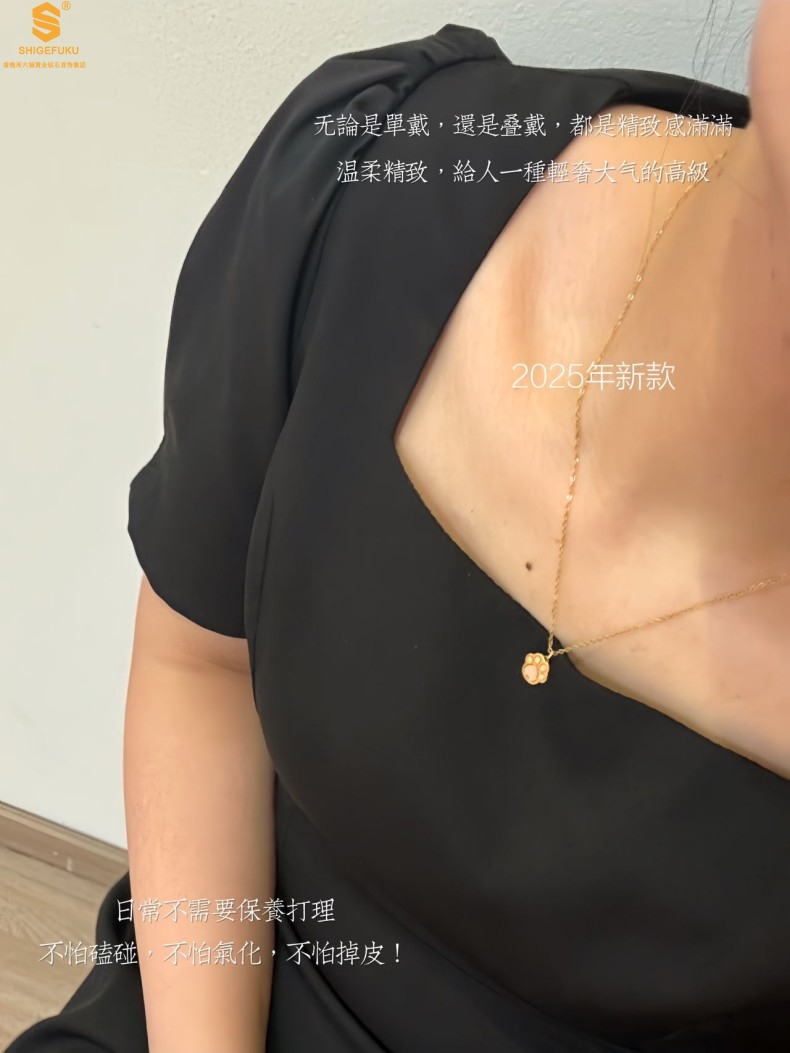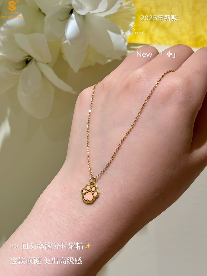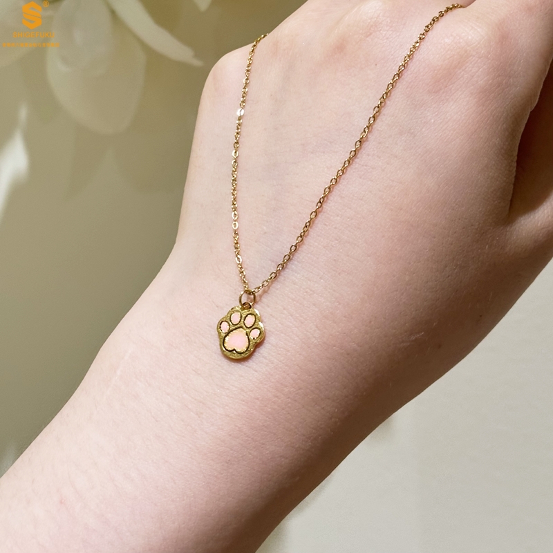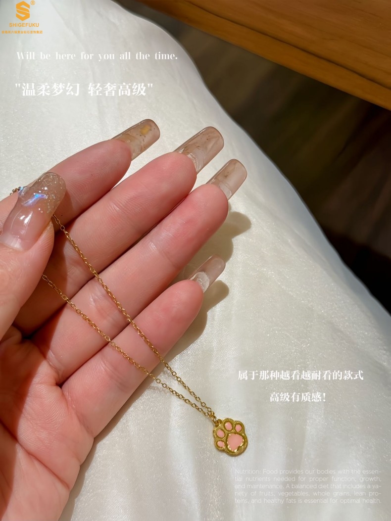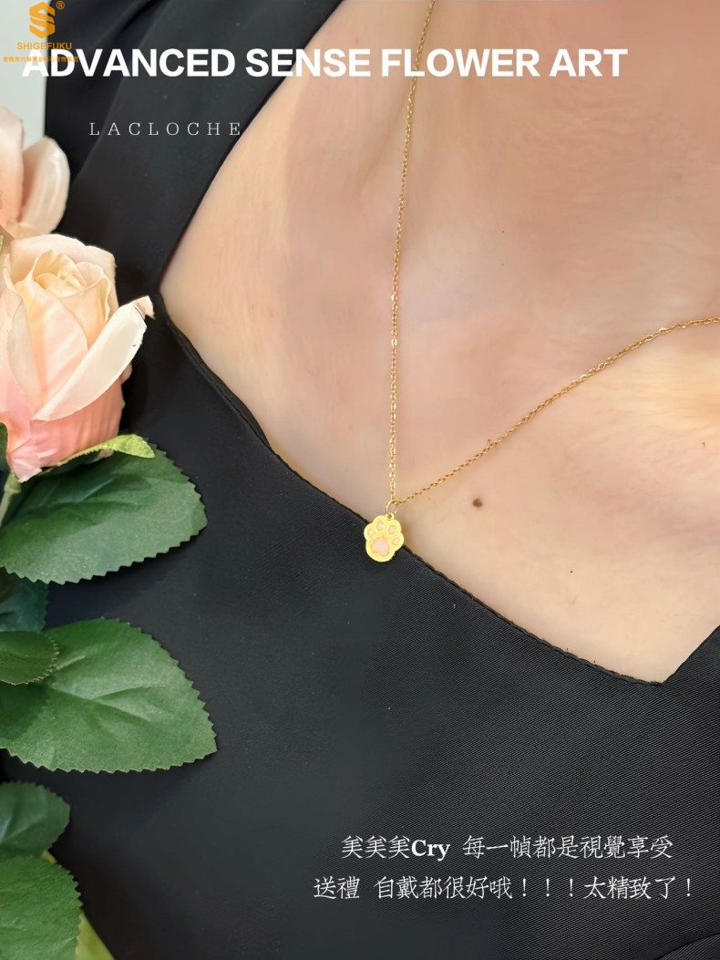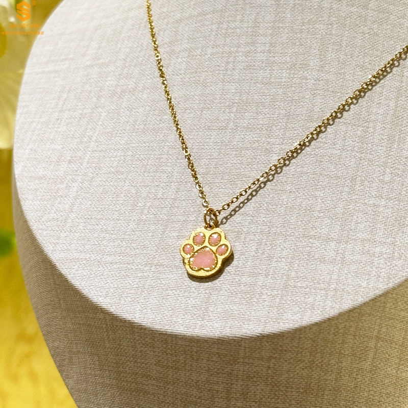 【品名】珐琅浪漫粉招财猫爪足金内嵌足银吊坠(附赠K金项链)