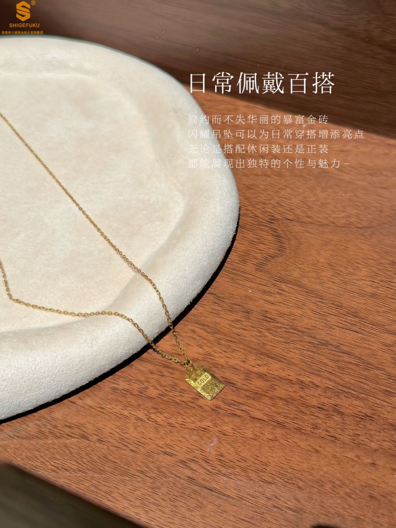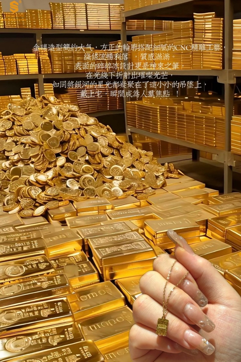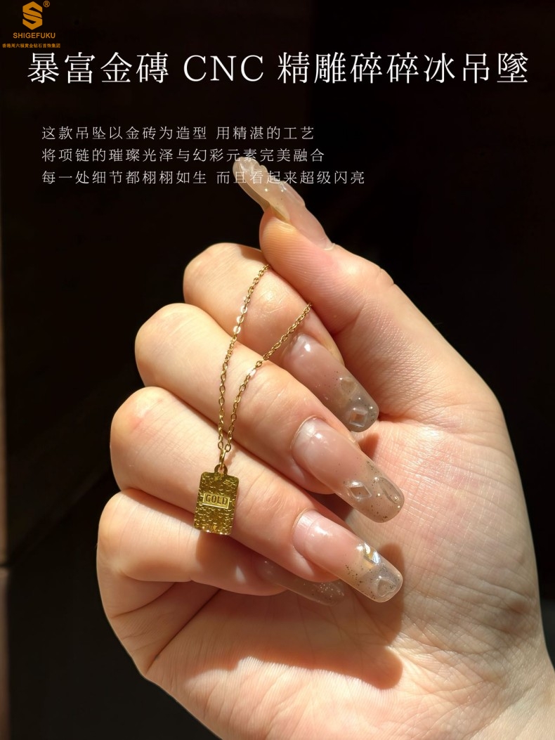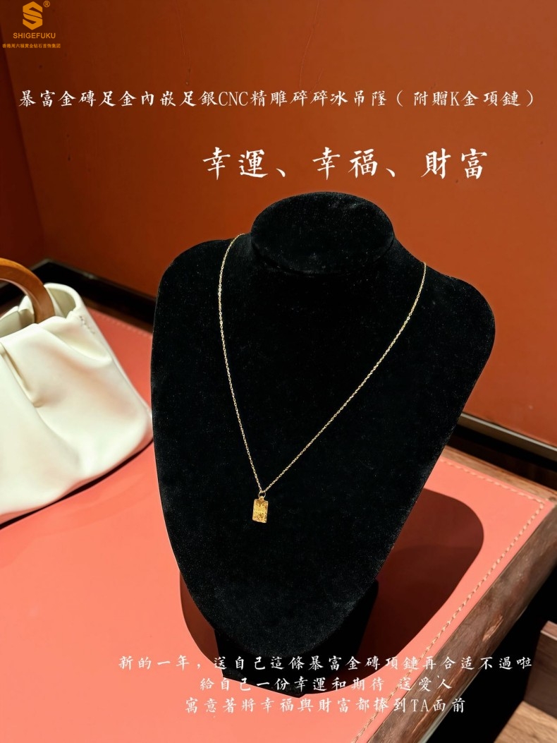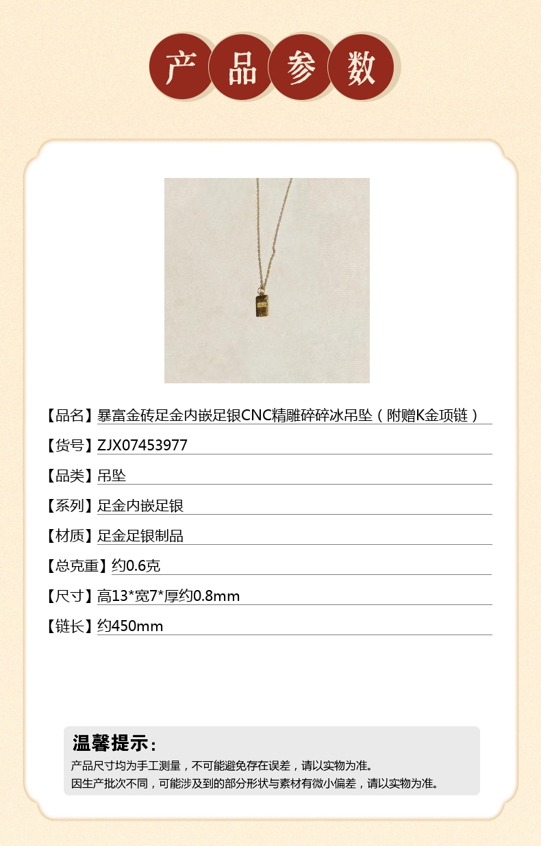 【品名】暴富金砖足金内嵌足银CNC精雕碎碎冰吊坠(附赠K金项链)