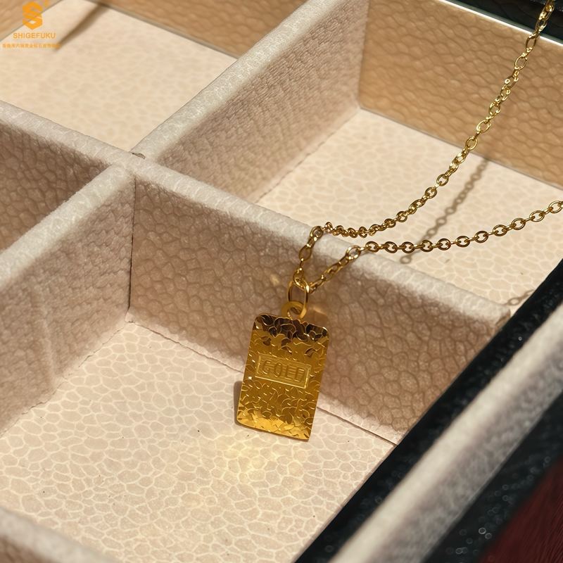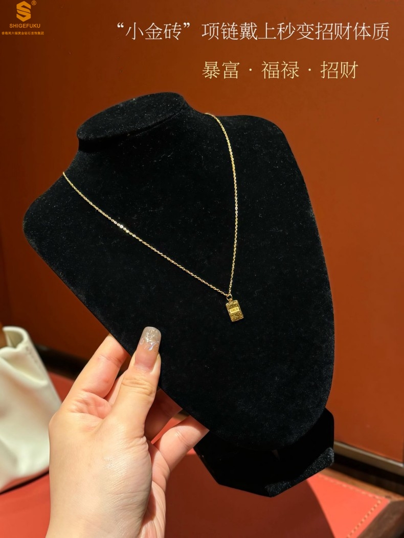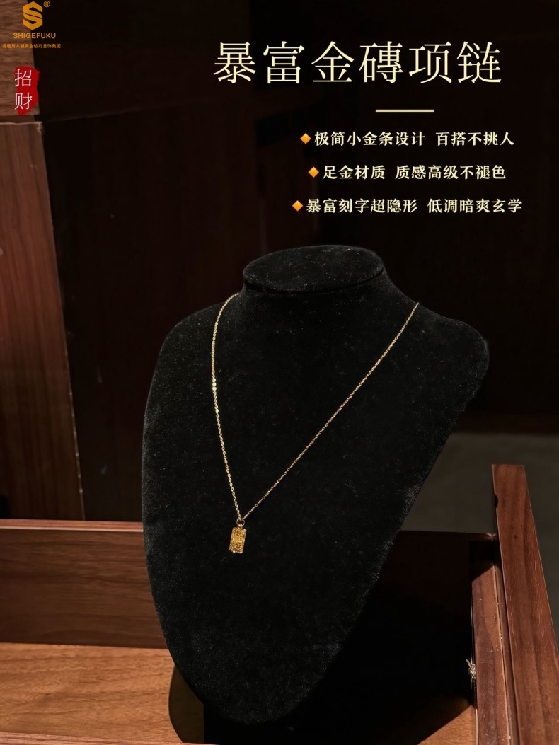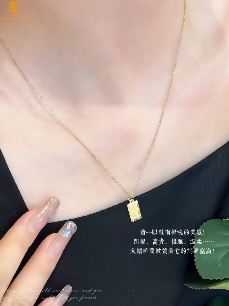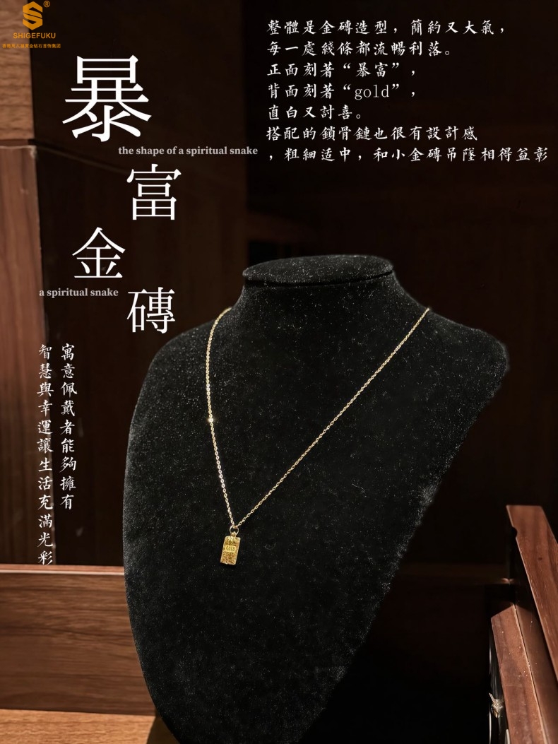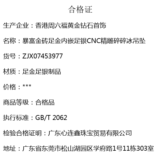 【品名】暴富金砖足金内嵌足银CNC精雕碎碎冰吊坠(附赠K金项链)