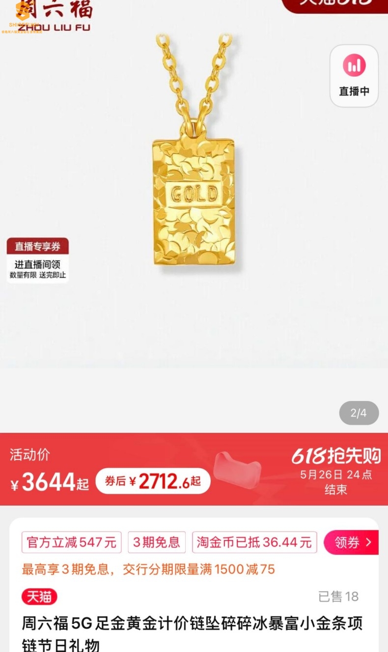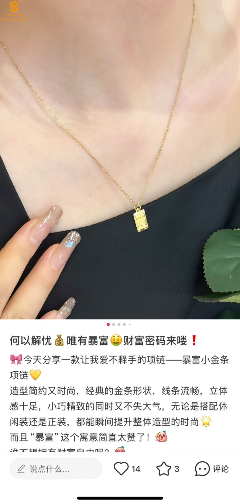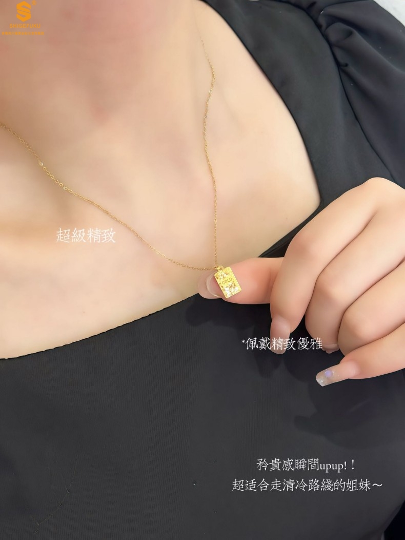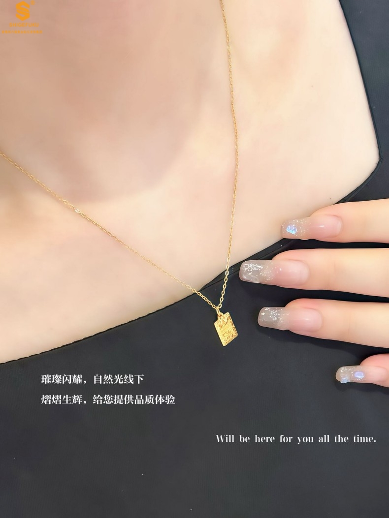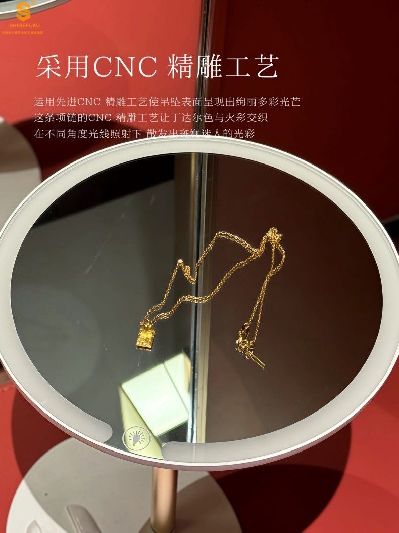 【品名】暴富金砖足金内嵌足银CNC精雕碎碎冰吊坠(附赠K金项链)