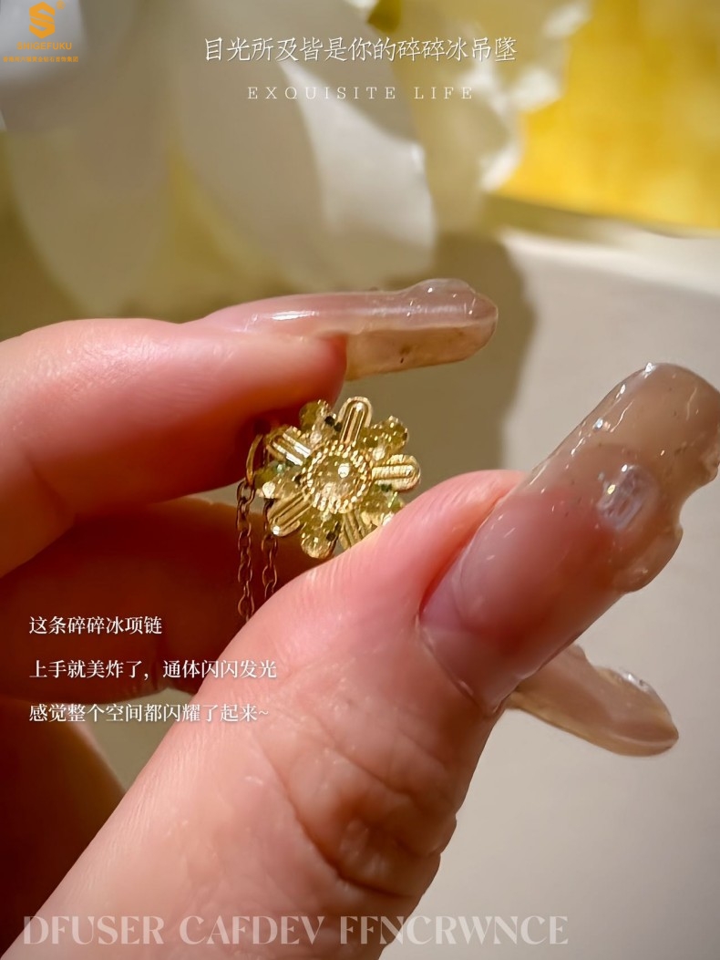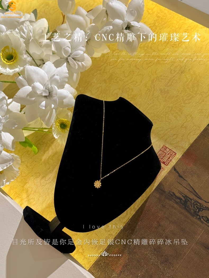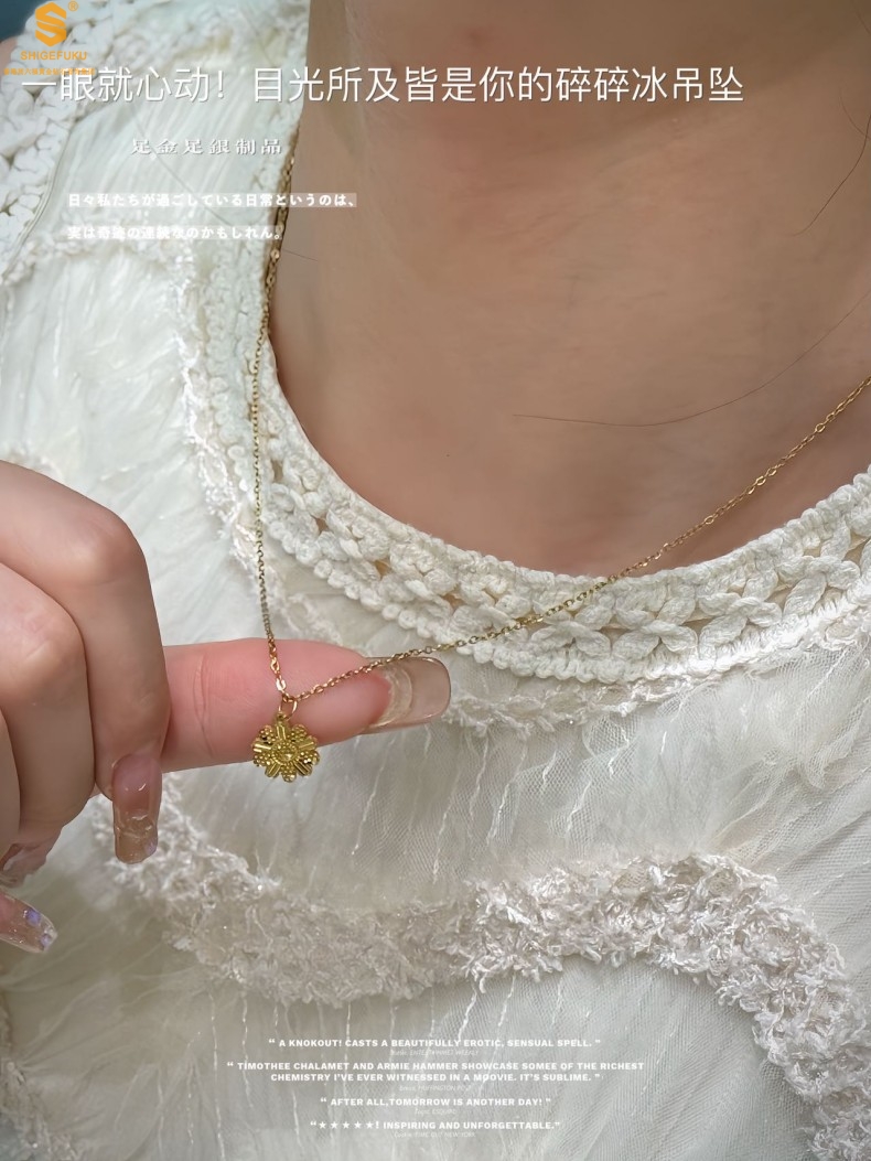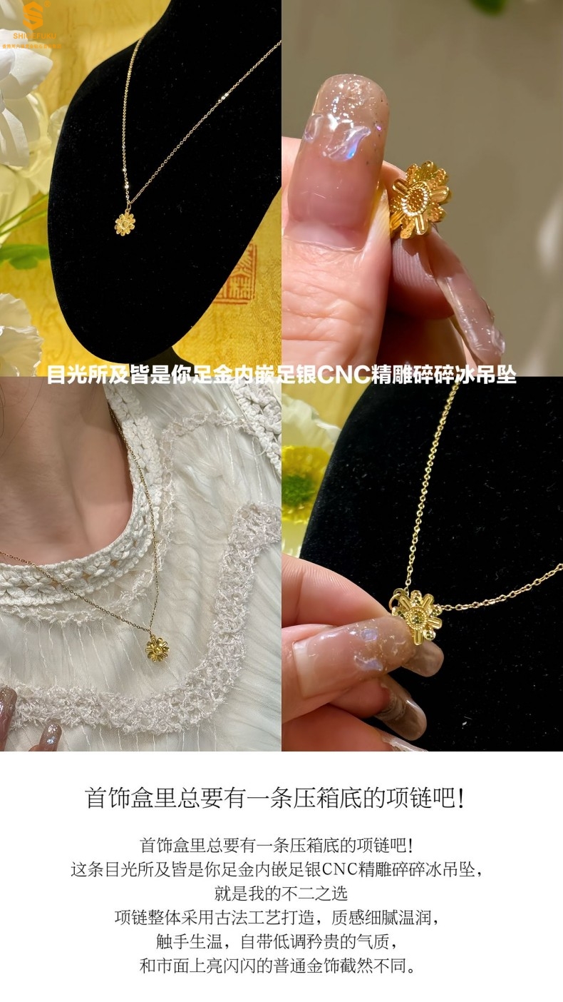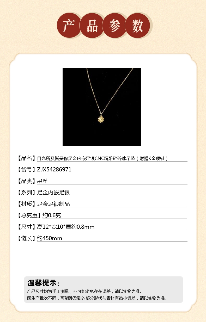 【品名】目光所及皆是你足金内嵌足银CNC精雕碎碎冰吊坠(附赠K金项链)