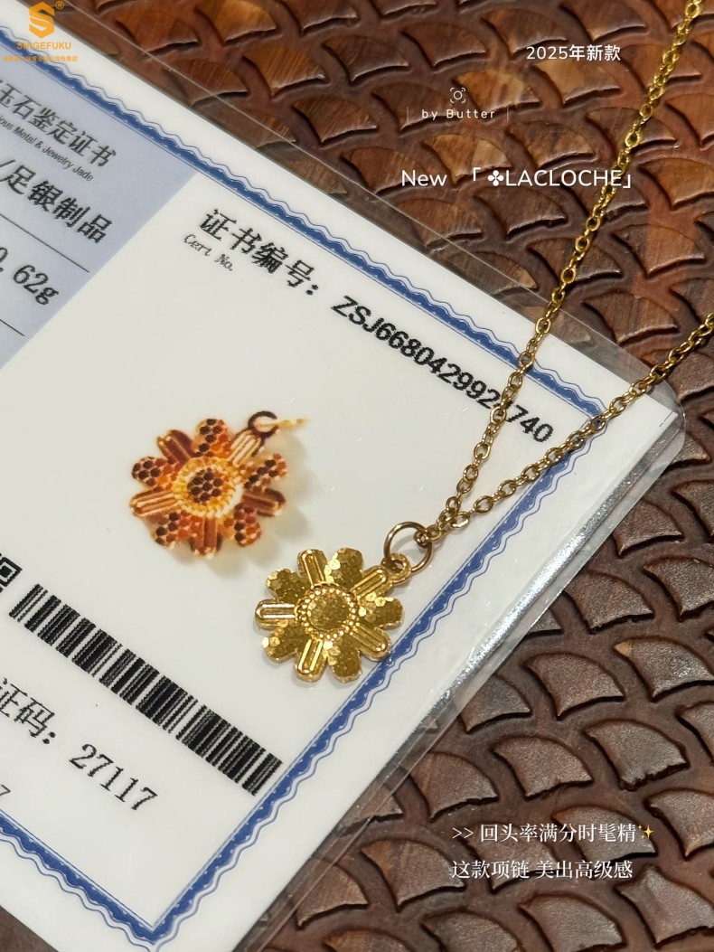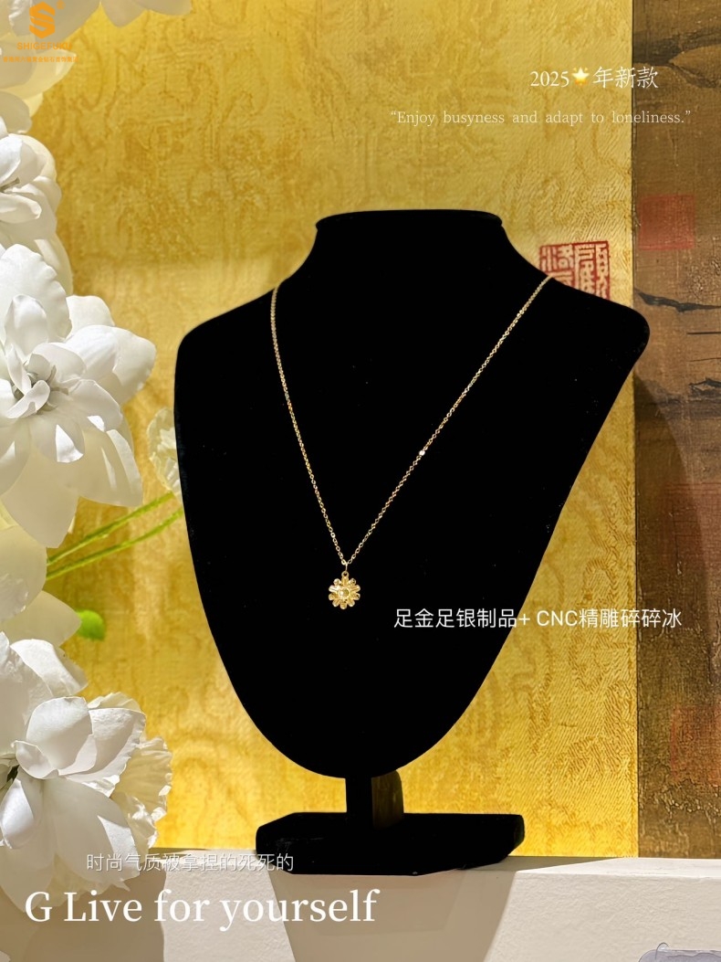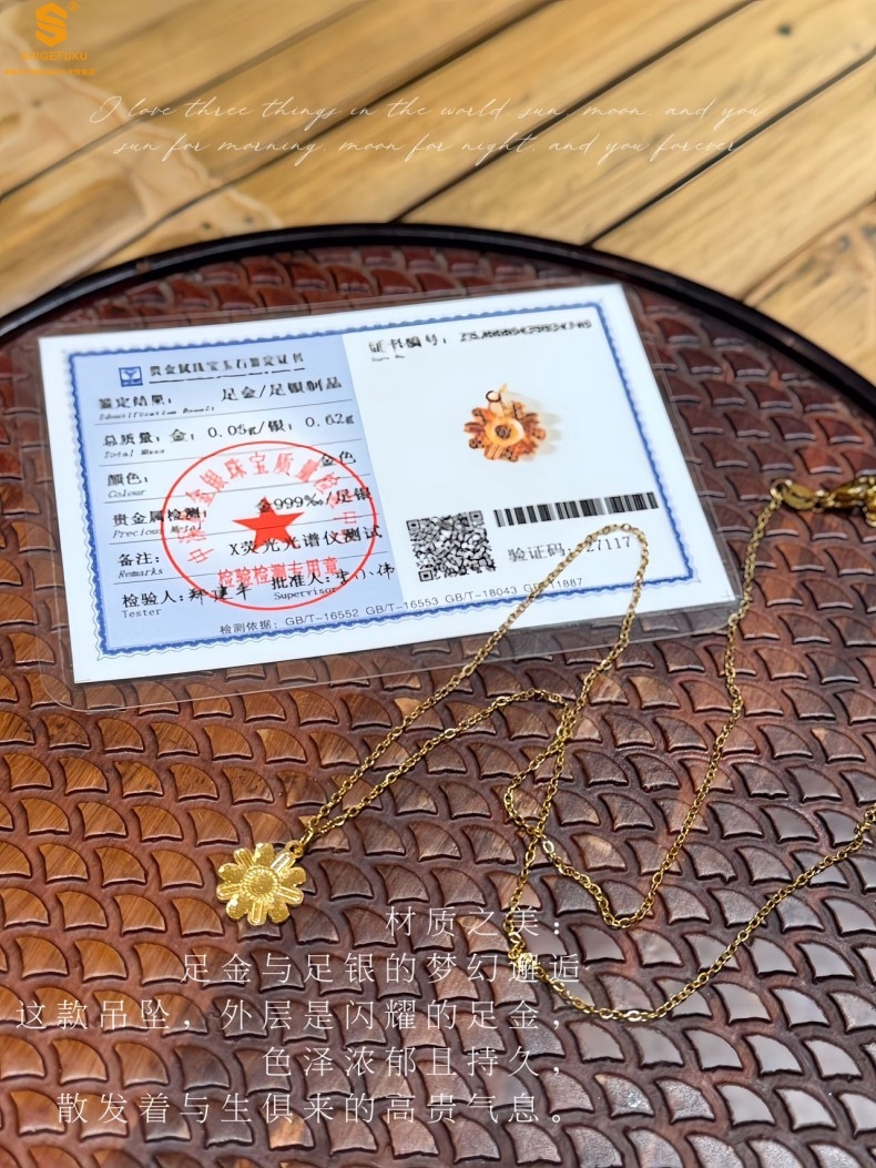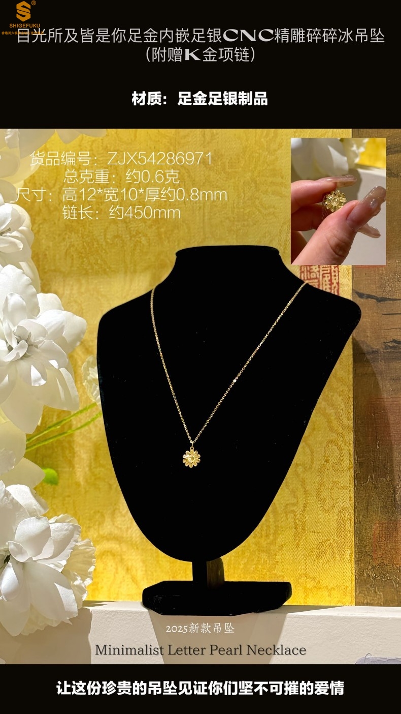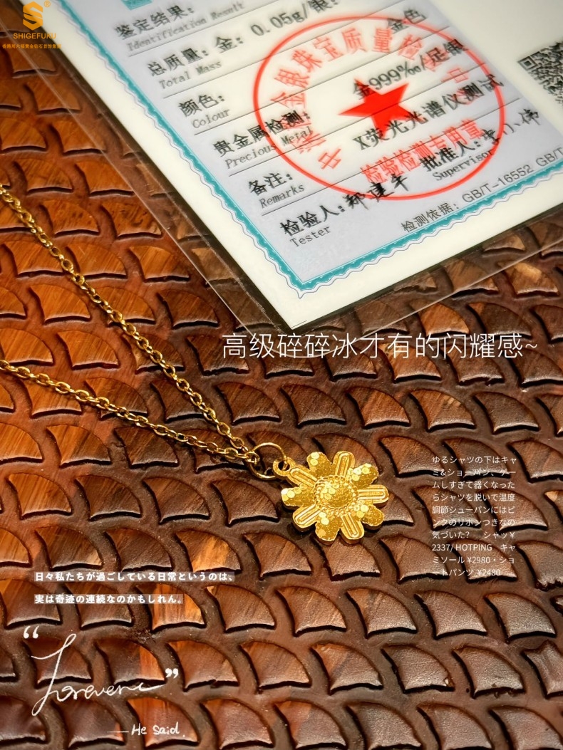 【品名】目光所及皆是你足金内嵌足银CNC精雕碎碎冰吊坠(附赠K金项链)
