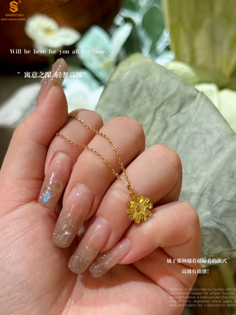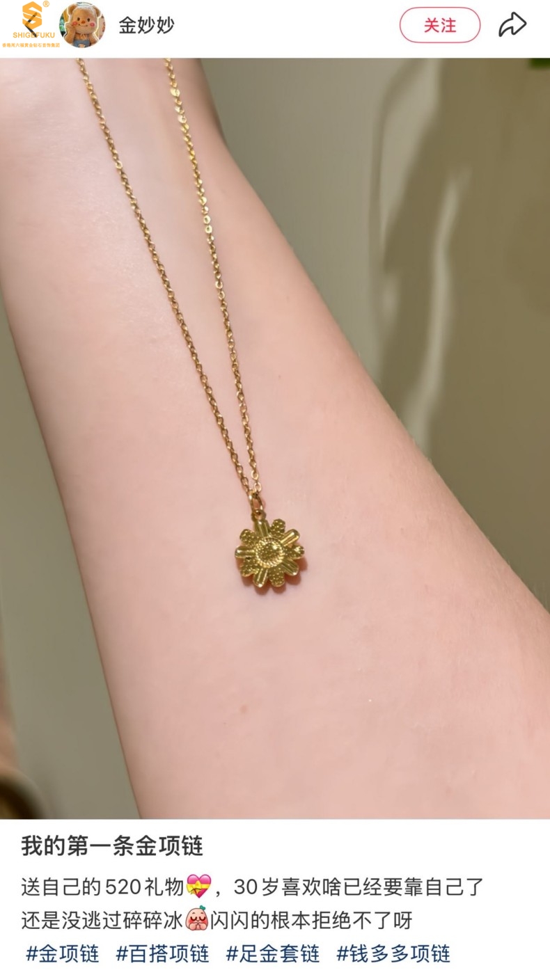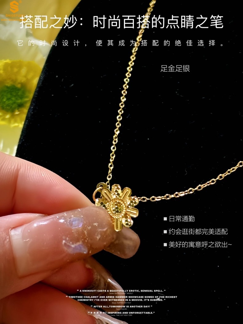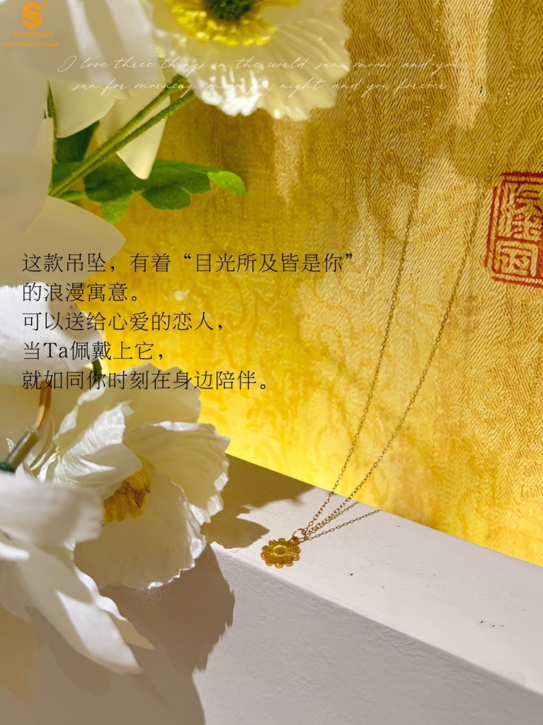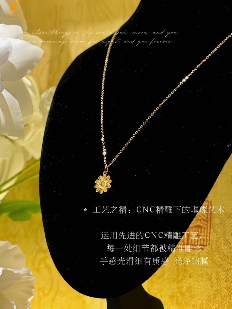 【品名】目光所及皆是你足金内嵌足银CNC精雕碎碎冰吊坠(附赠K金项链)