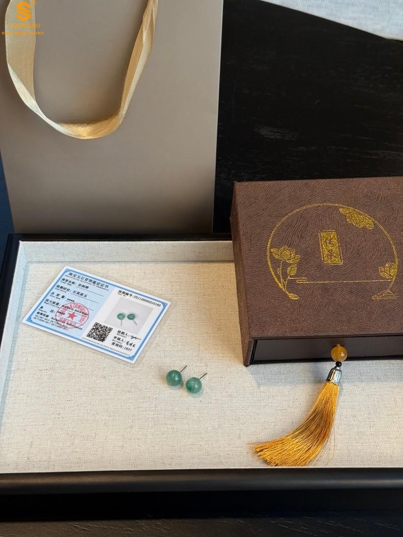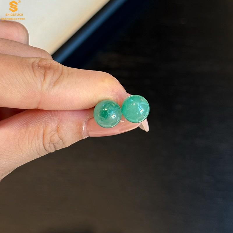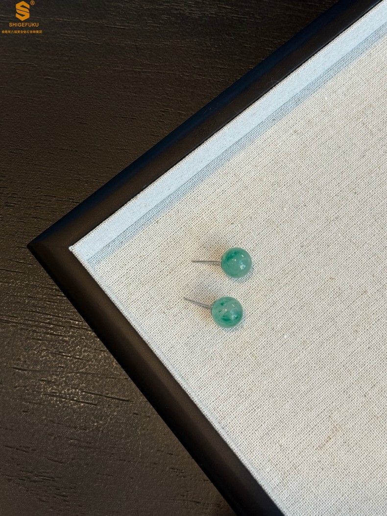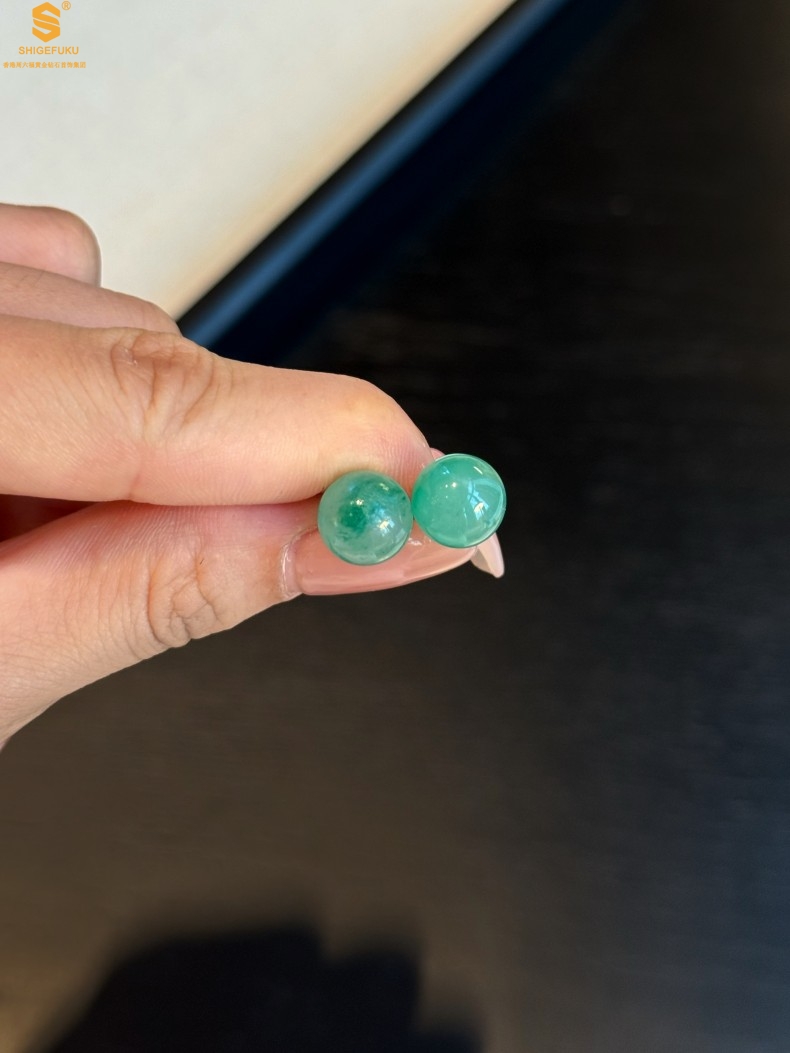 【品名】TS专属A级冰绿非洲翠圆珠纯银耳钉(对)(传承礼盒)