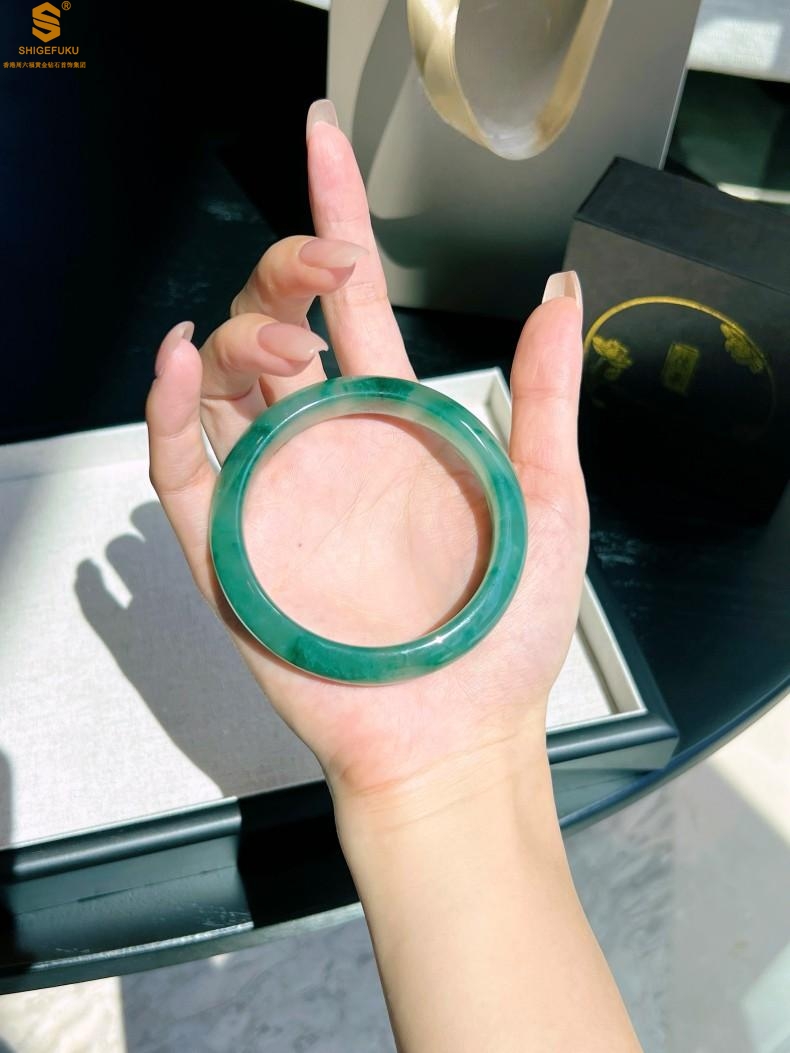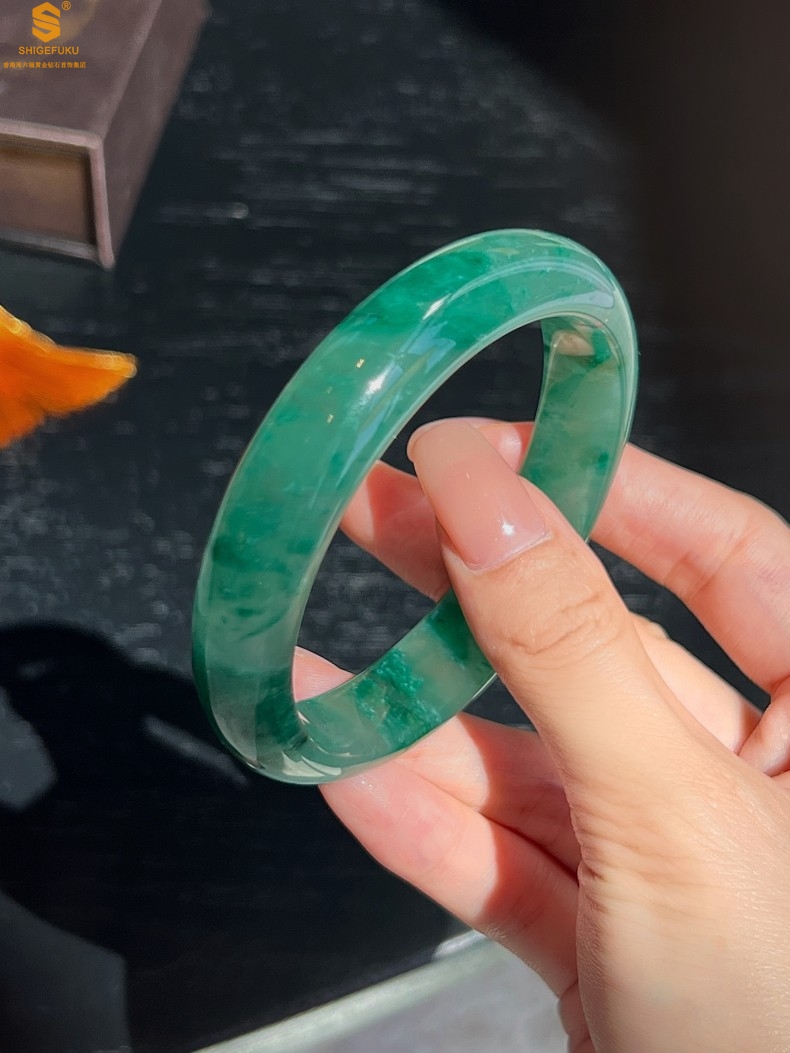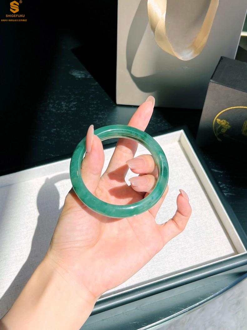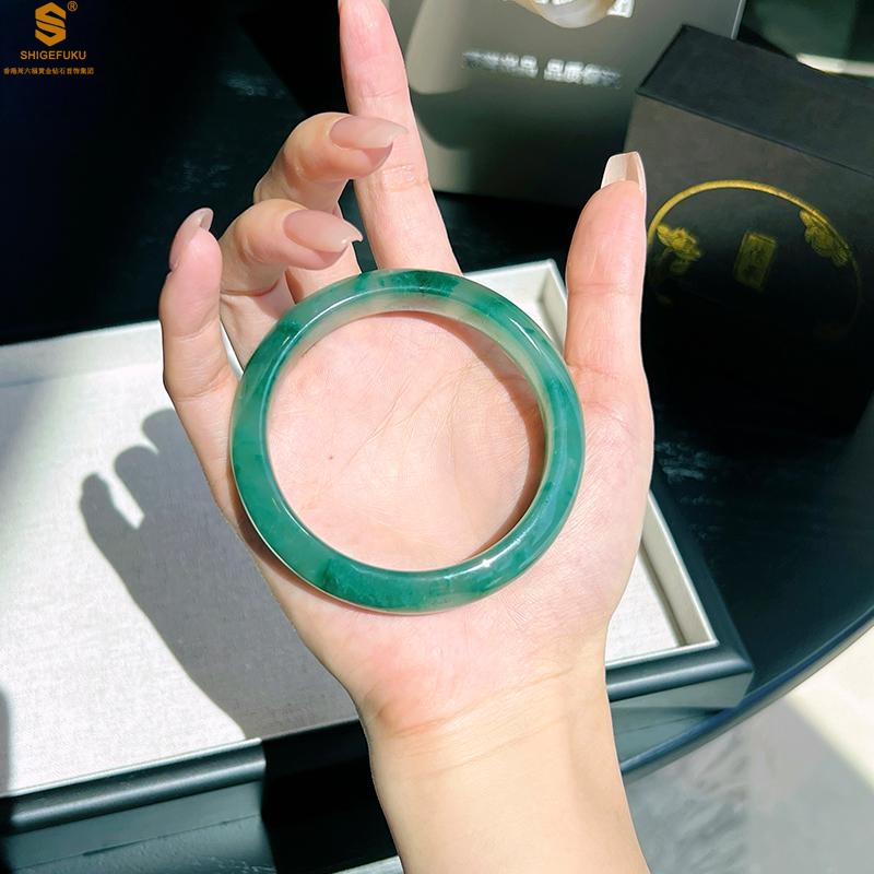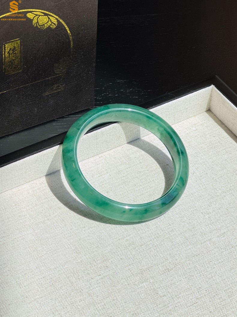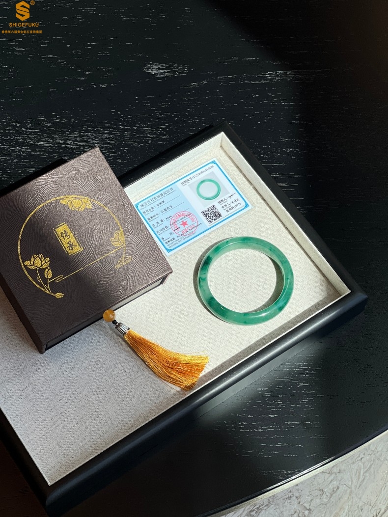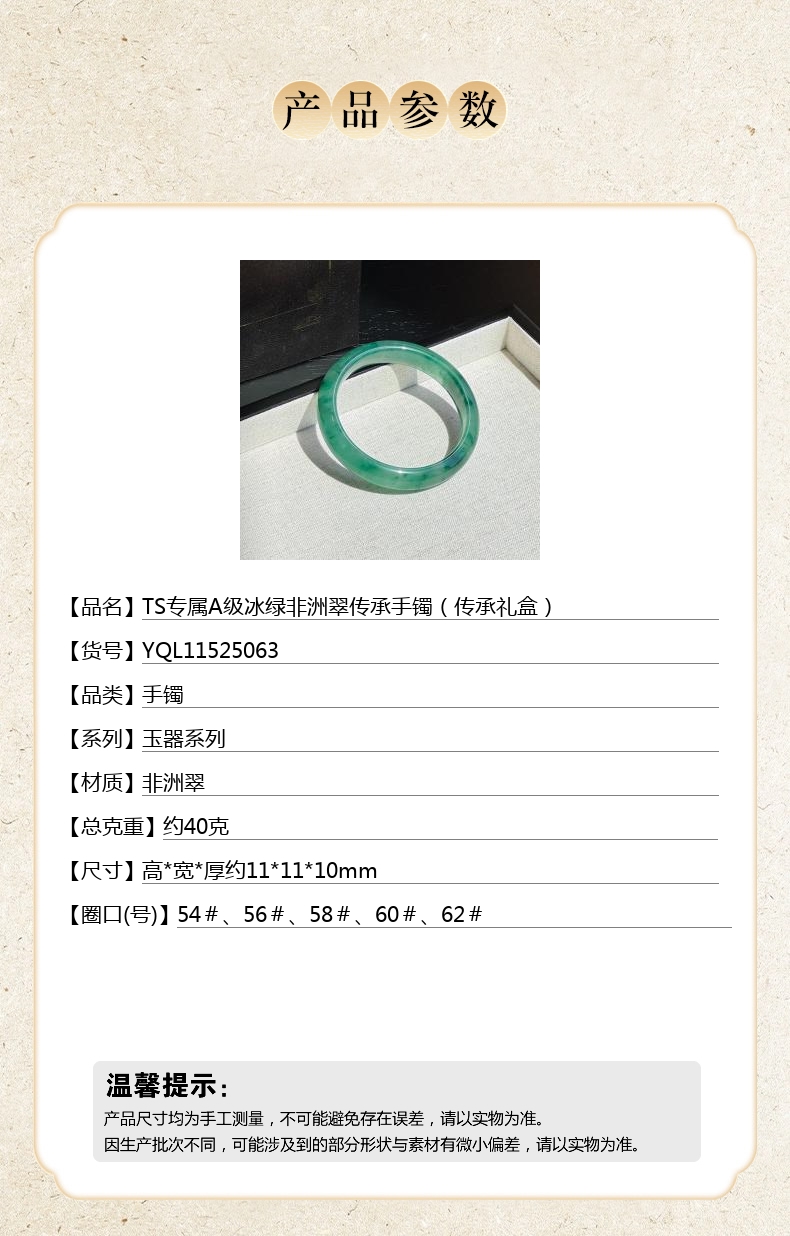 【品名】TS专属A级冰绿非洲翠传承手镯(传承礼盒)