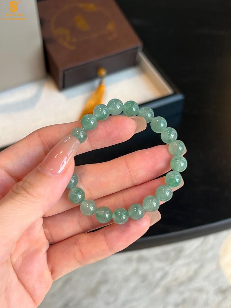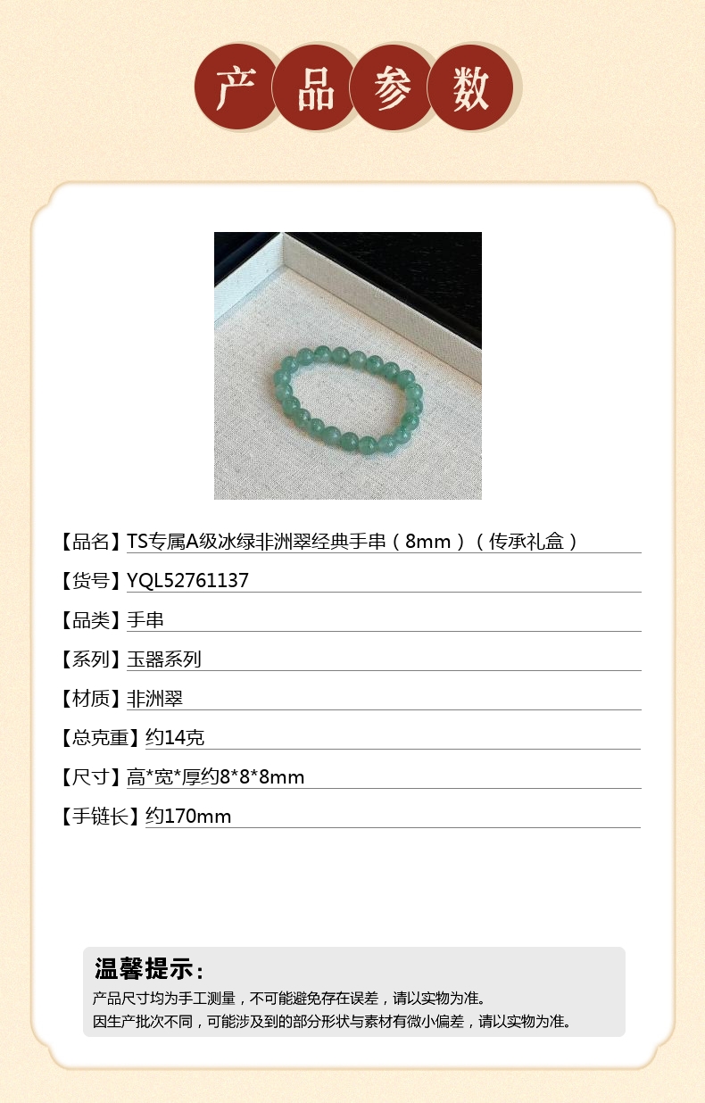 【品名】TS专属A级冰绿非洲翠经典手串(8mm)(传承礼盒)