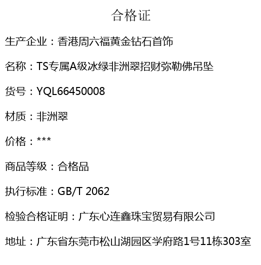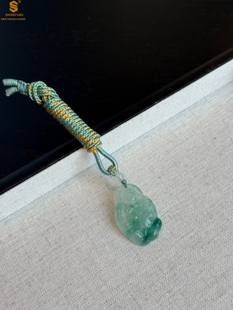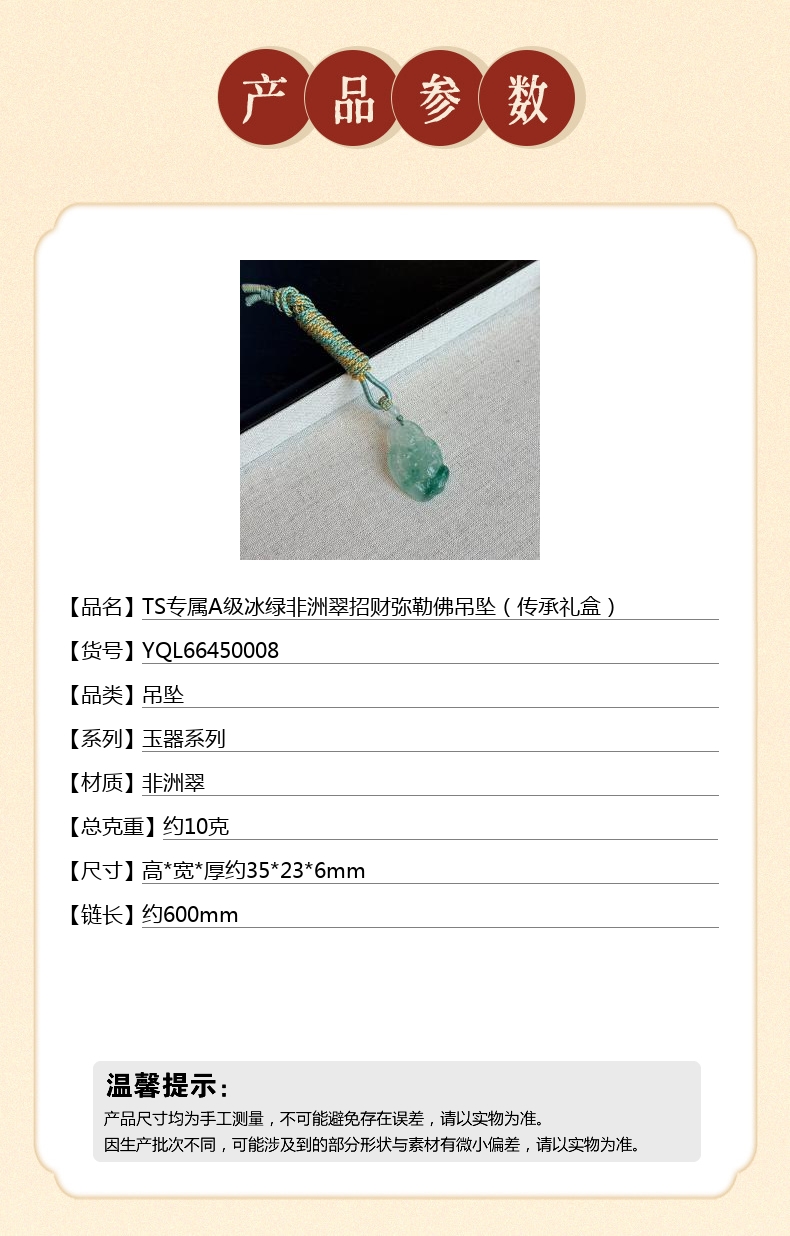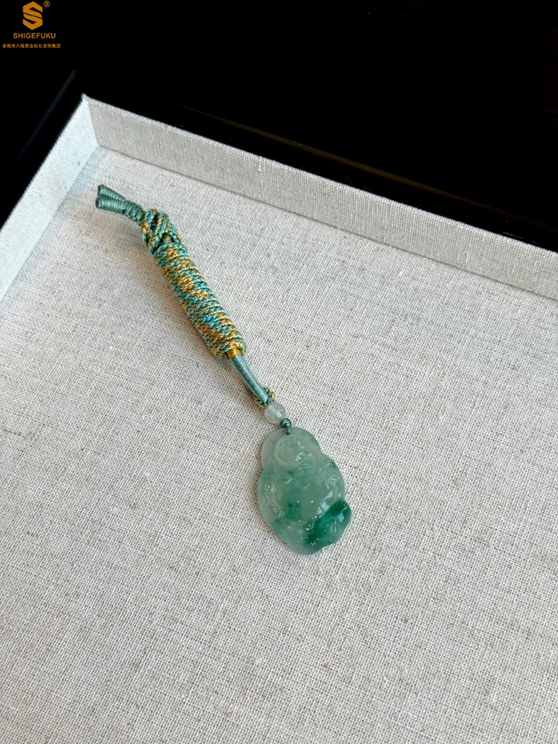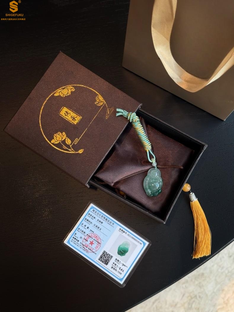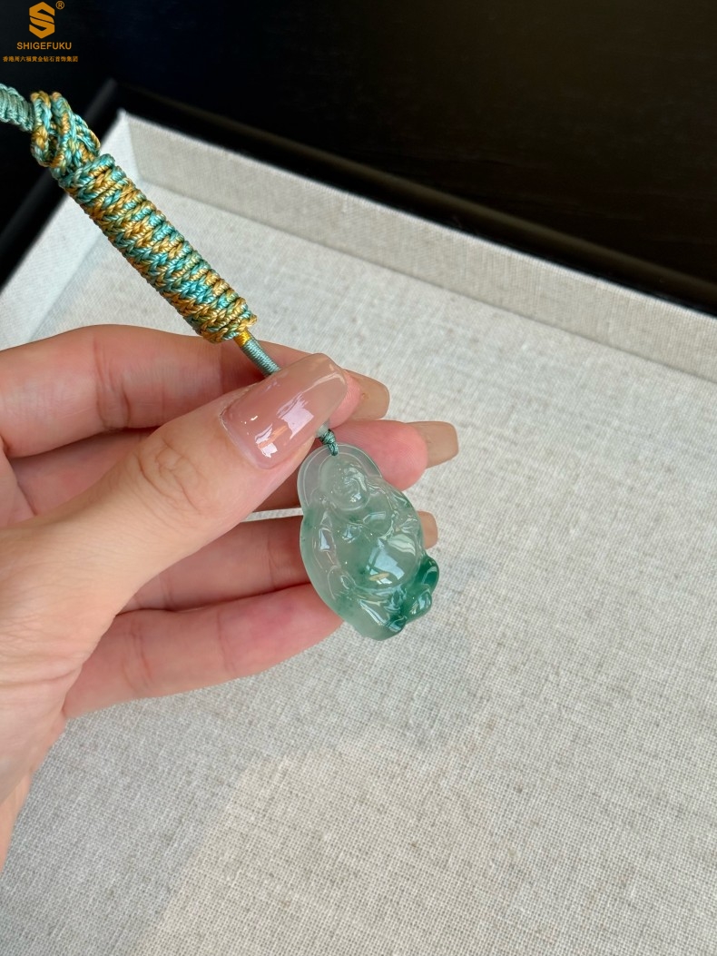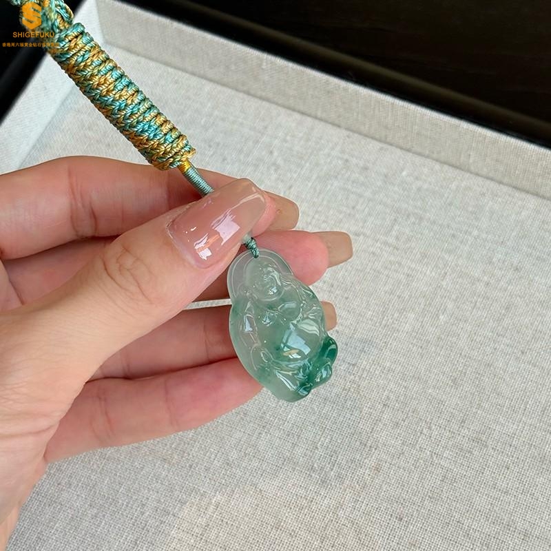 【品名】TS专属A级冰绿非洲翠招财弥勒佛吊坠(传承礼盒)