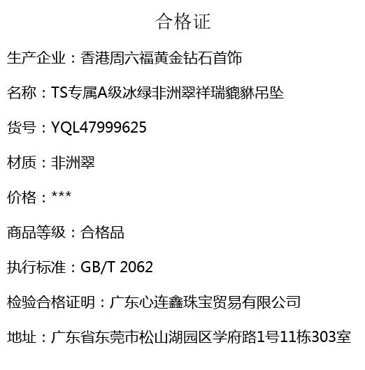 【套装包含】首饰+传承礼盒+礼品袋+国检证书+质保单+价签