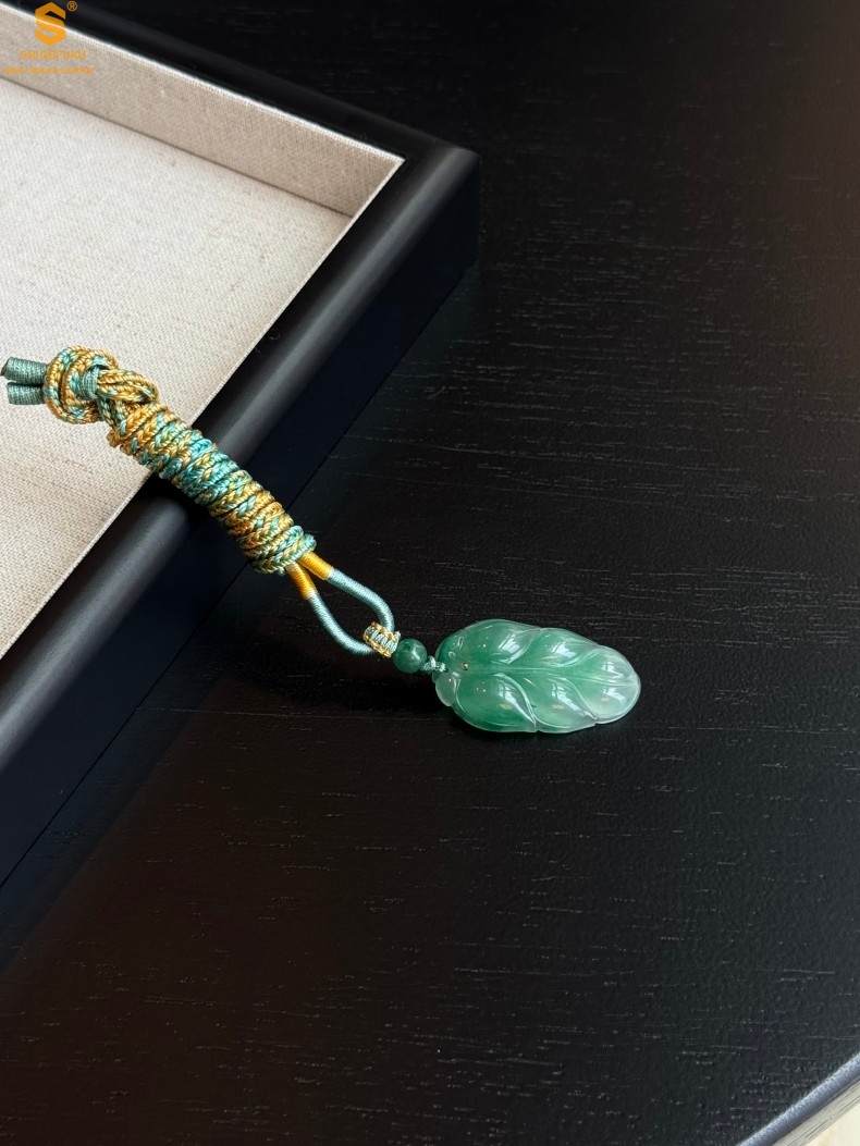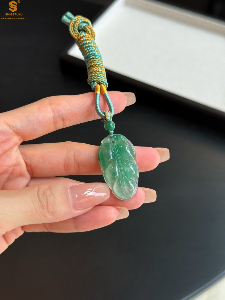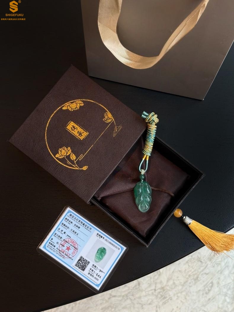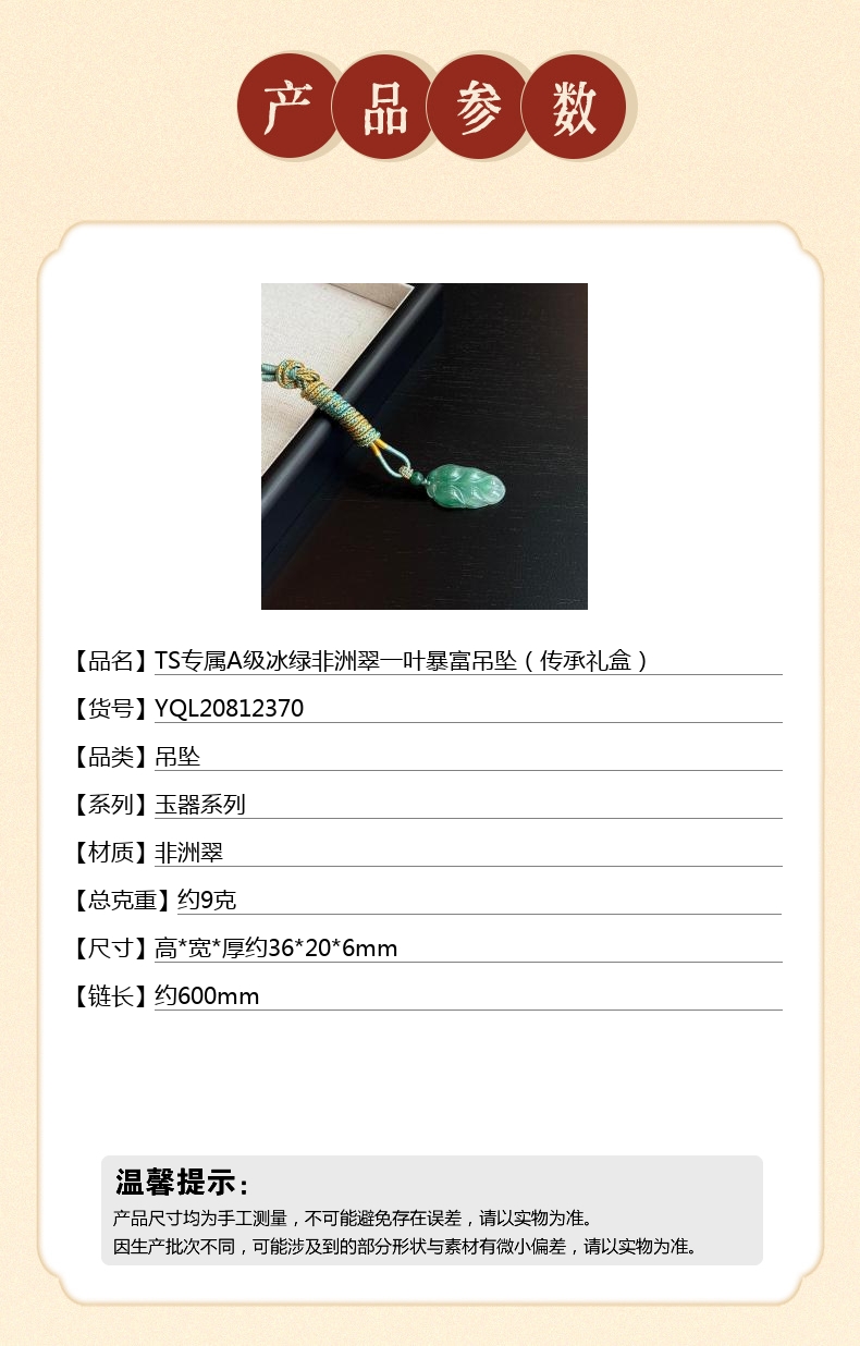 【品名】TS专属A级冰绿非洲翠一叶暴富吊坠(传承礼盒)
