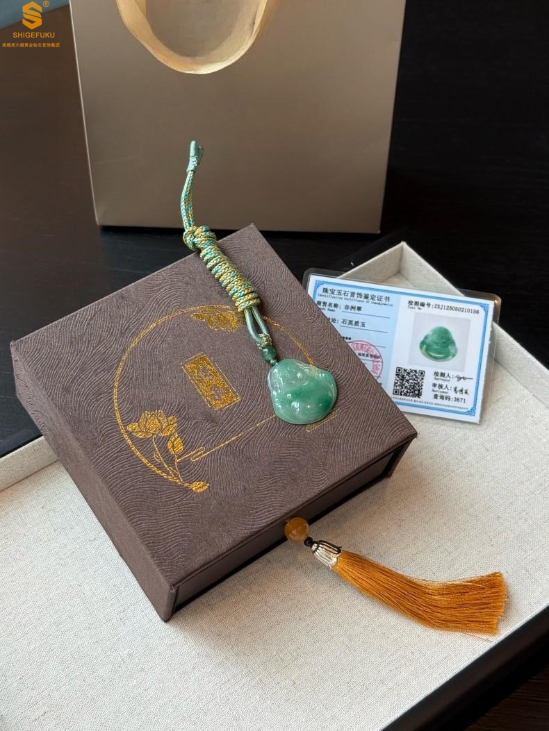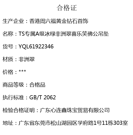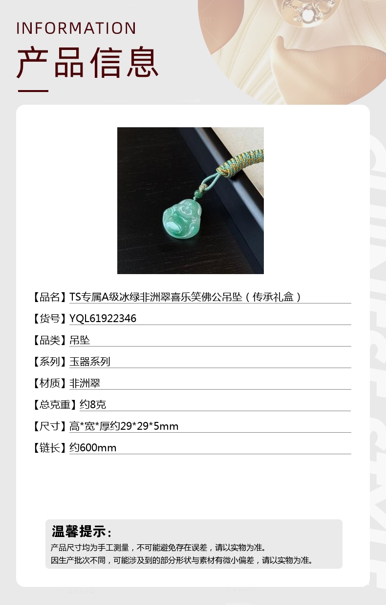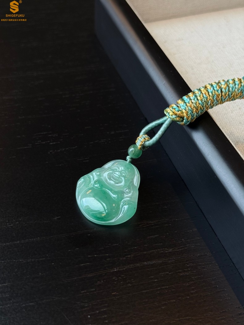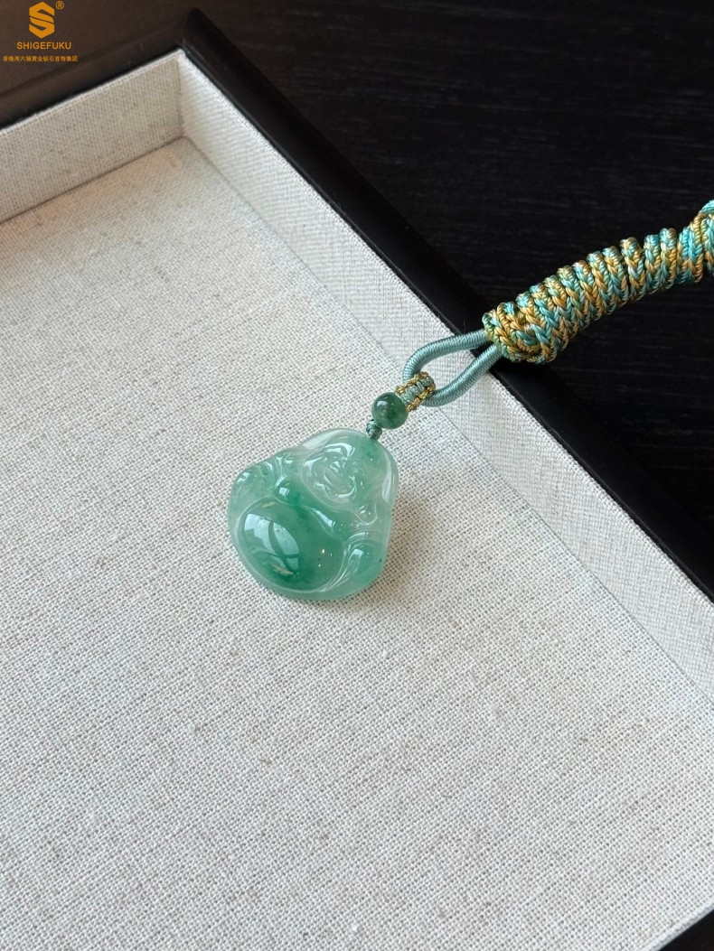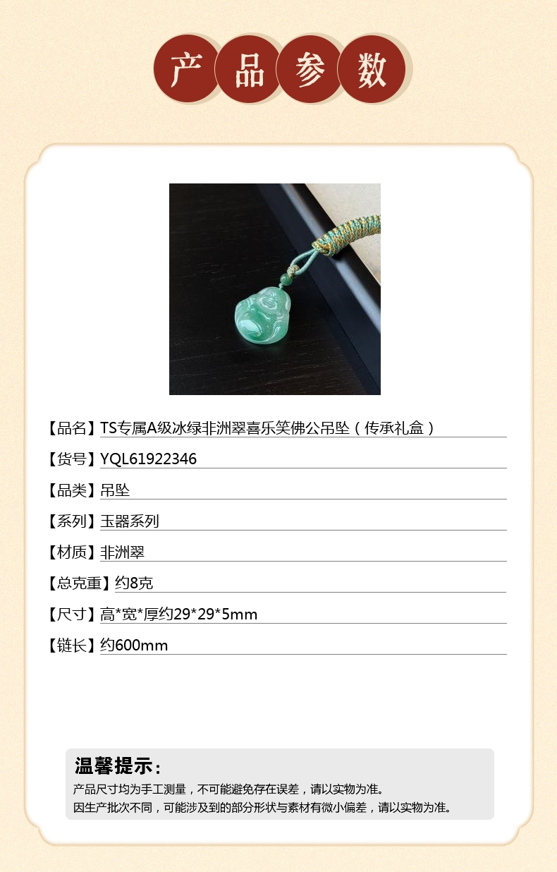 【品名】TS专属A级冰绿非洲翠喜乐笑佛公吊坠(传承礼盒)