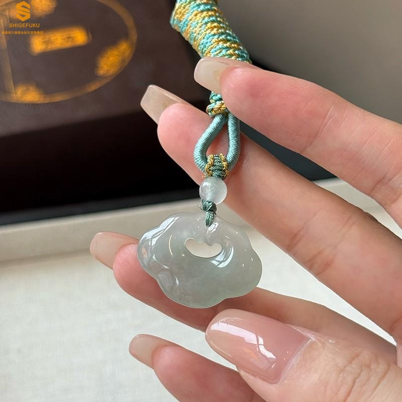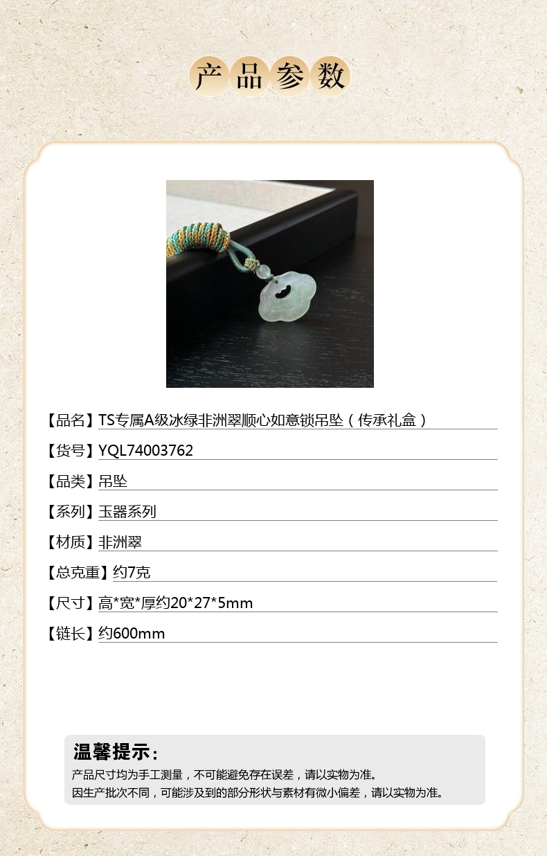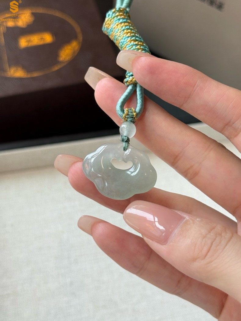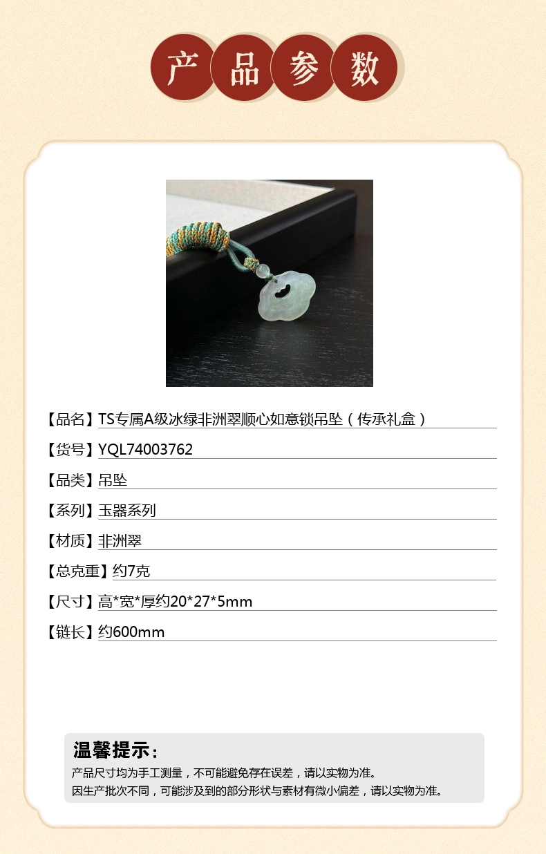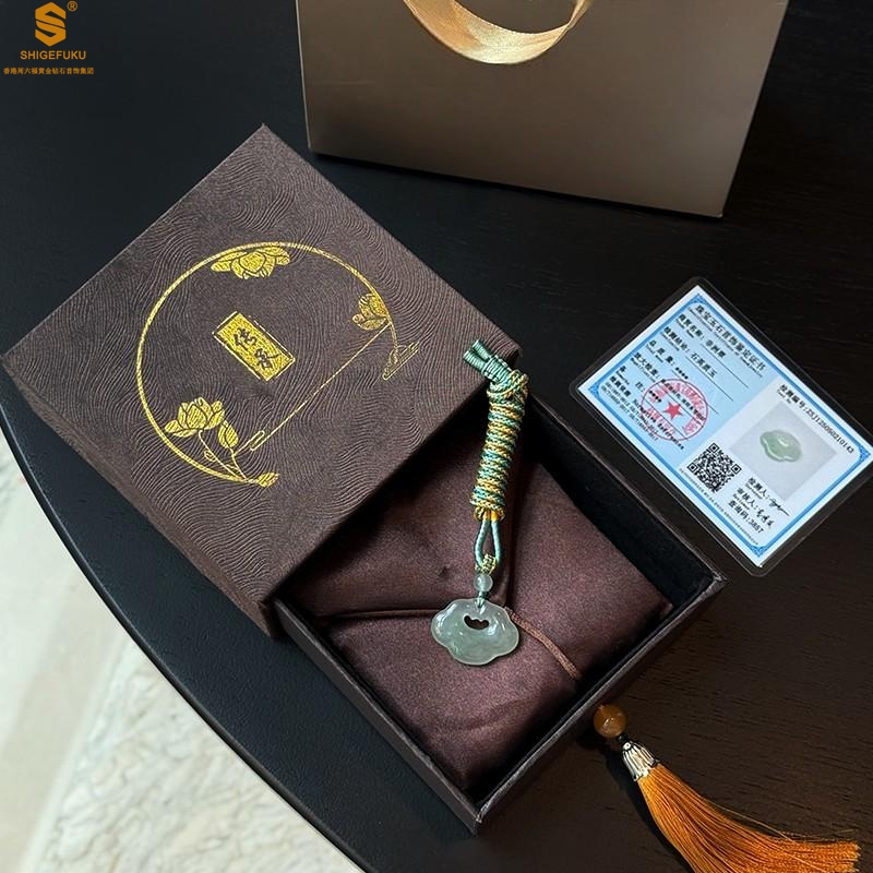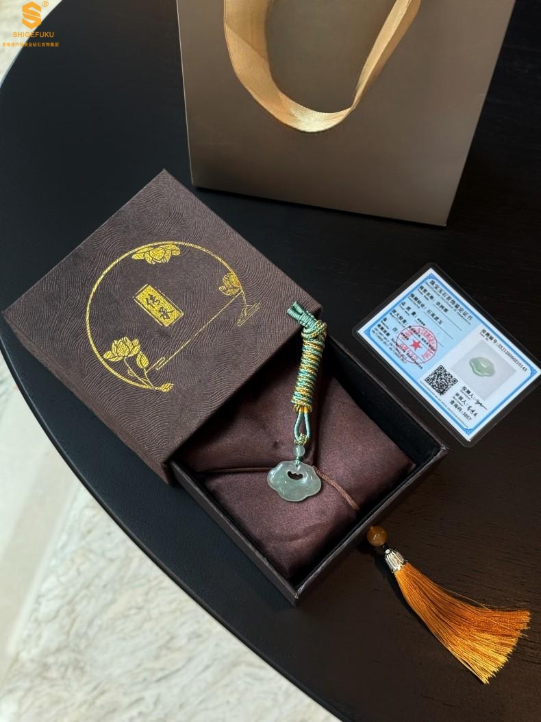 【品名】TS专属A级冰绿非洲翠顺心如意锁吊坠(传承礼盒)