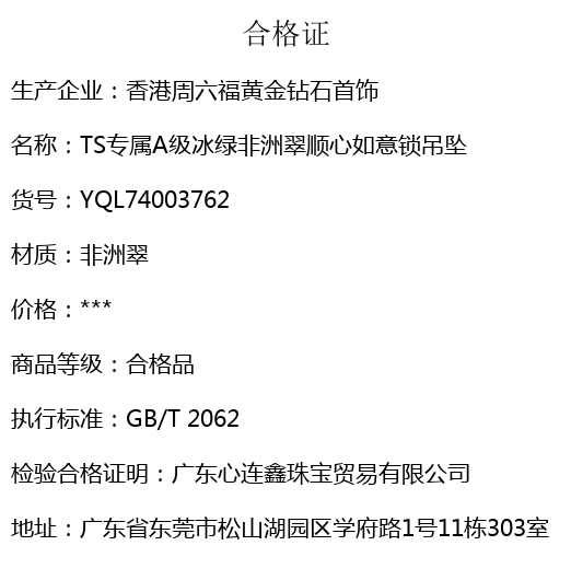 【套装包含】首饰+传承礼盒+礼品袋+国检证书+质保单+价签