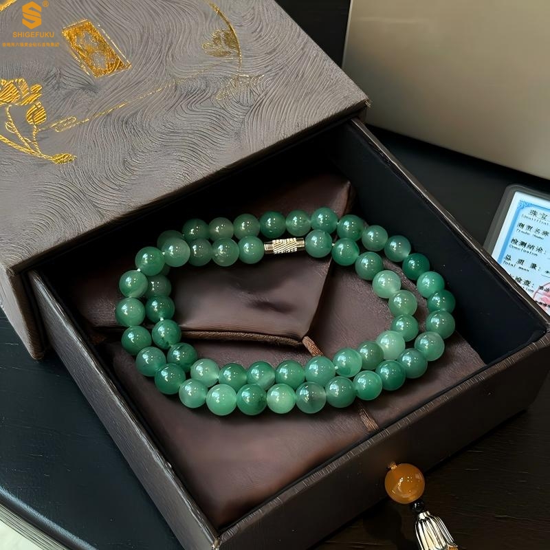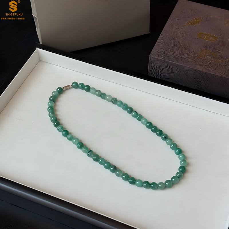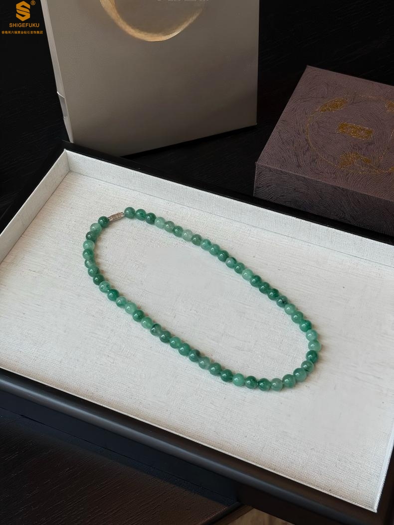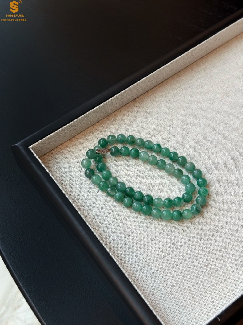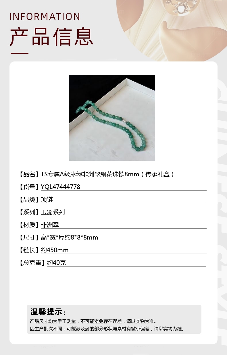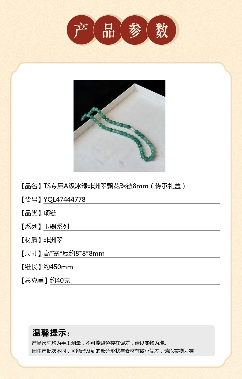 【品名】TS专属A级冰绿非洲翠飘花珠链8mm(传承礼盒)