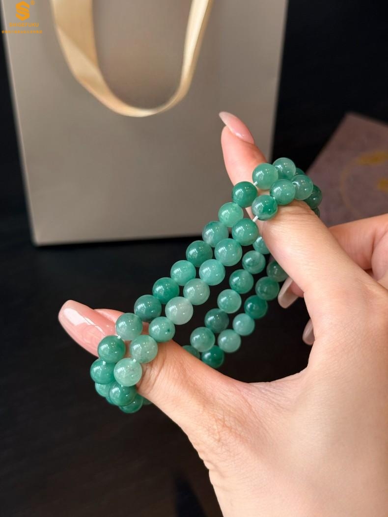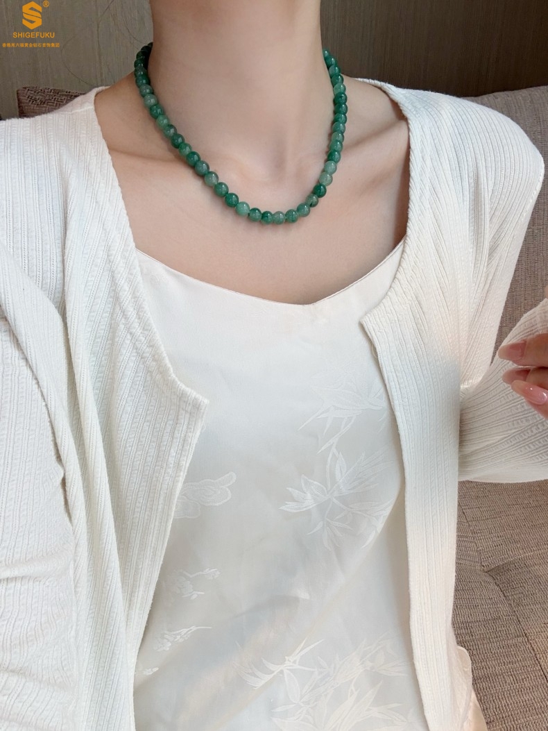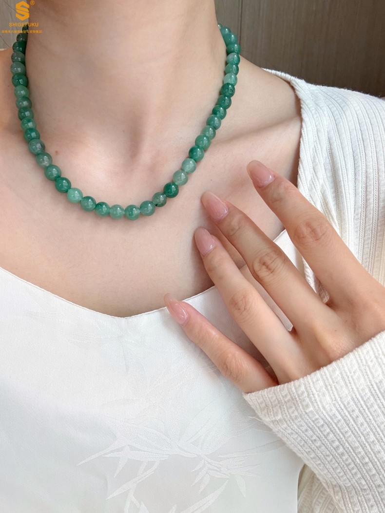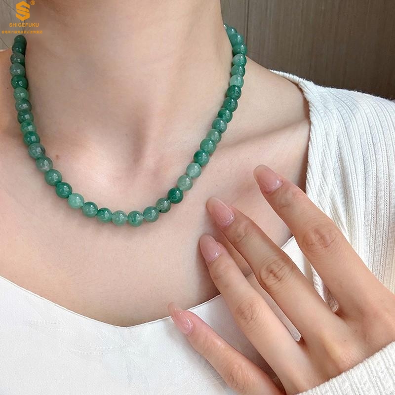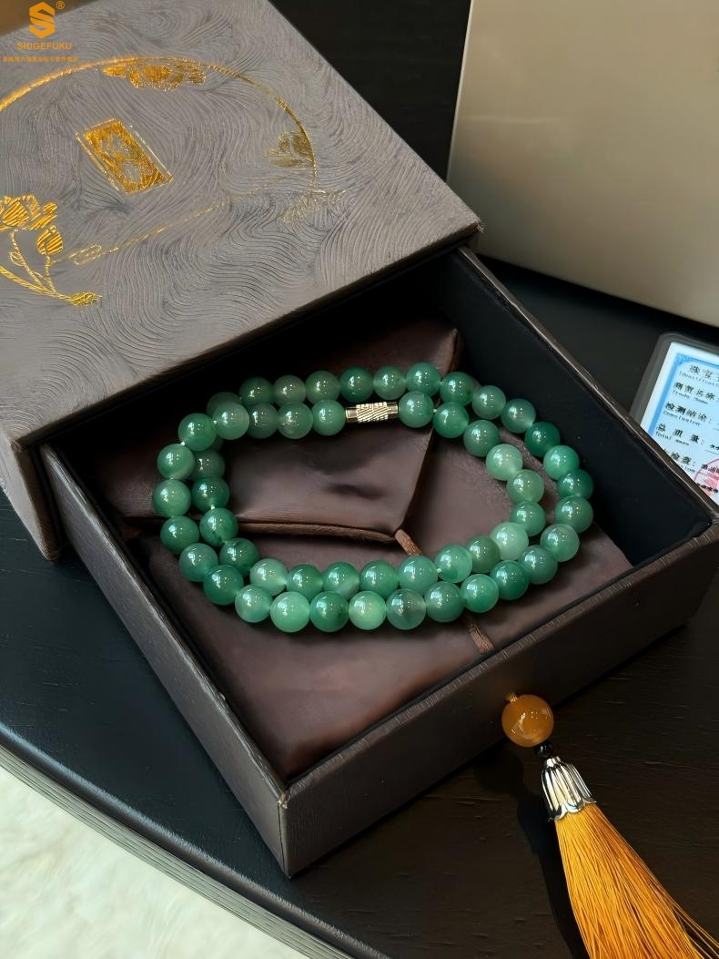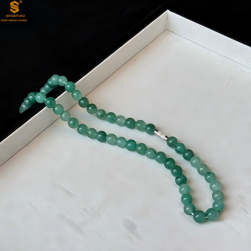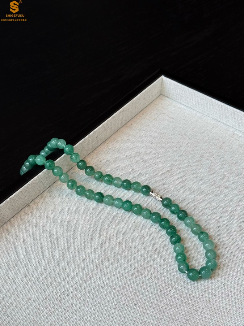【品名】TS专属A级冰绿非洲翠飘花珠链8mm(传承礼盒)