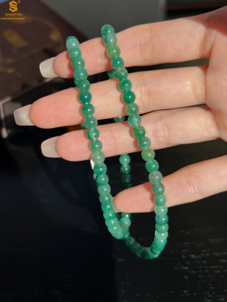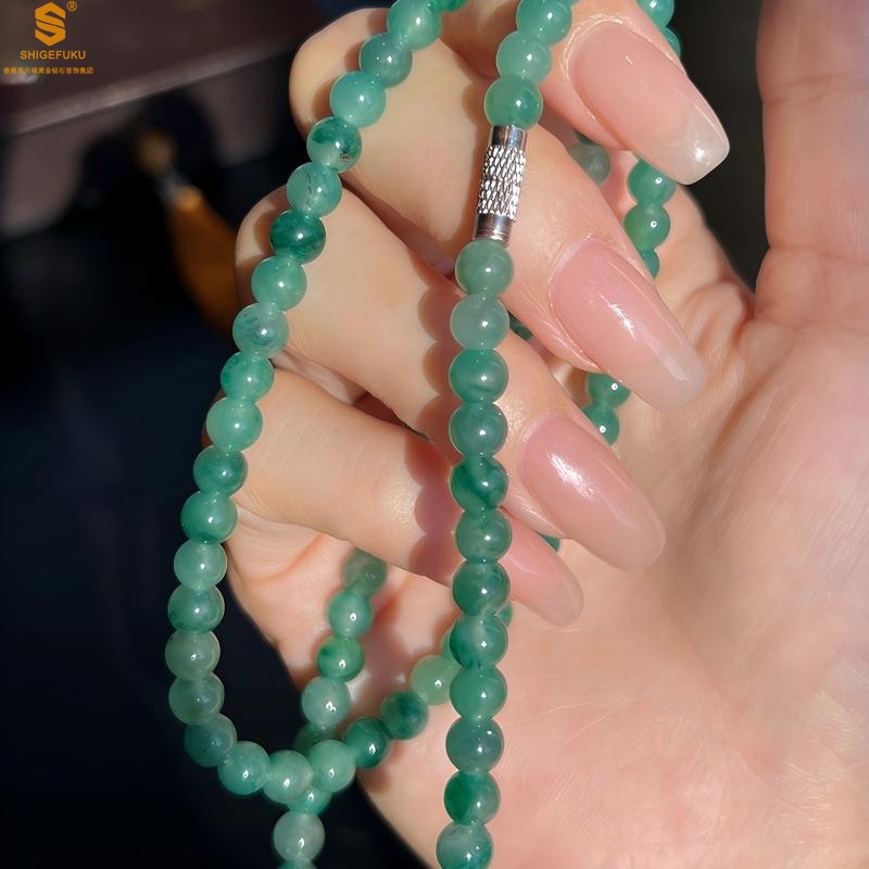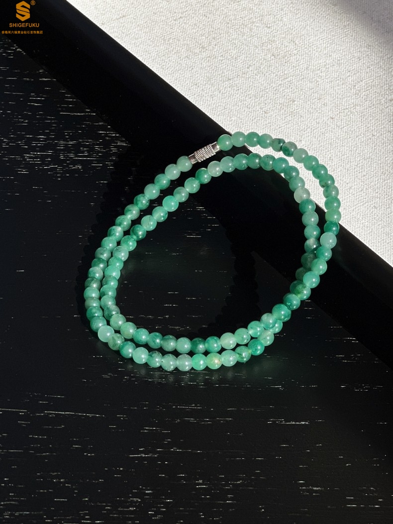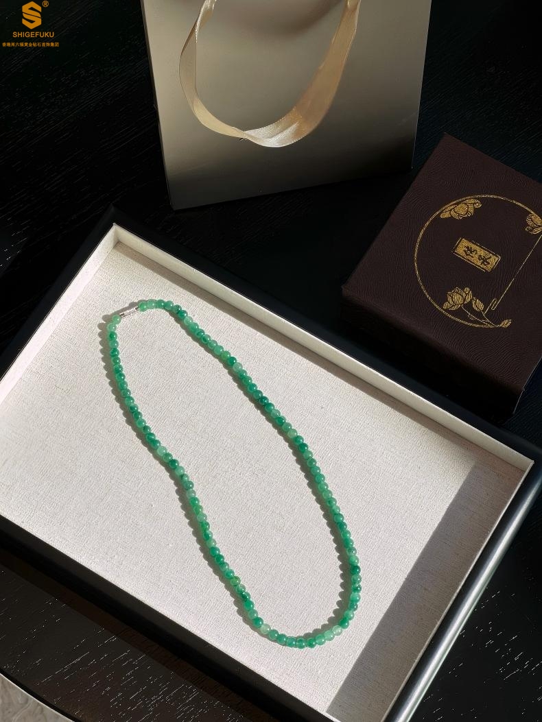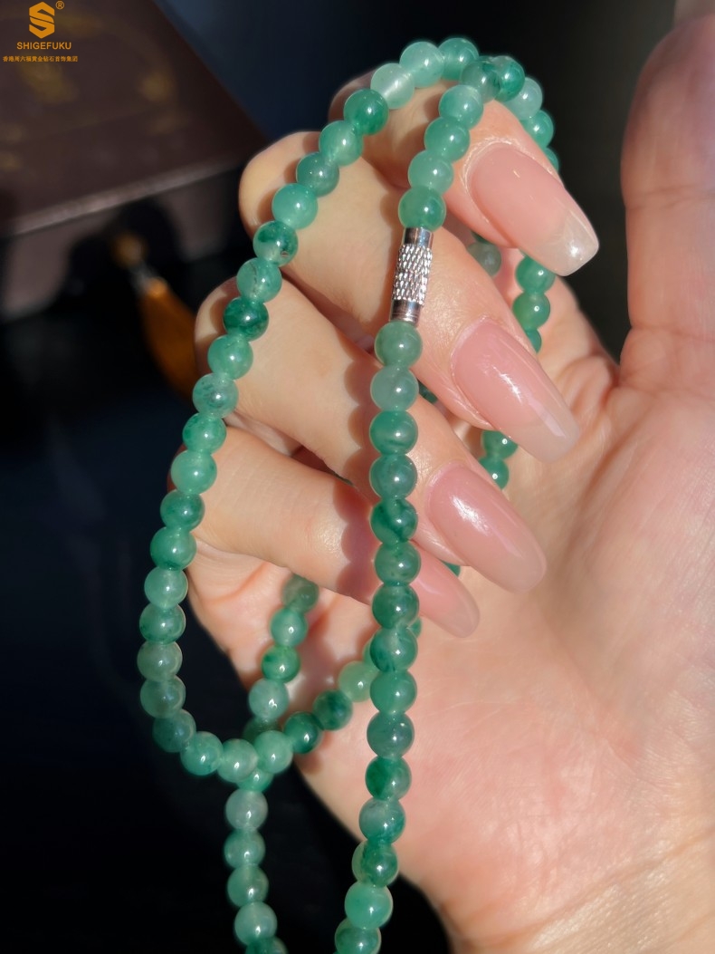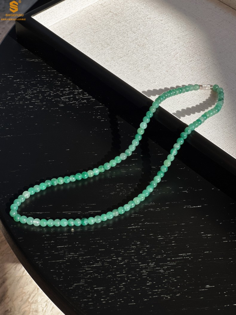 【品名】TS专属A级冰绿非洲翠飘花珠链6mm(传承礼盒)