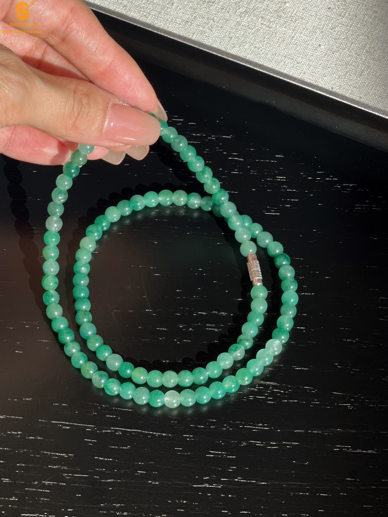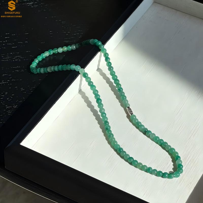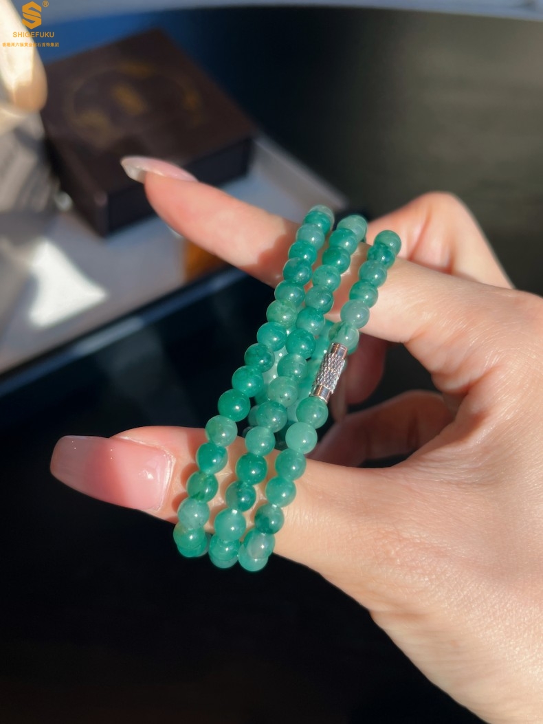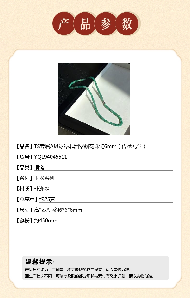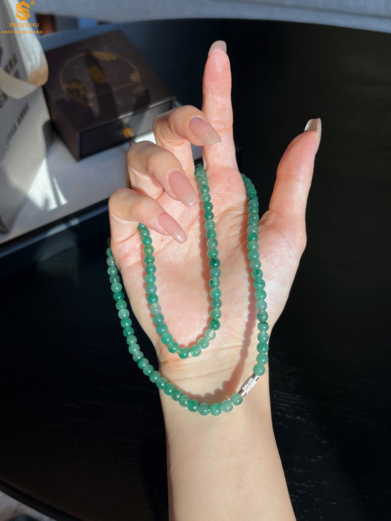 【品名】TS专属A级冰绿非洲翠飘花珠链6mm(传承礼盒)