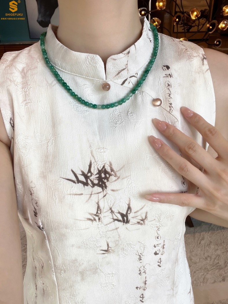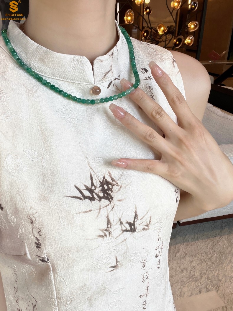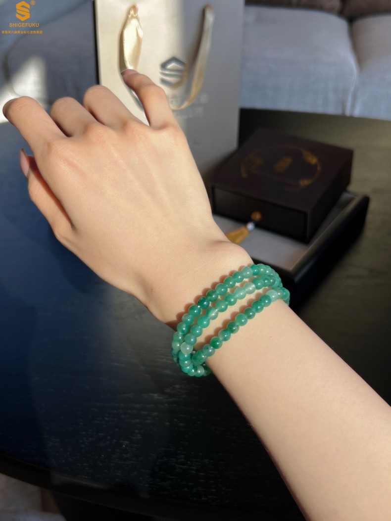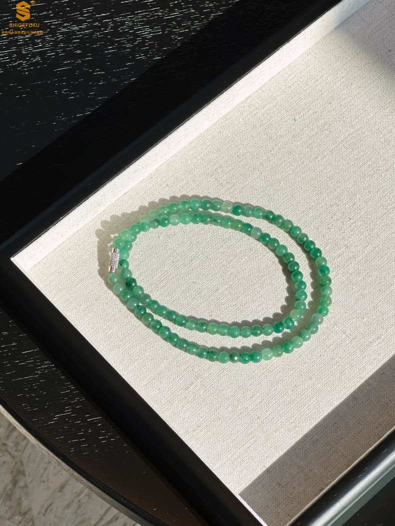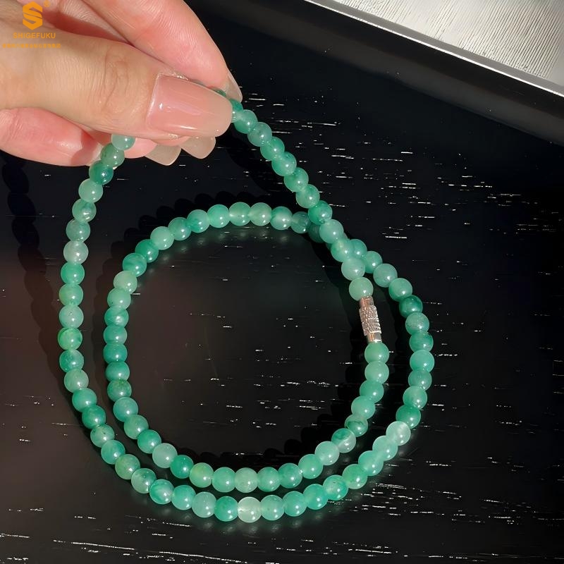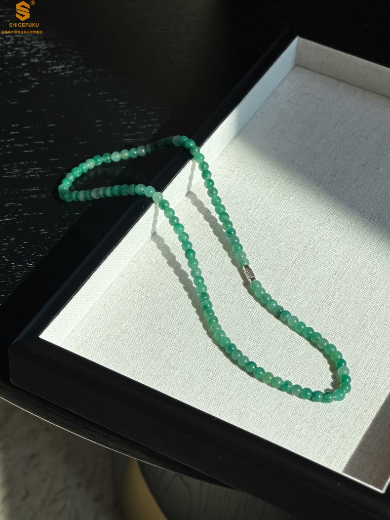 【品名】TS专属A级冰绿非洲翠飘花珠链6mm(传承礼盒)
