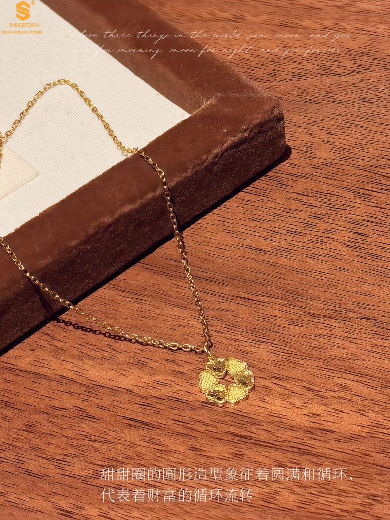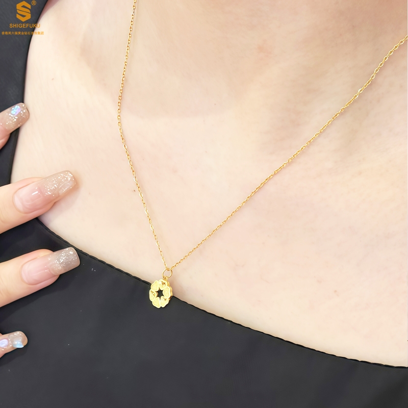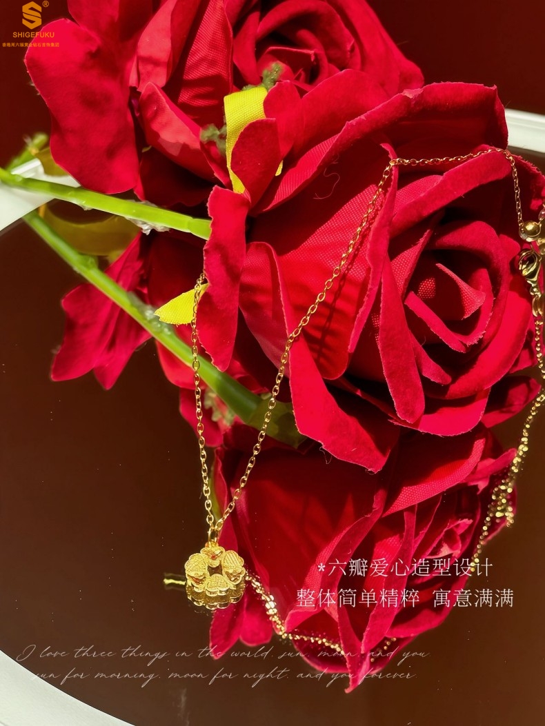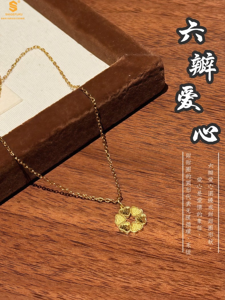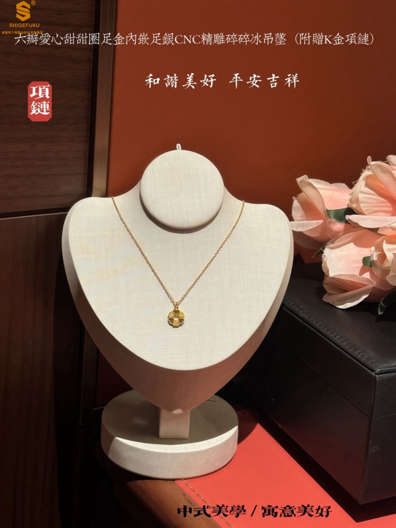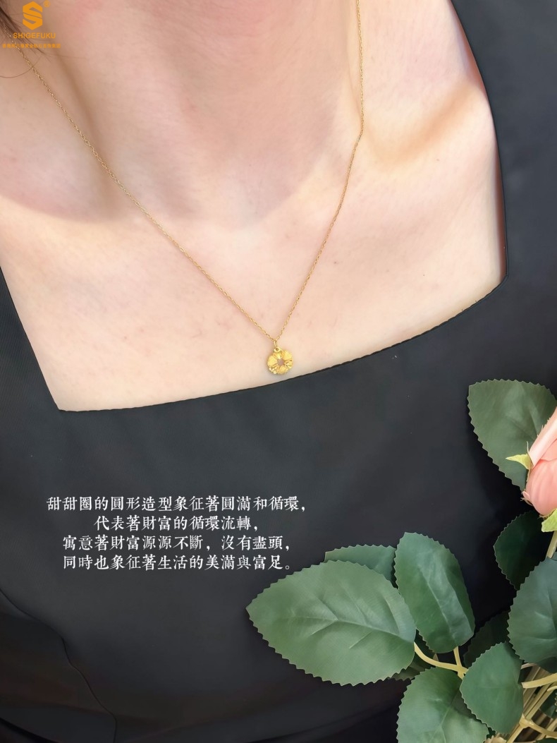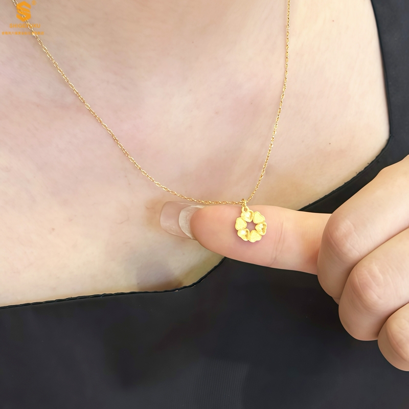 【品名】六瓣爱心甜甜圈足金内嵌足银CNC精雕碎碎冰吊坠(附赠K金项链)