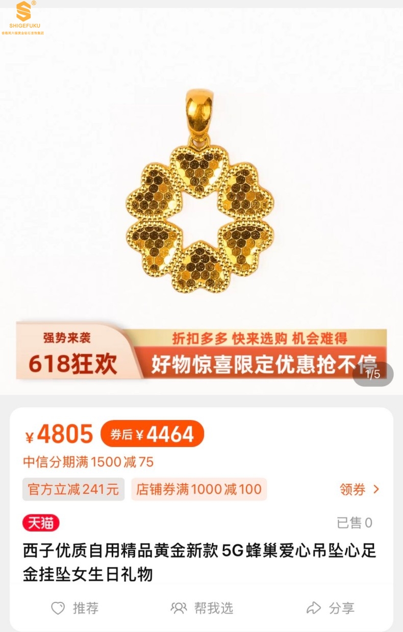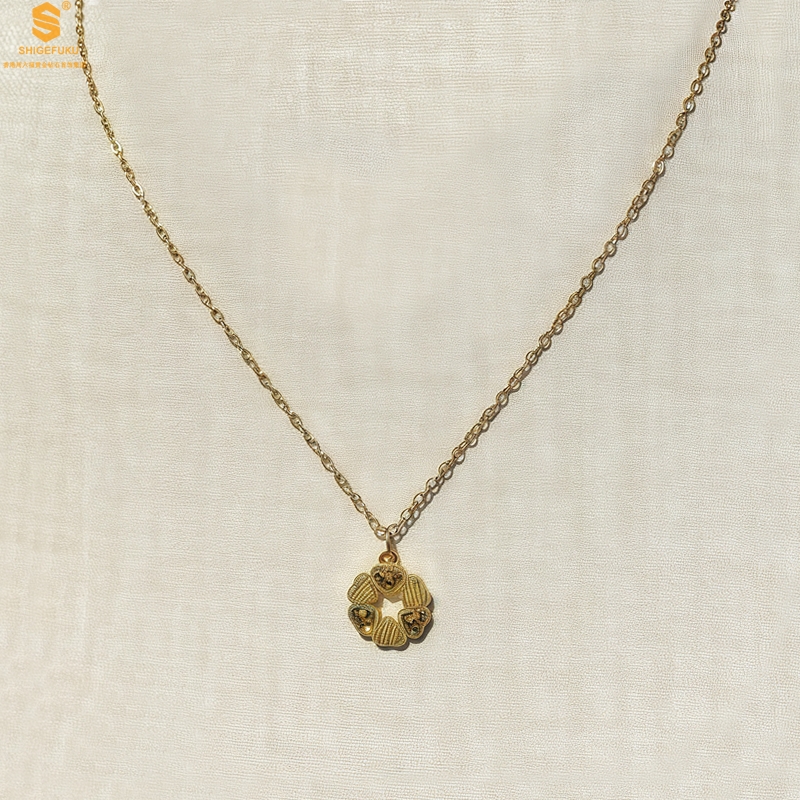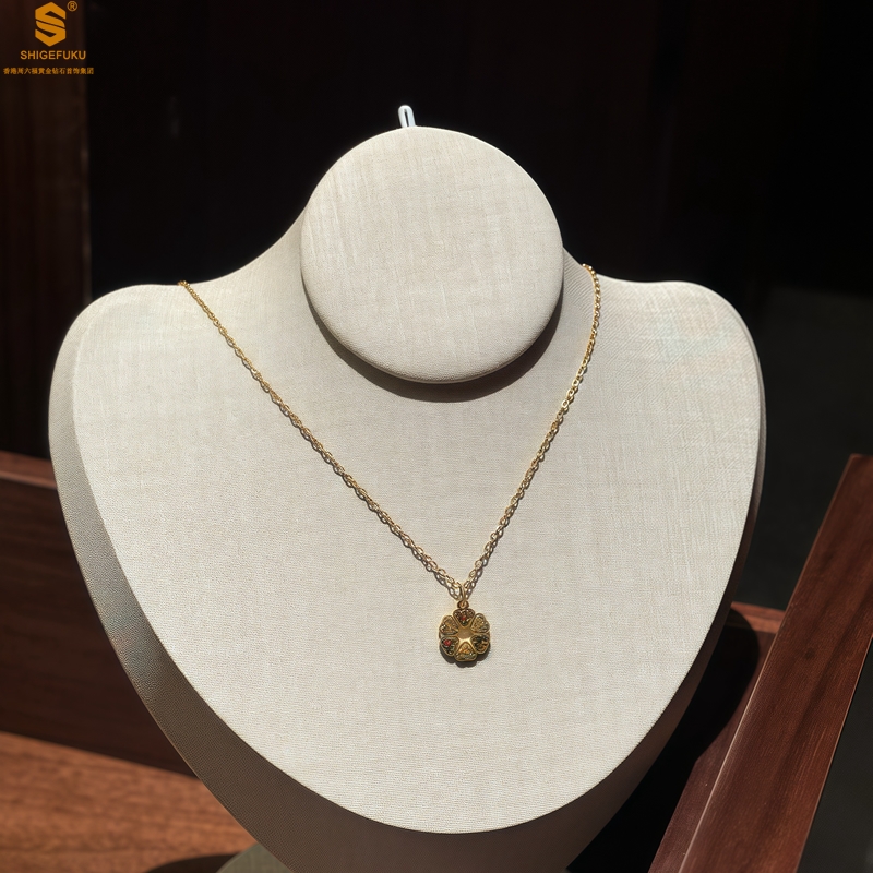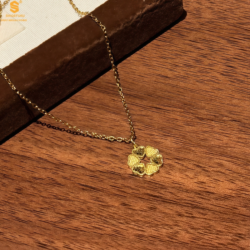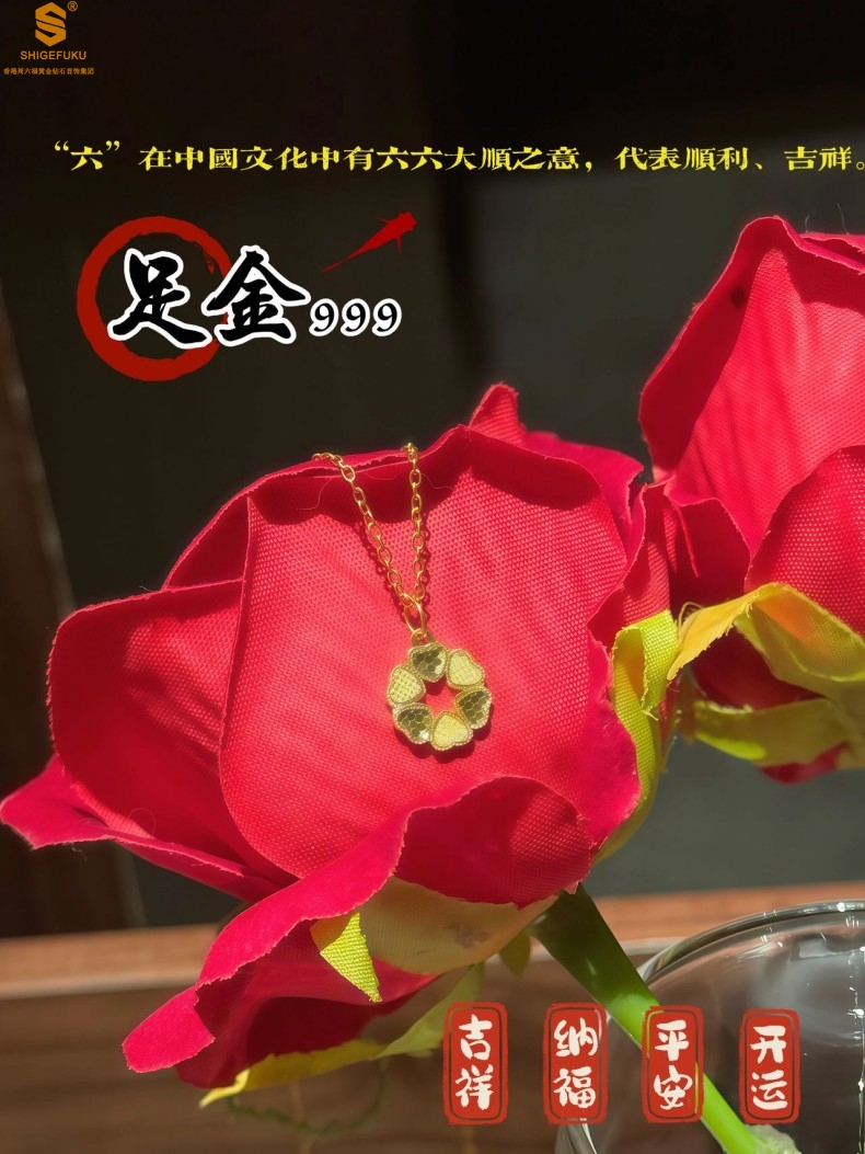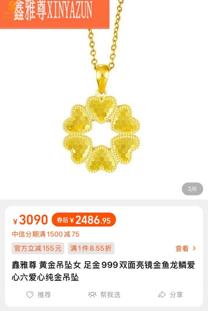 【品名】六瓣爱心甜甜圈足金内嵌足银CNC精雕碎碎冰吊坠(附赠K金项链)