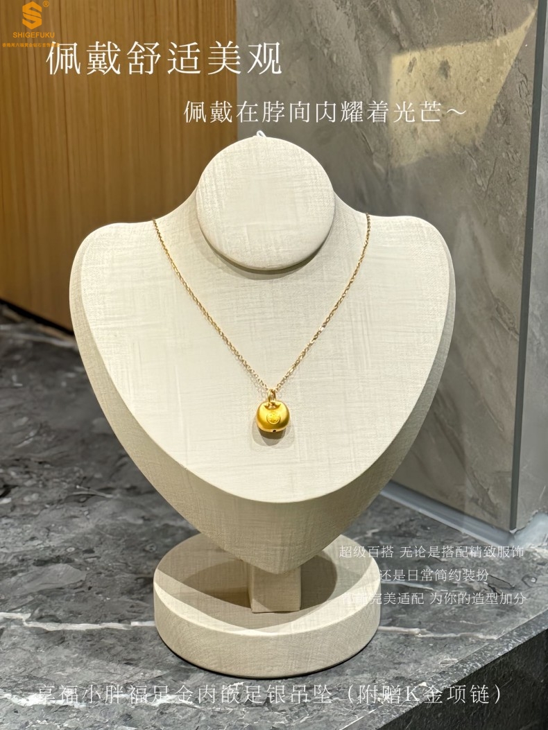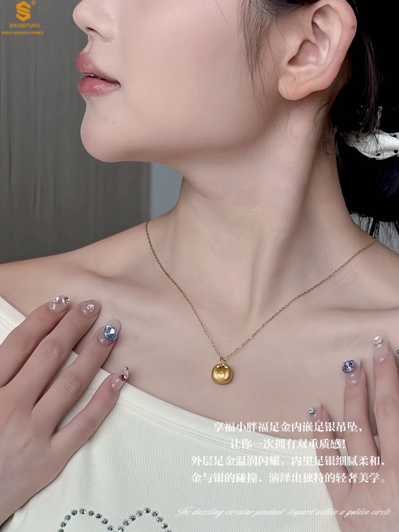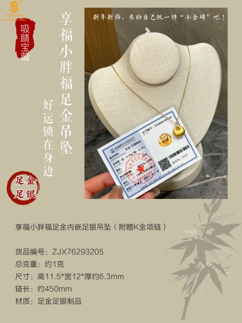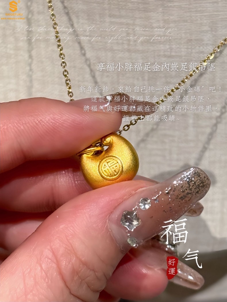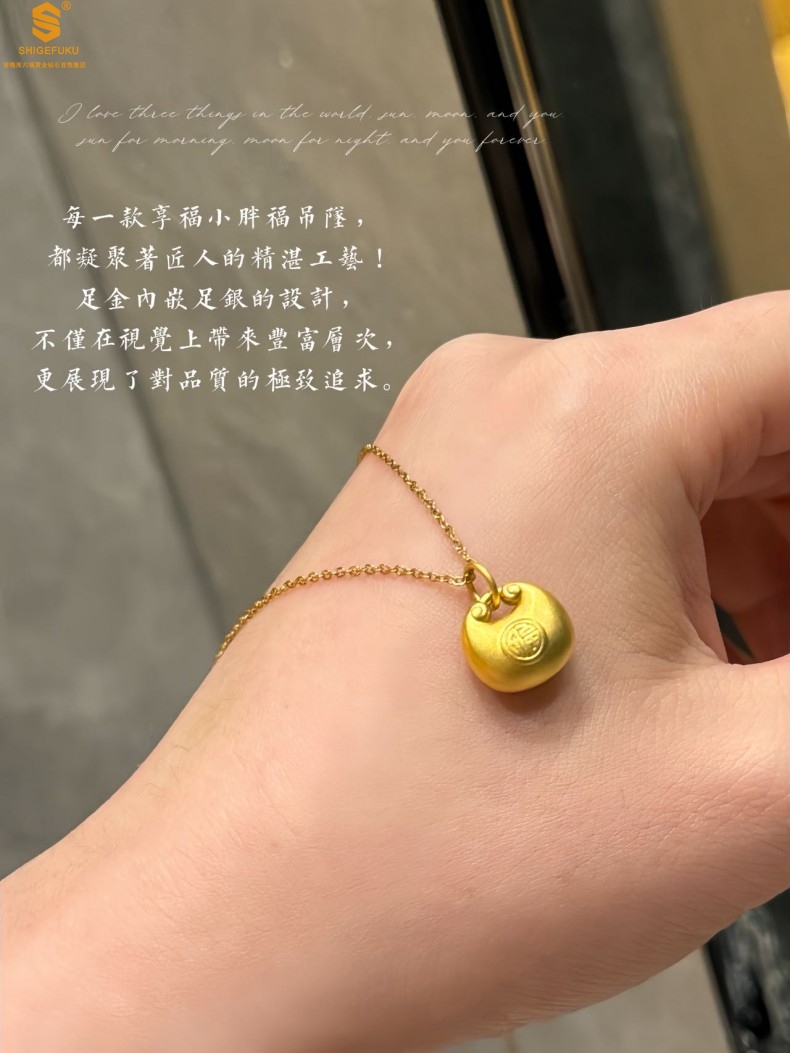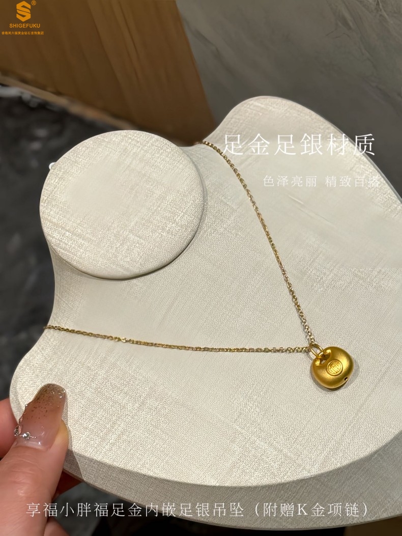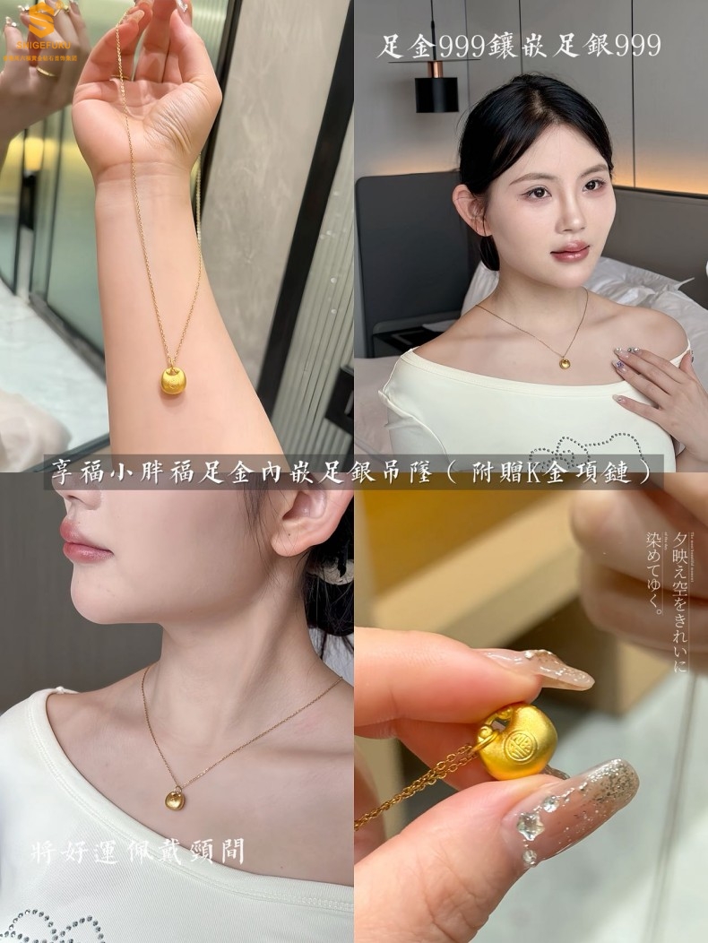【品名】享福小胖福足金内嵌足银吊坠(附赠K金项链)