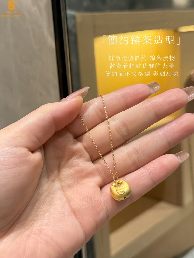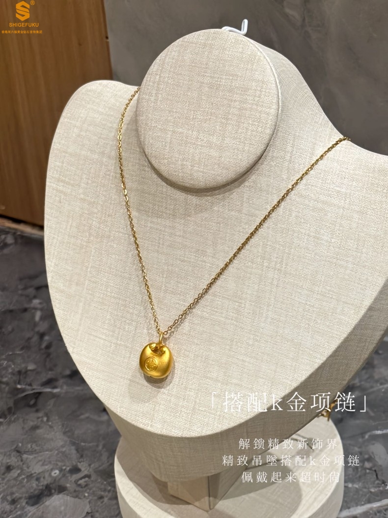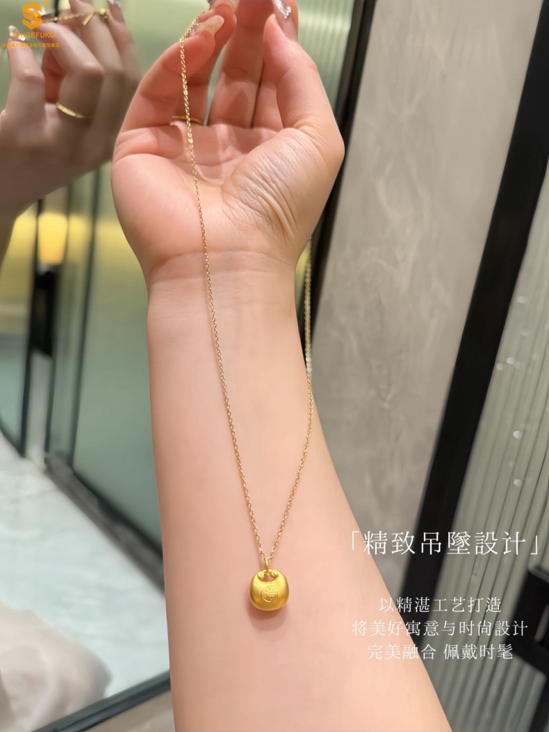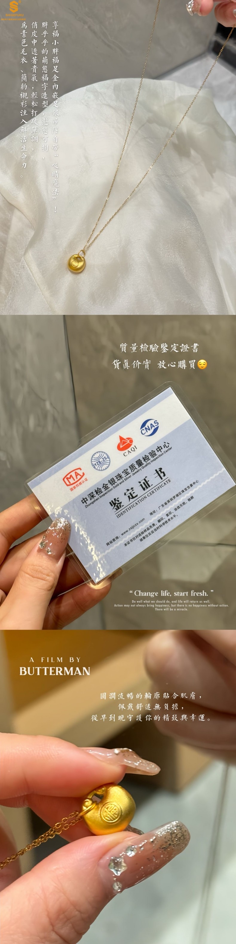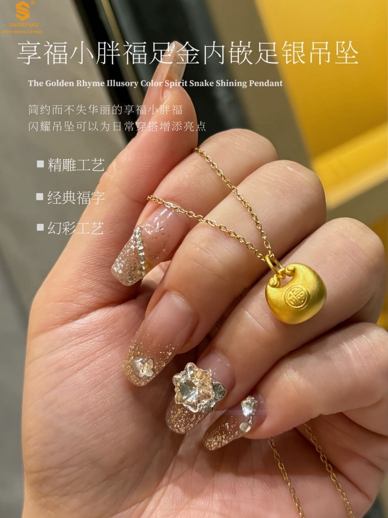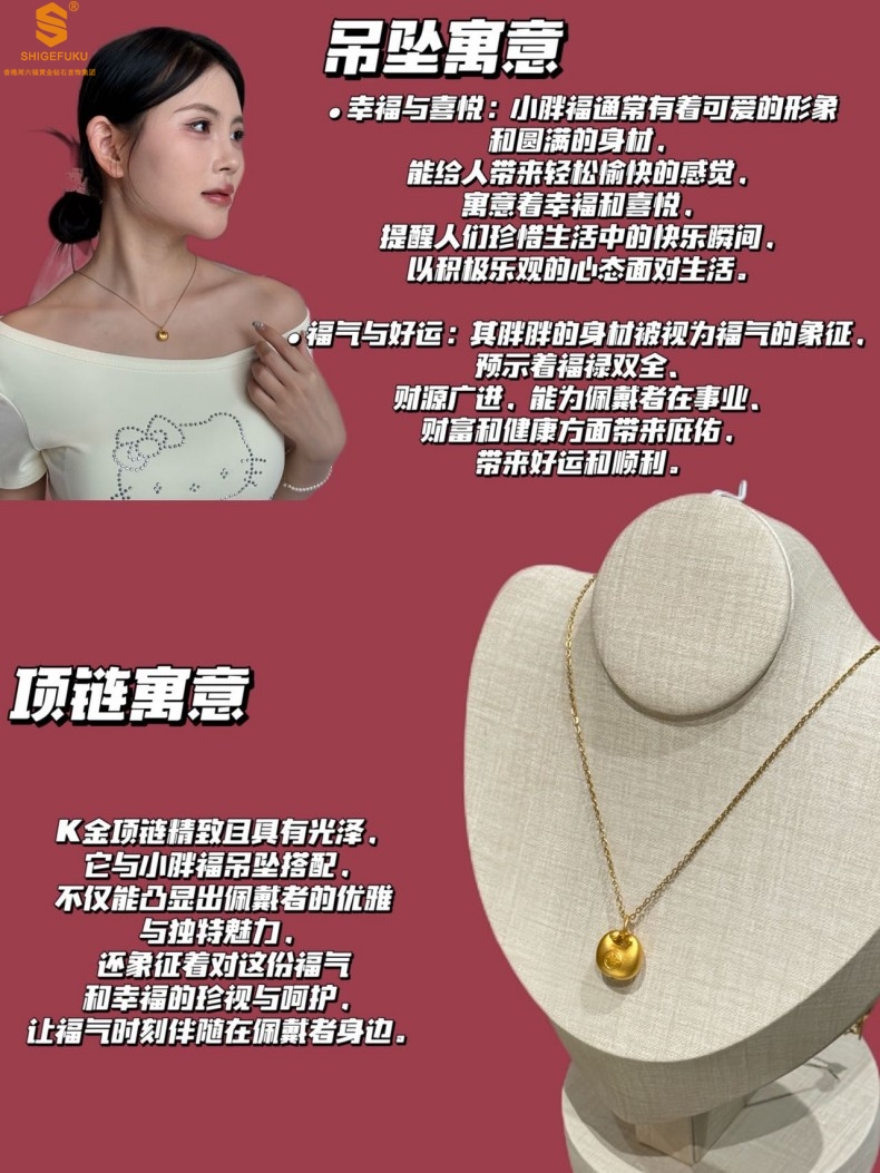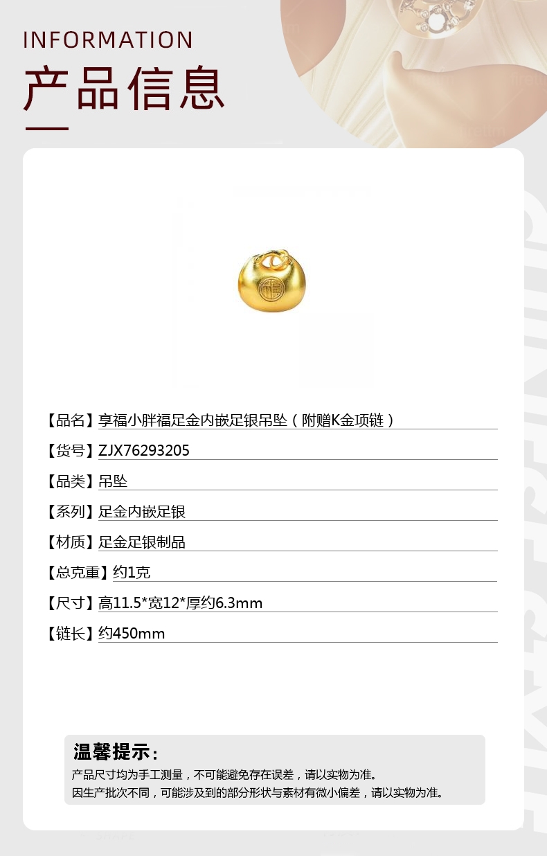 【品名】享福小胖福足金内嵌足银吊坠(附赠K金项链)
