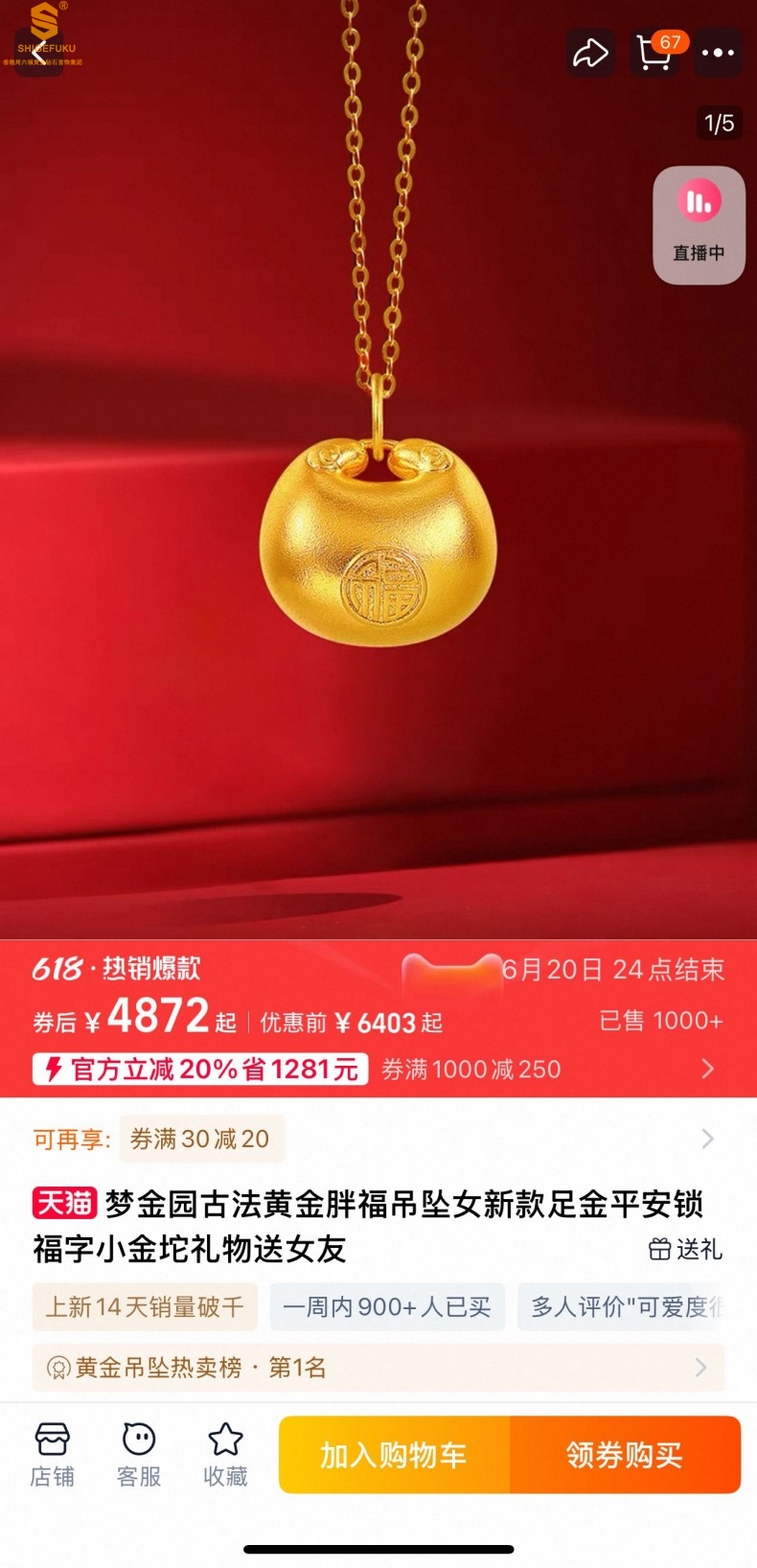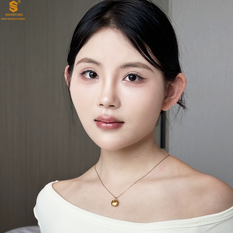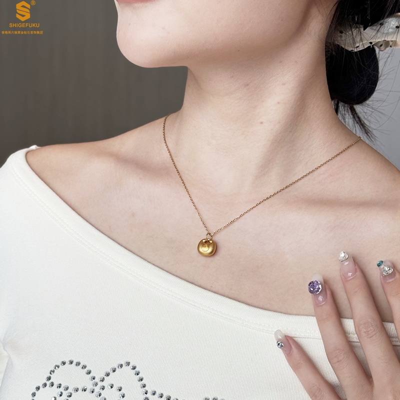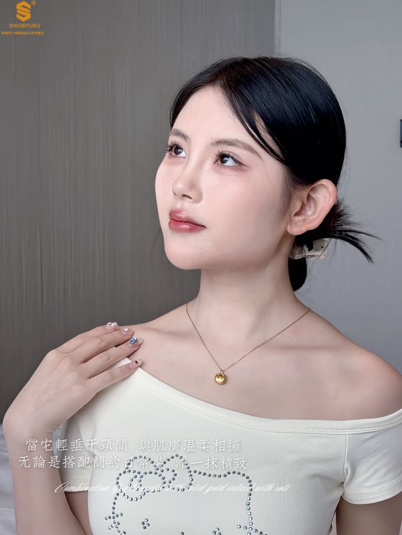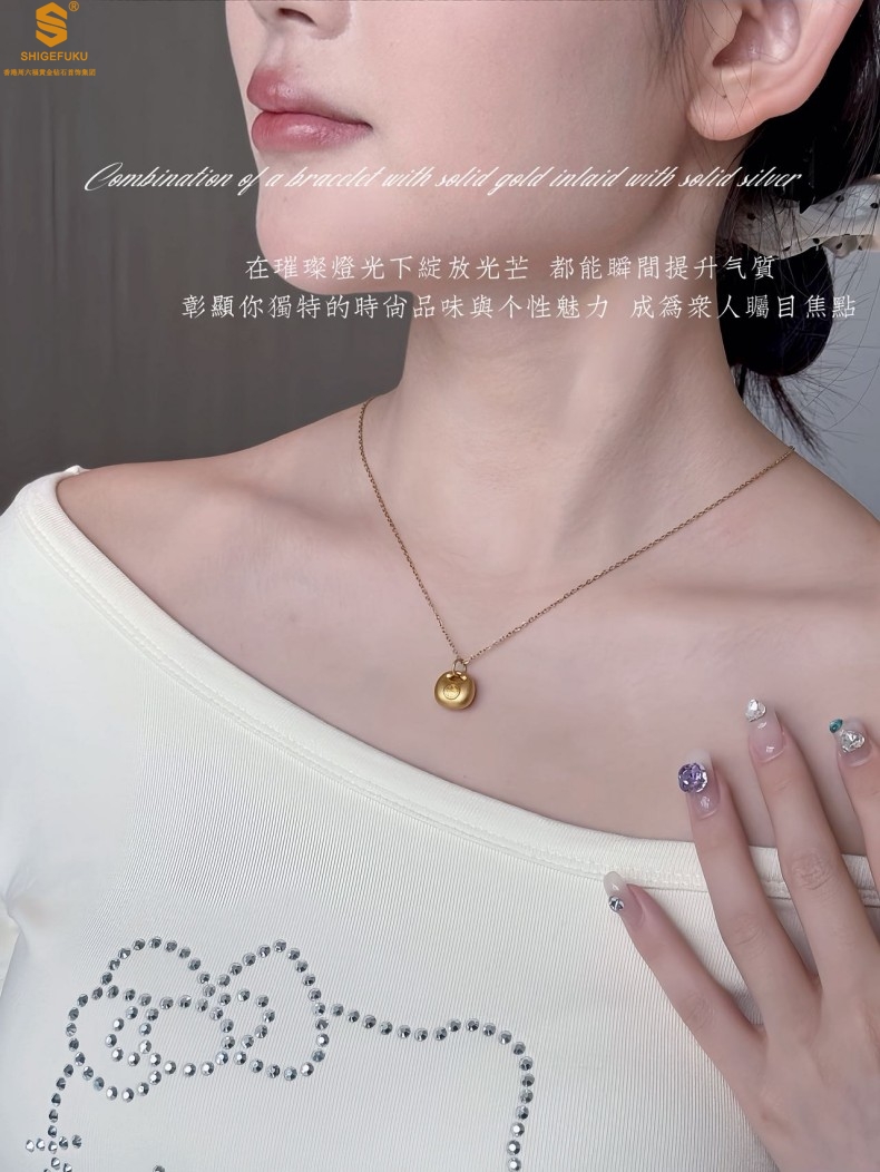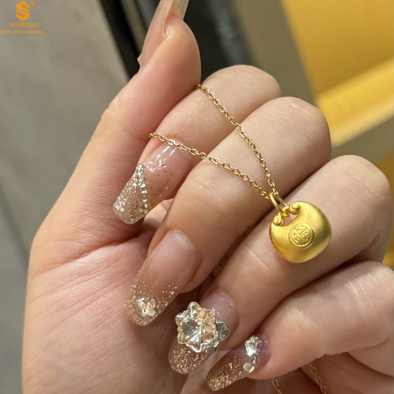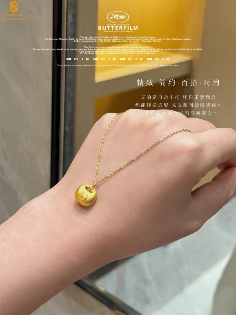 【品名】享福小胖福足金内嵌足银吊坠(附赠K金项链)