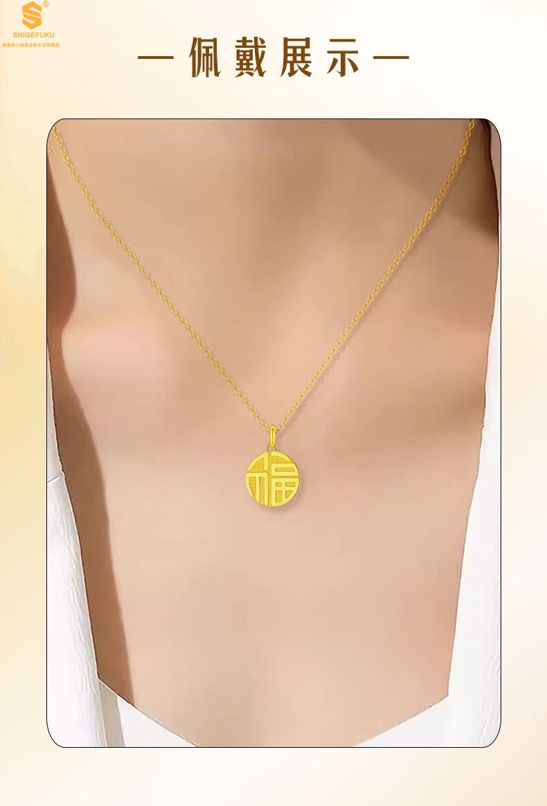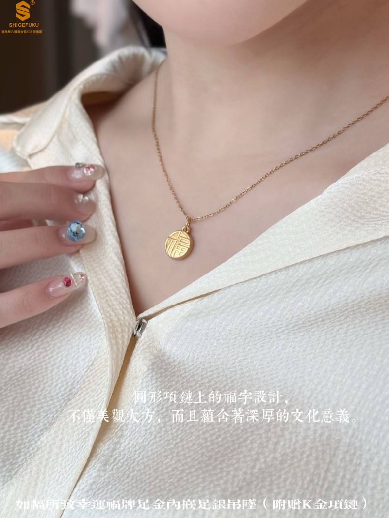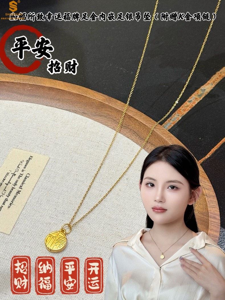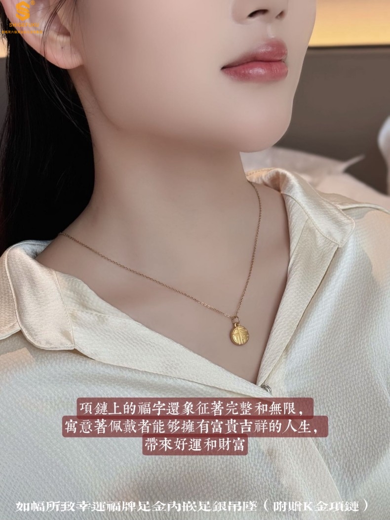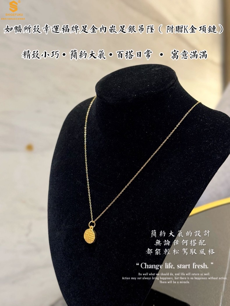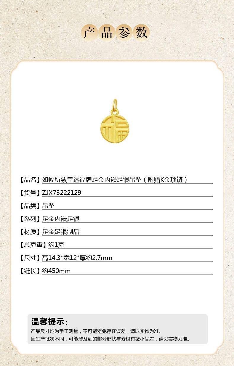 【品名】如幅所致幸运福牌足金内嵌足银吊坠(附赠K金项链)