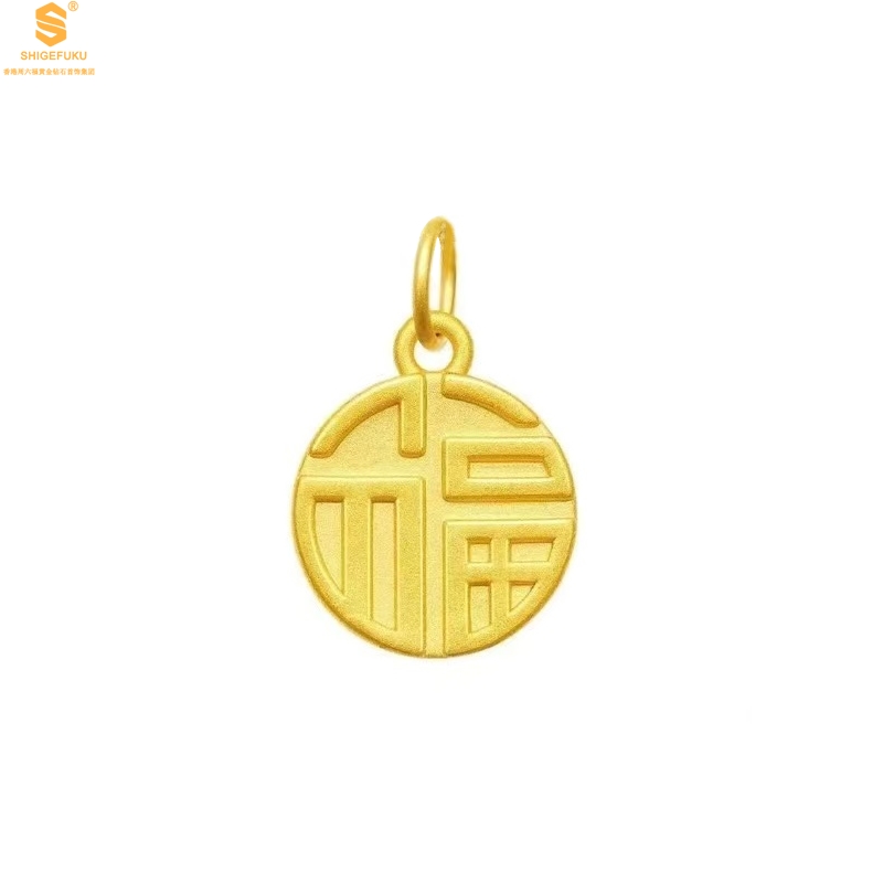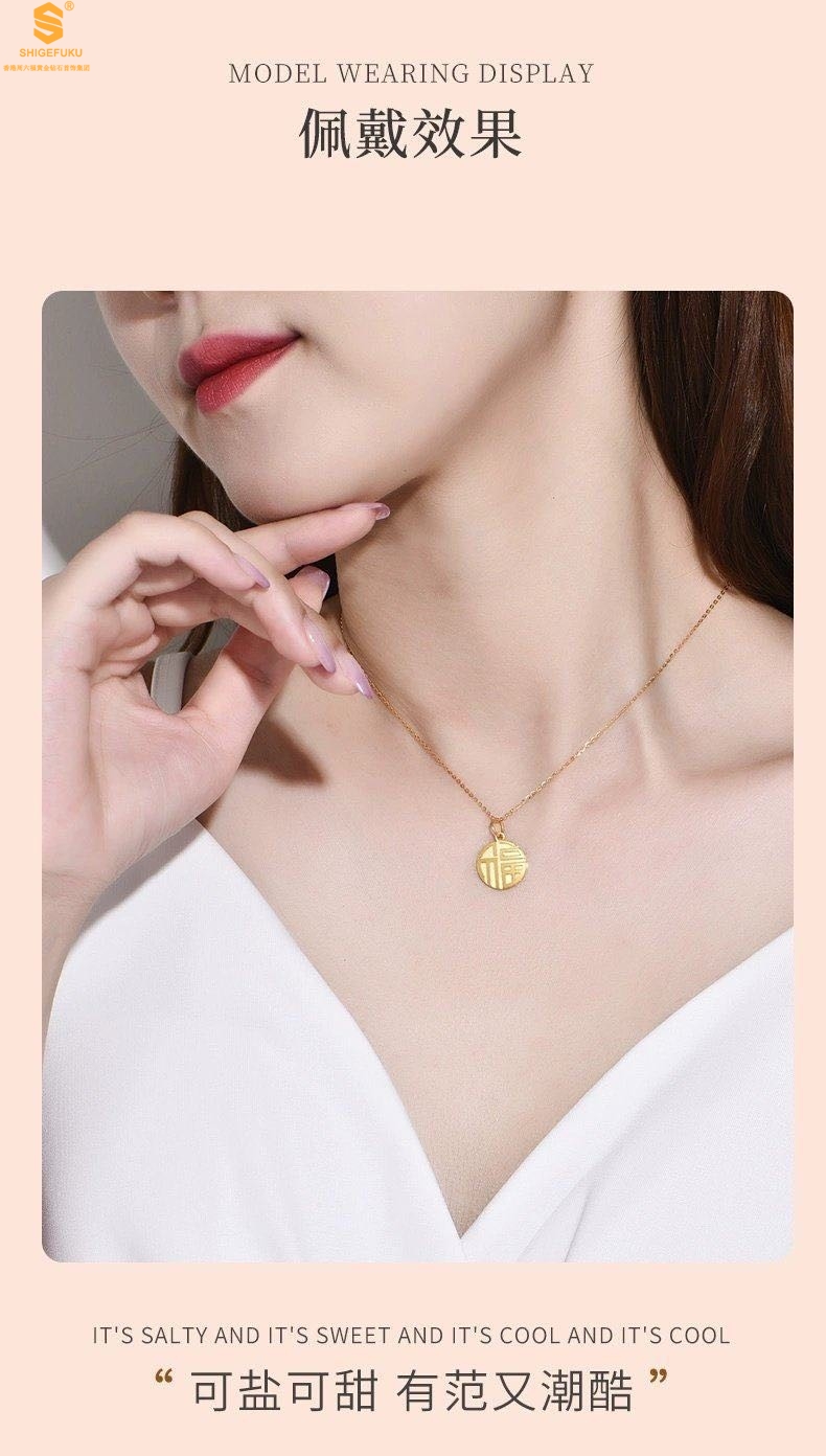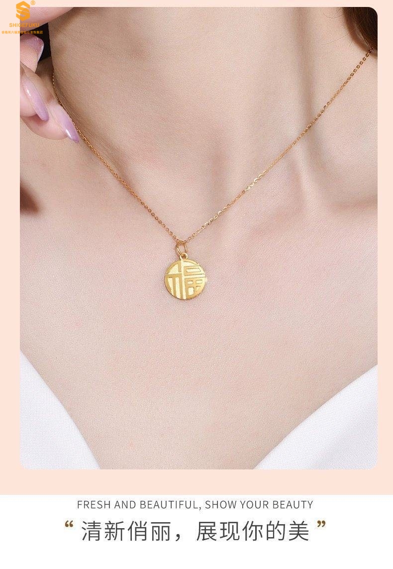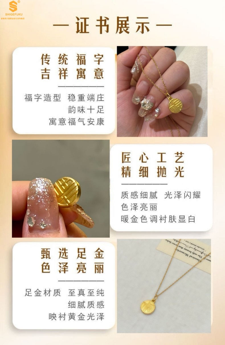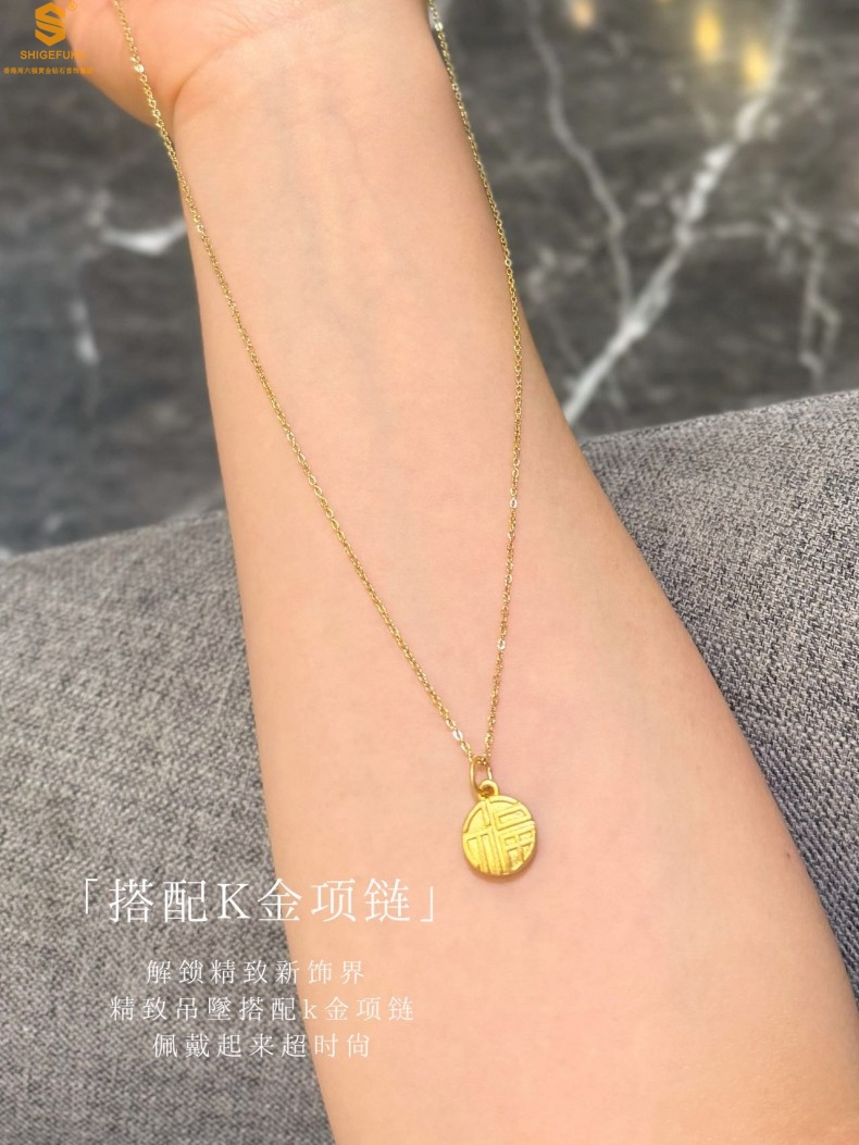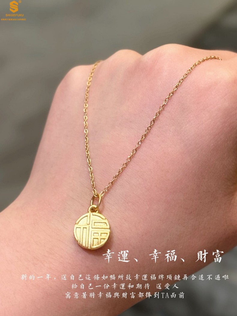 【品名】如幅所致幸运福牌足金内嵌足银吊坠(附赠K金项链)