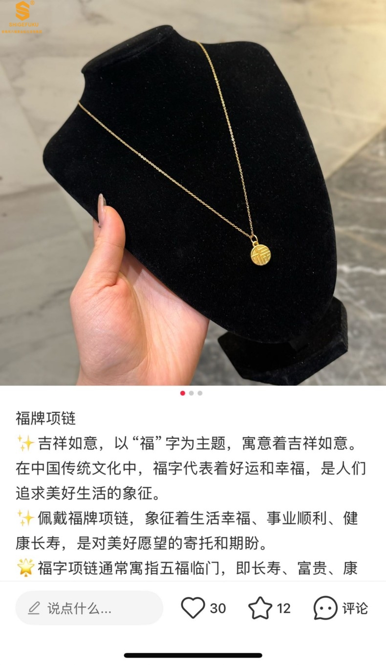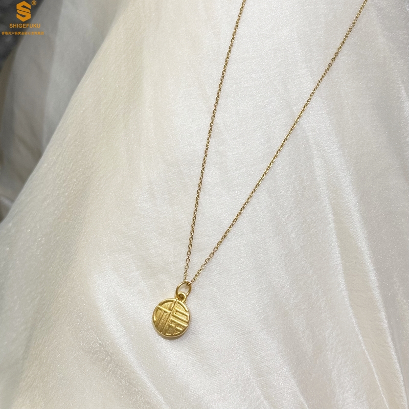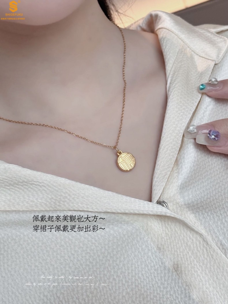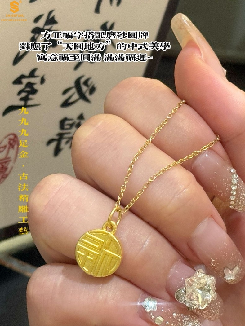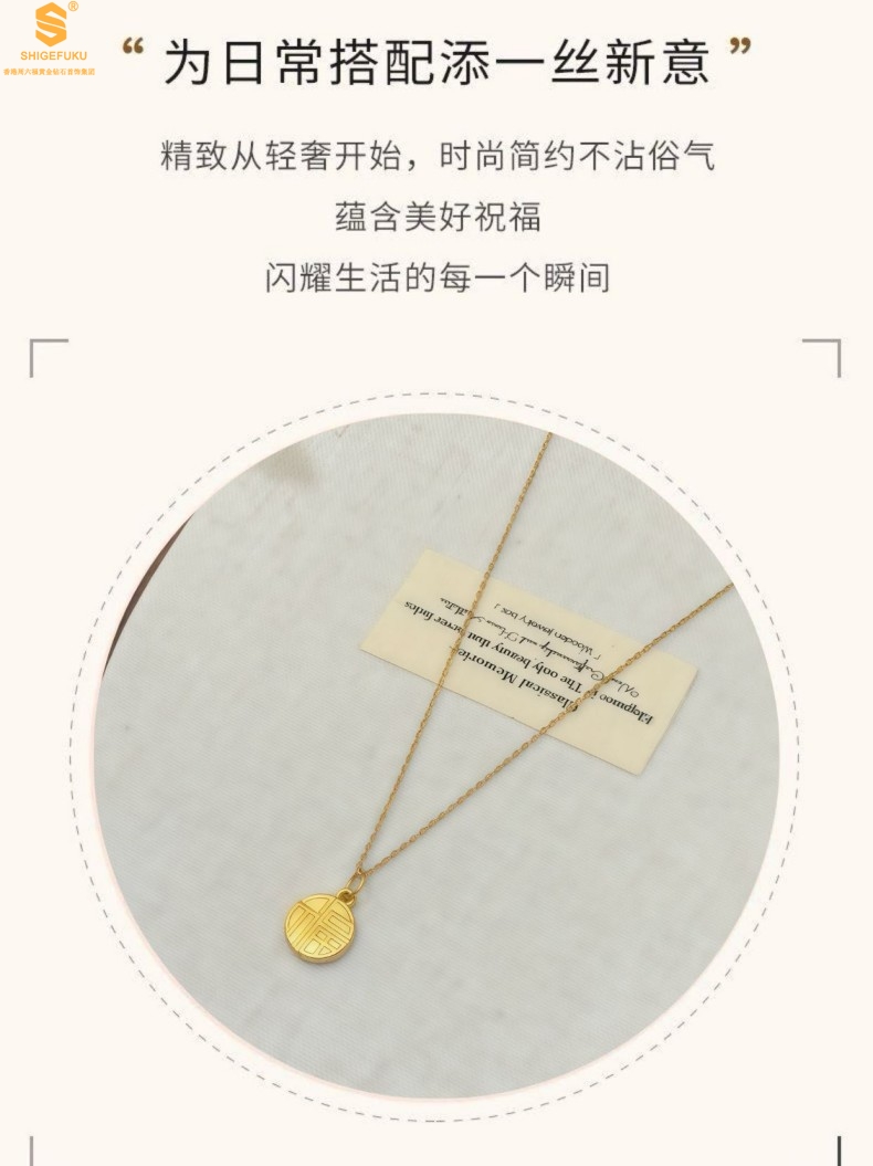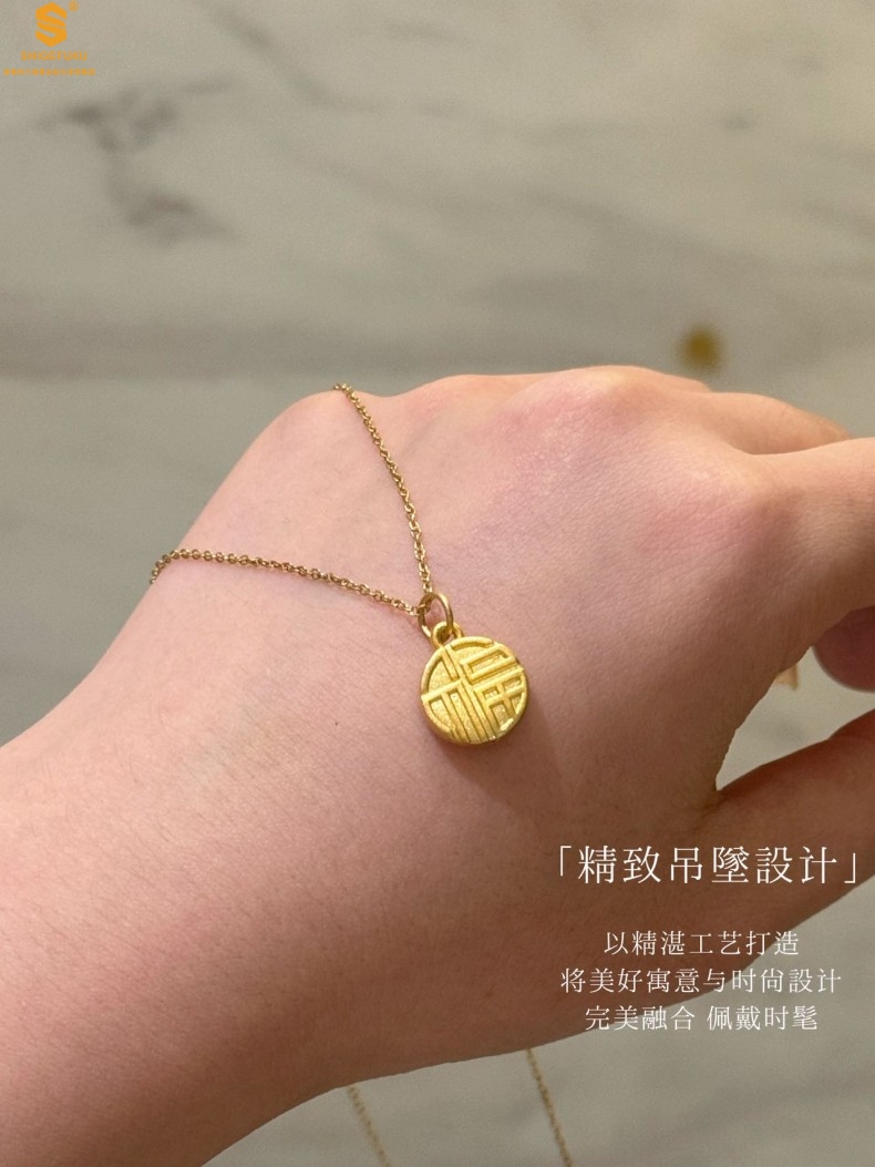 【品名】如幅所致幸运福牌足金内嵌足银吊坠(附赠K金项链)