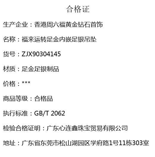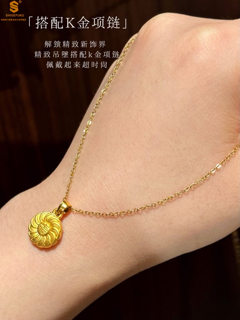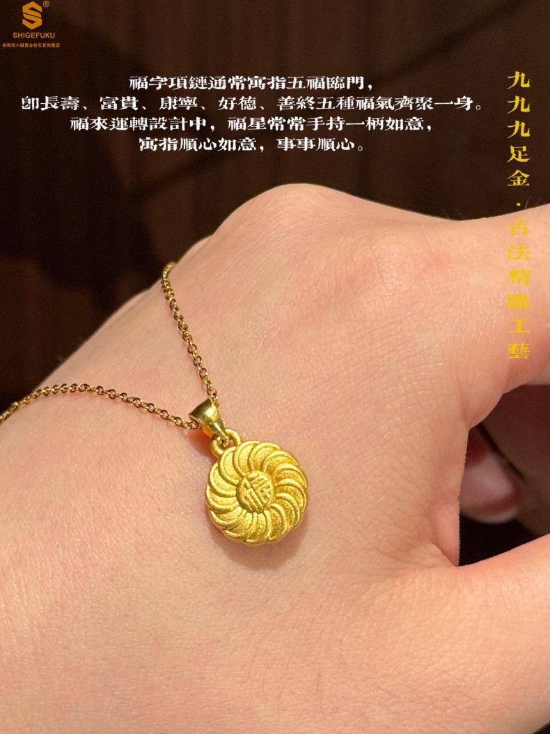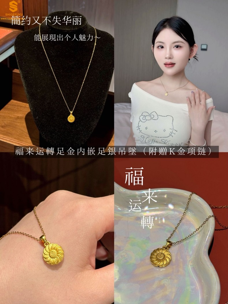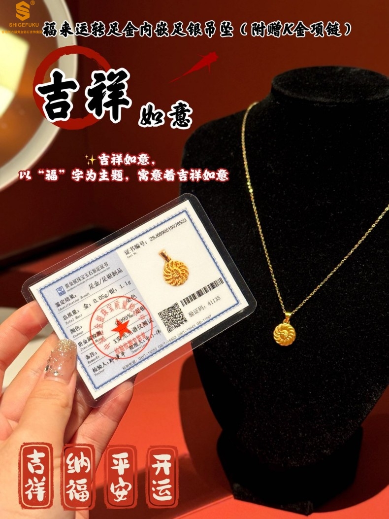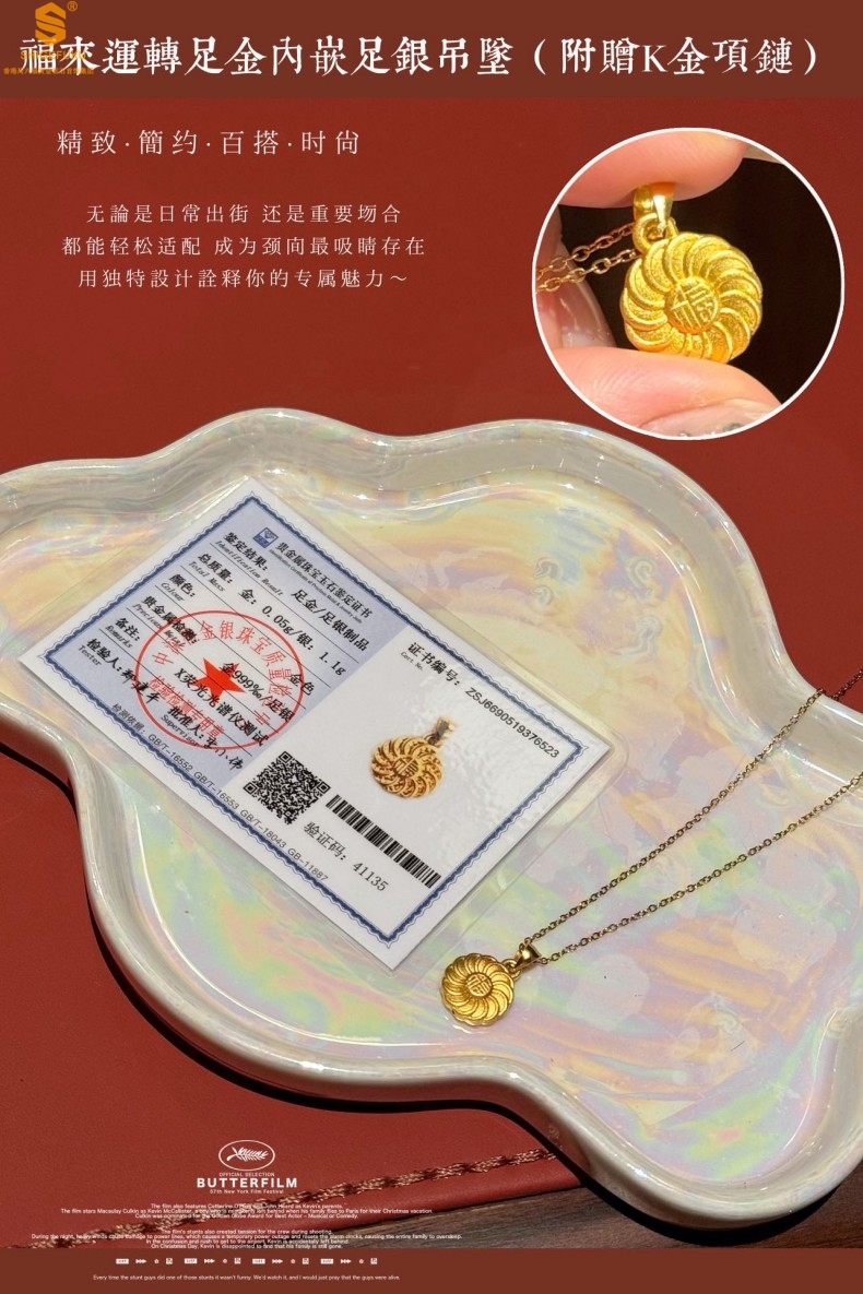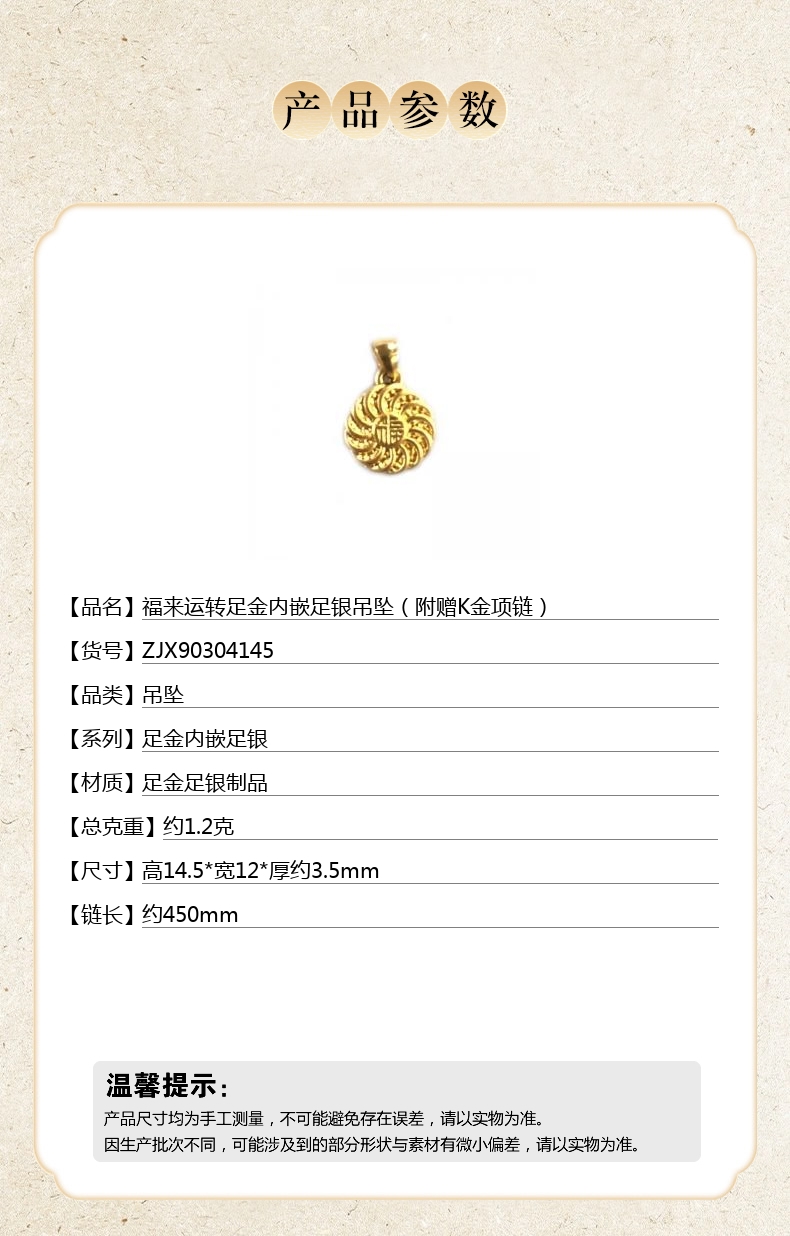 【品名】福来运转足金内嵌足银吊坠(附赠K金项链)