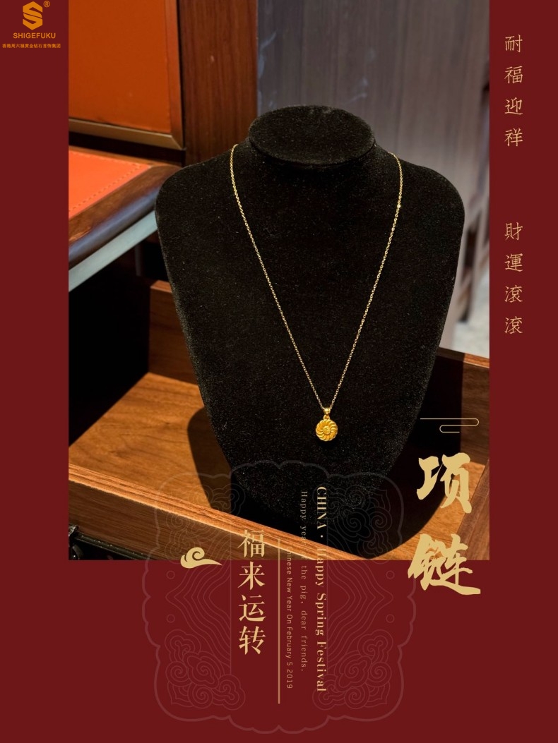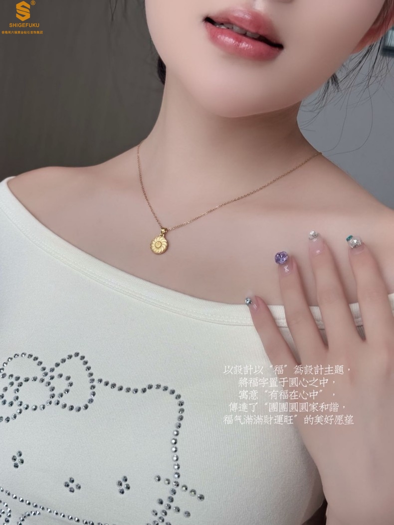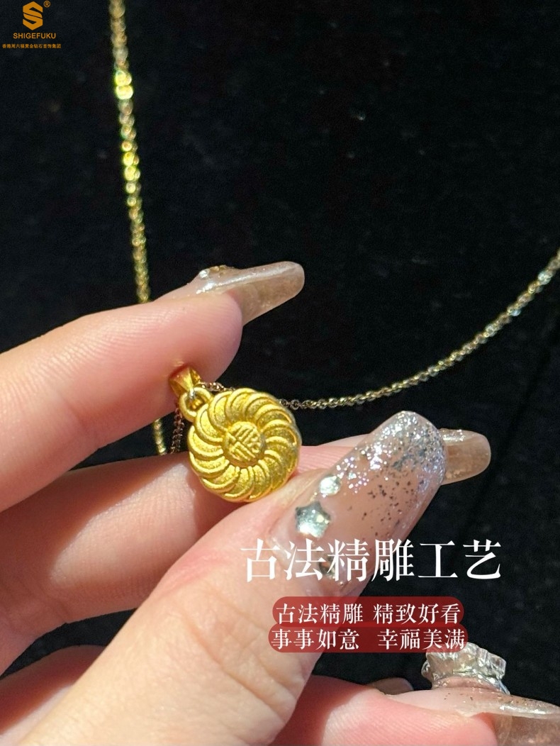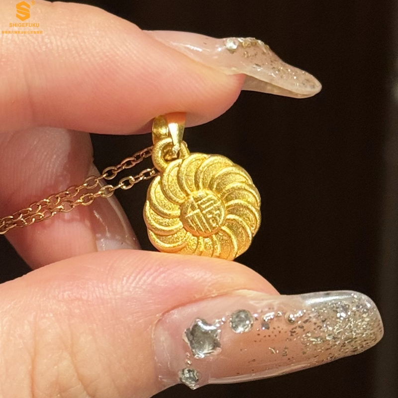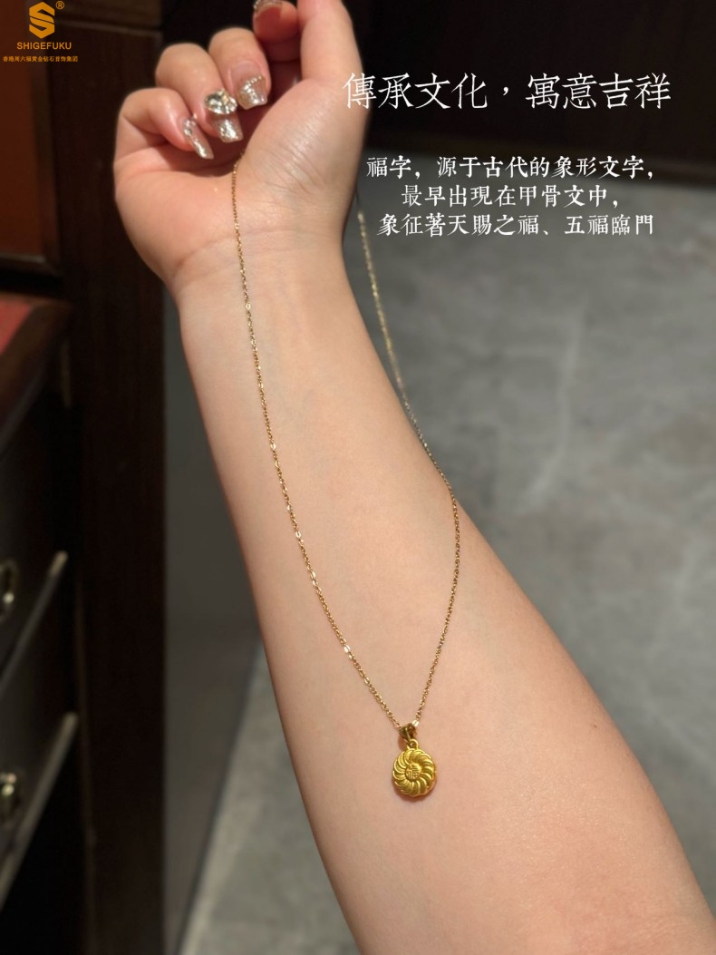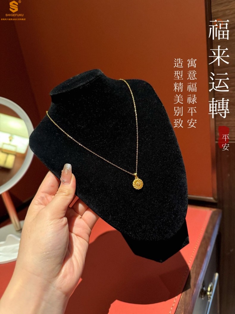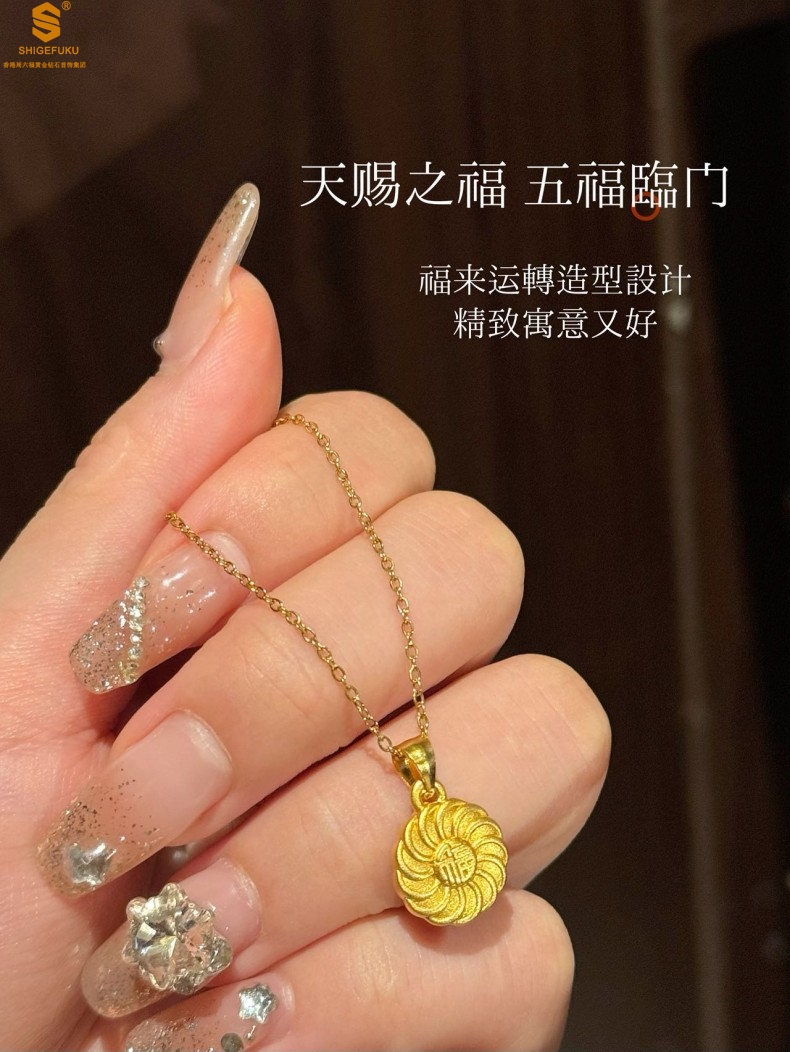 【品名】福来运转足金内嵌足银吊坠(附赠K金项链)