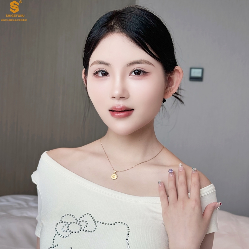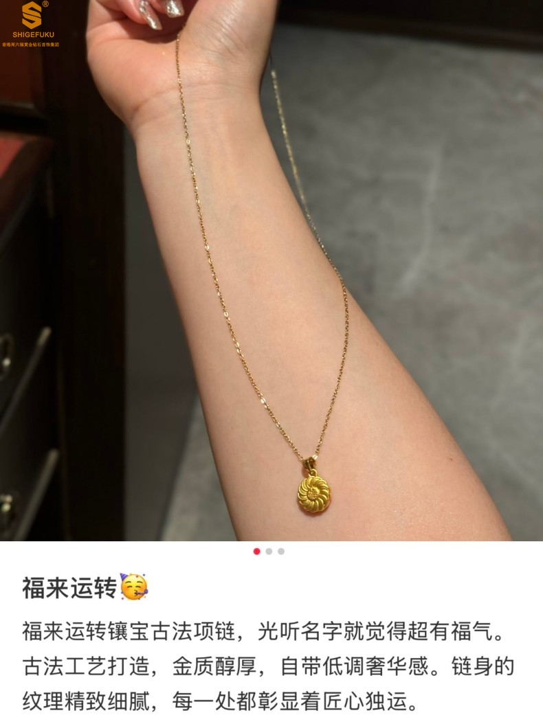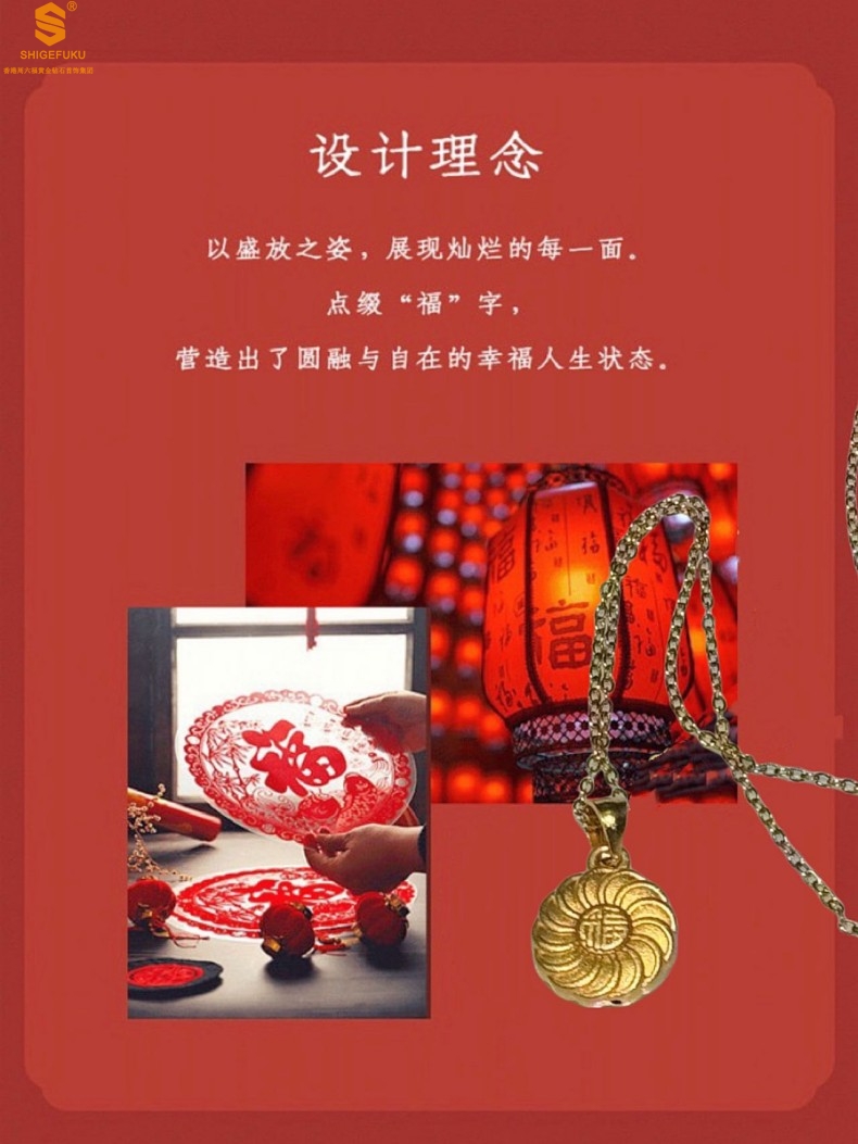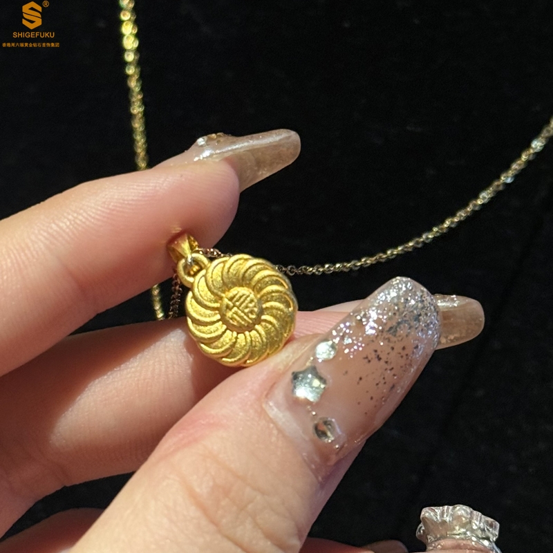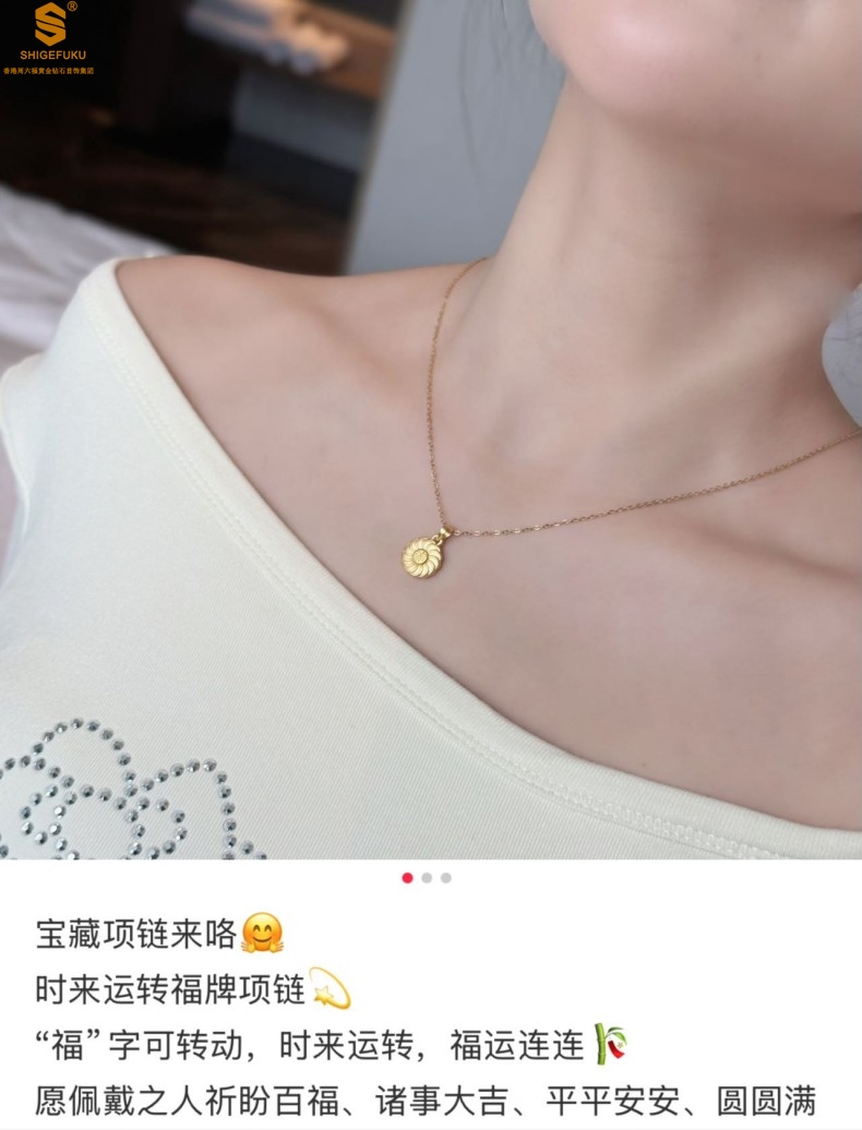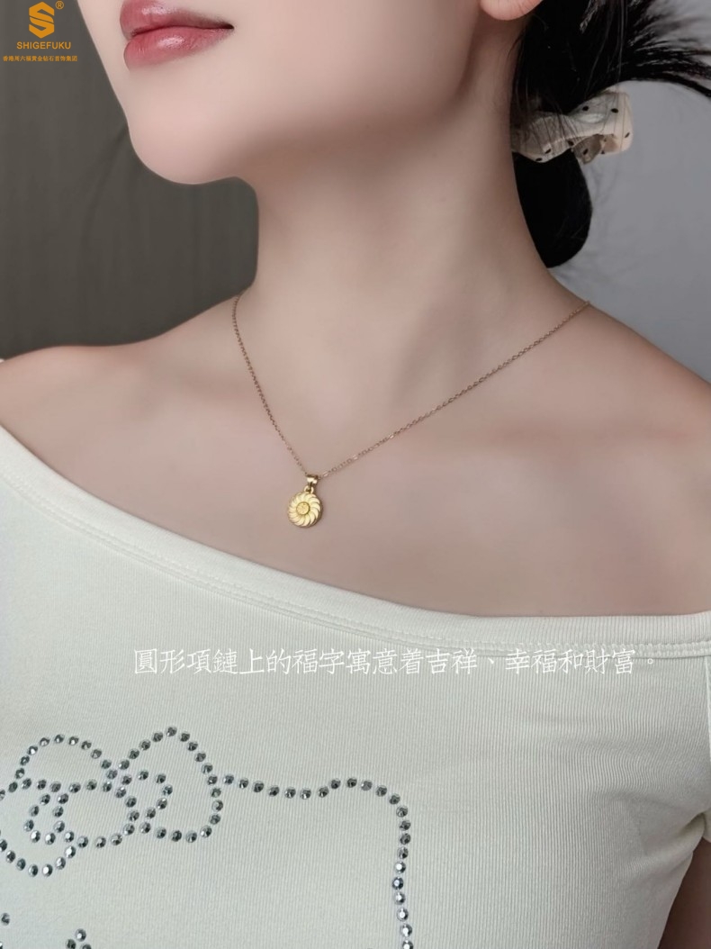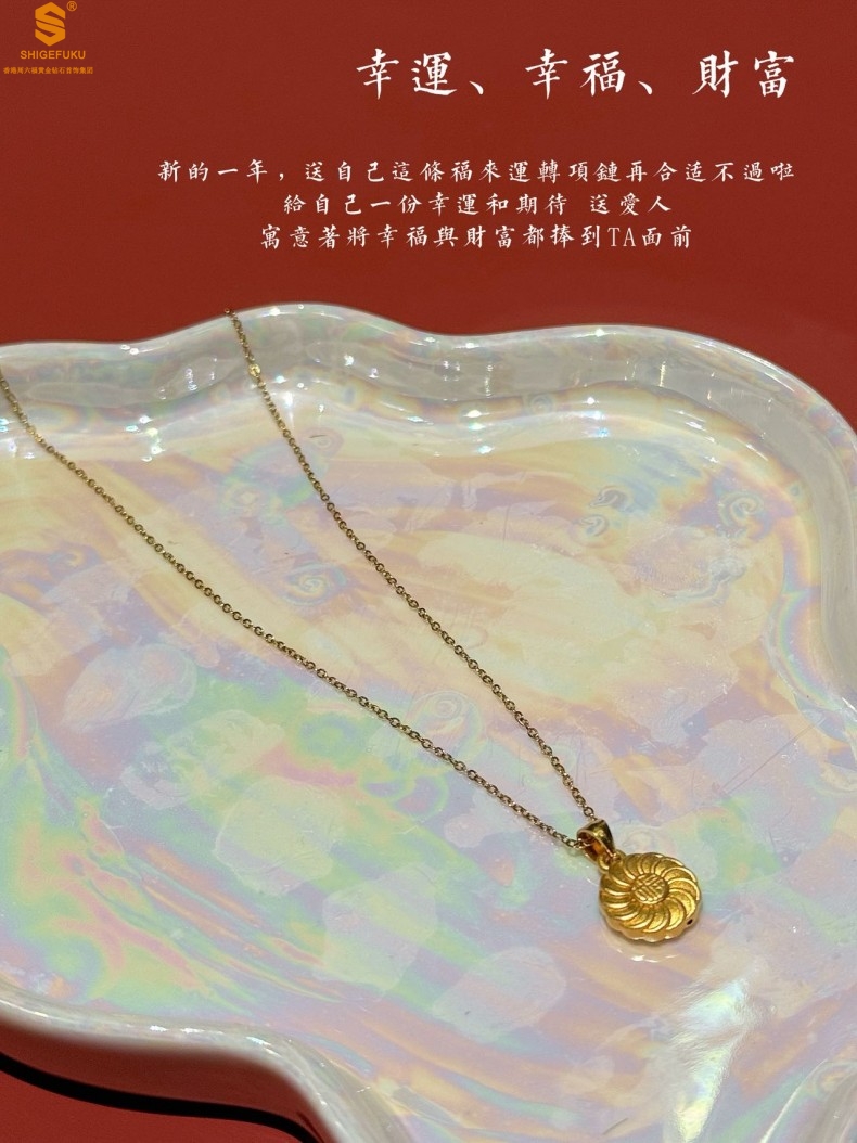 【品名】福来运转足金内嵌足银吊坠(附赠K金项链)