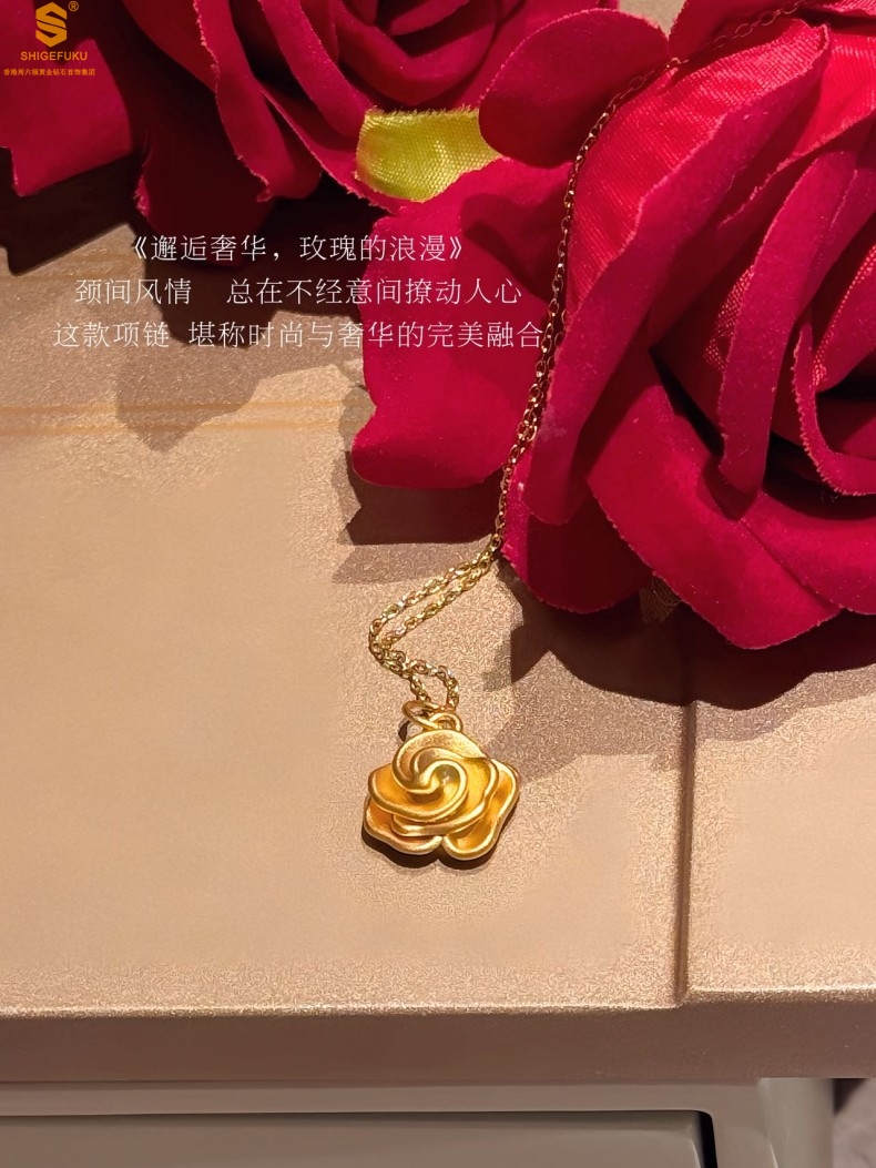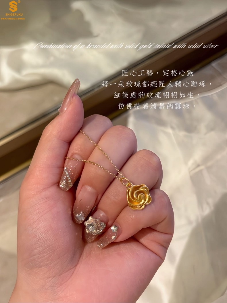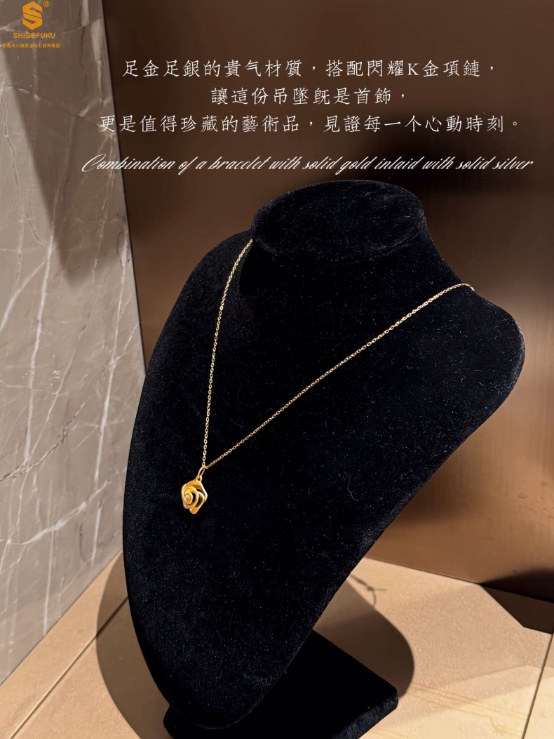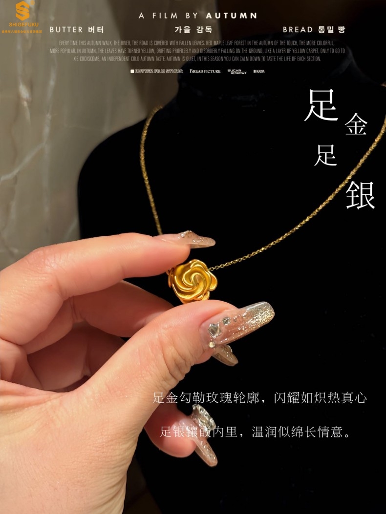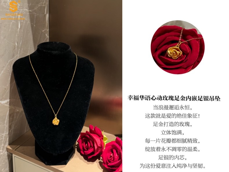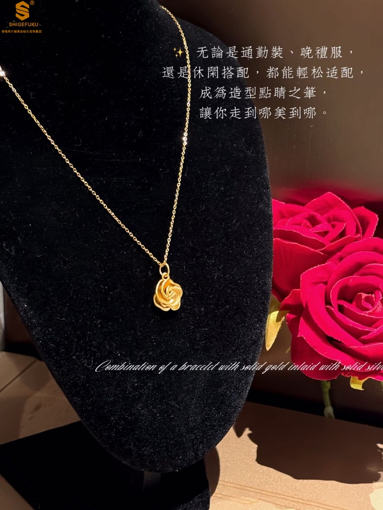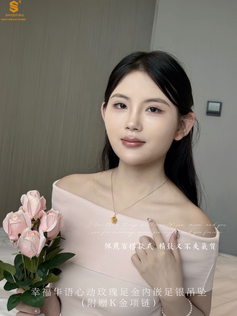 【品名】幸福华语心动玫瑰足金内嵌足银吊坠(附赠K金项链)